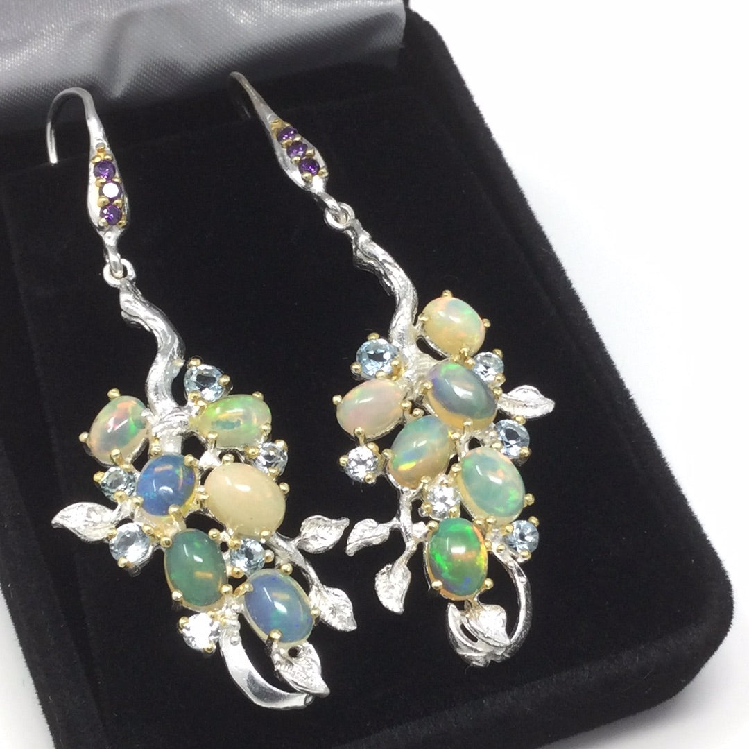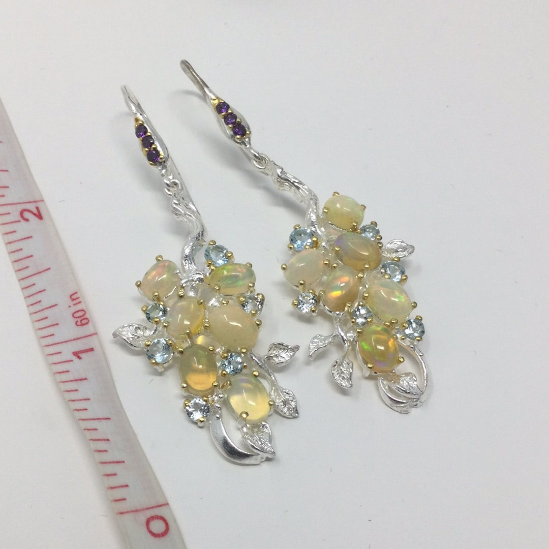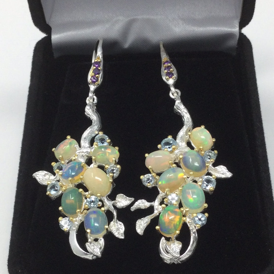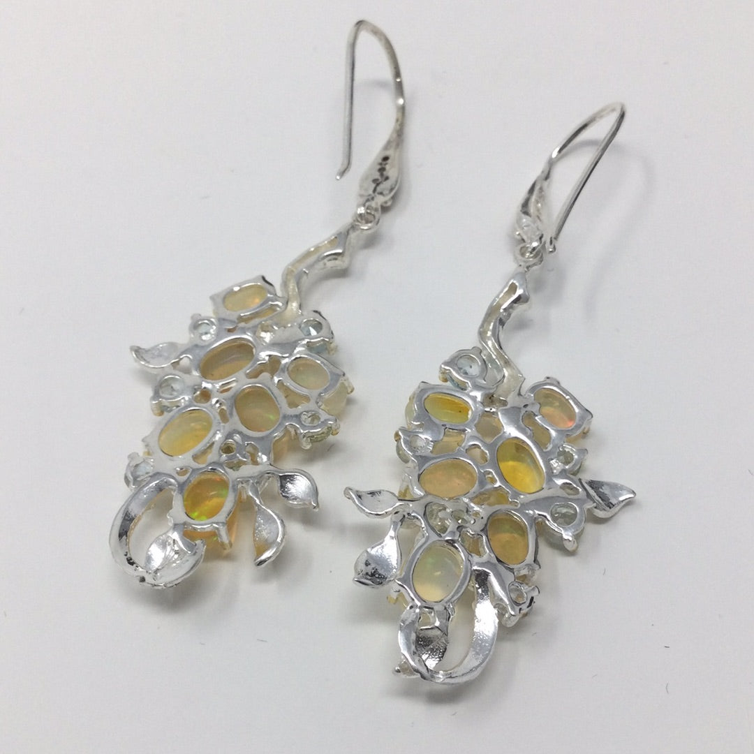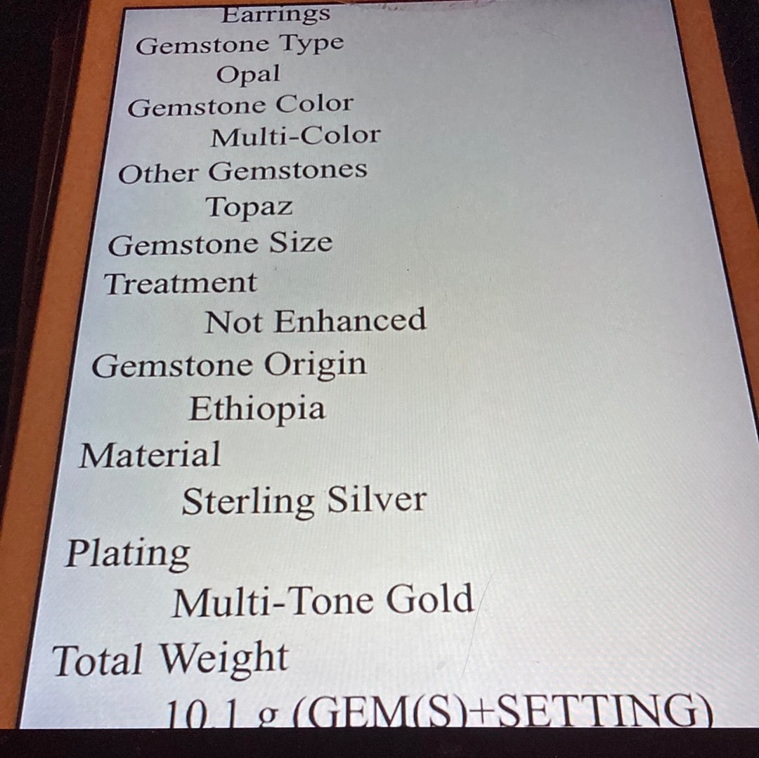 Add a dash of style and class in these sophisticated genuine Opal & Topaz earrings. The iridescence is exquisite, this is an amazing way to frame your face in luminescence. It’s a lifetime investment in gemstone elegance. Approximately 2 inches long.
