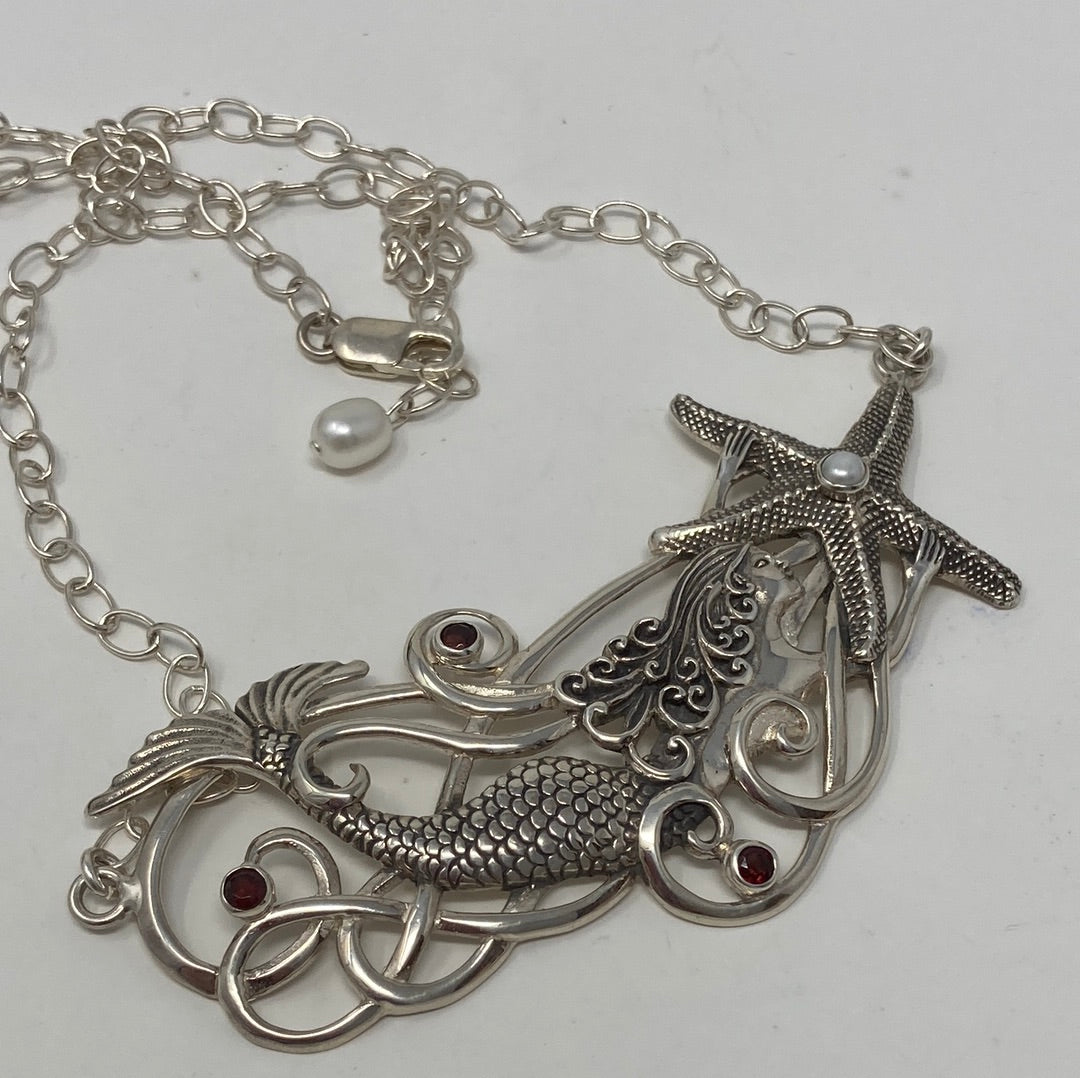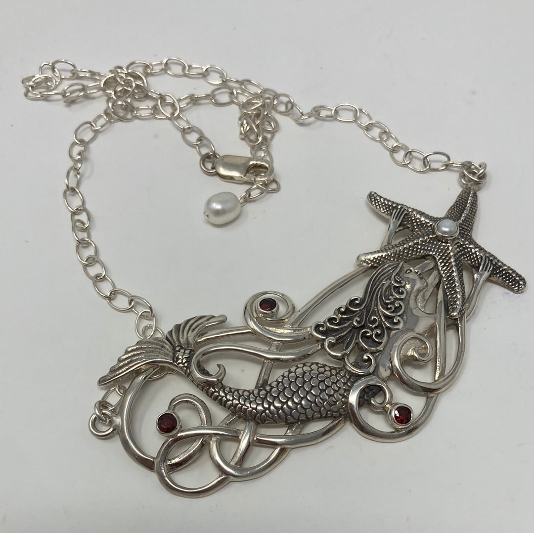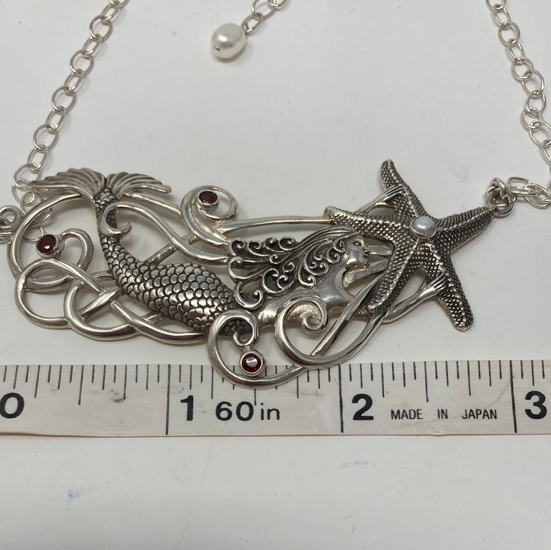 Artistic Sterling Silver Mermaid & Garnet Necklace