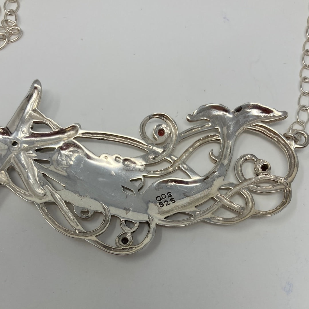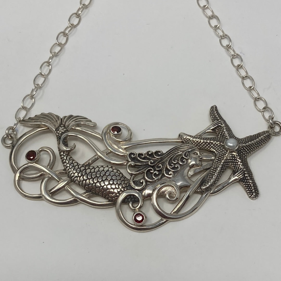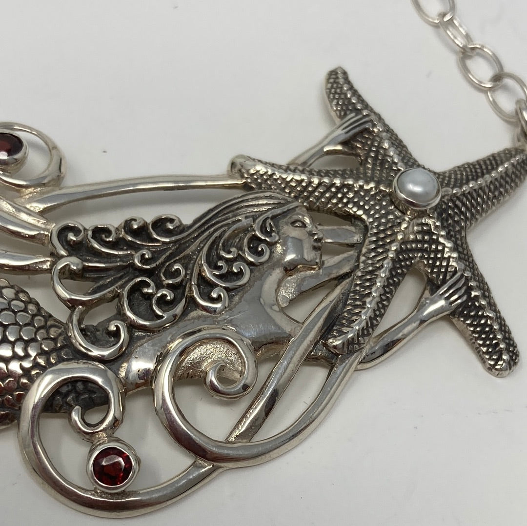Artistic Sterling Silver Mermaid & Garnet Necklace
