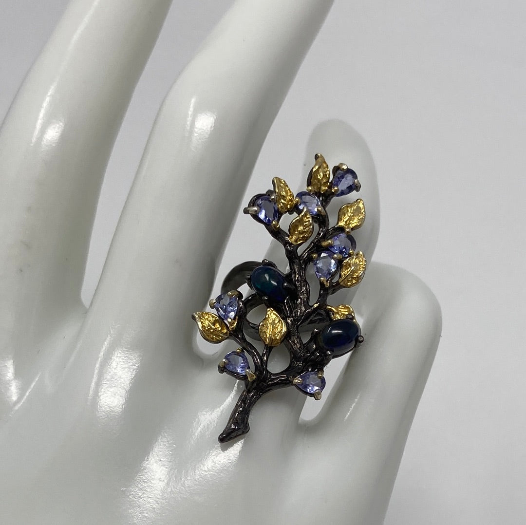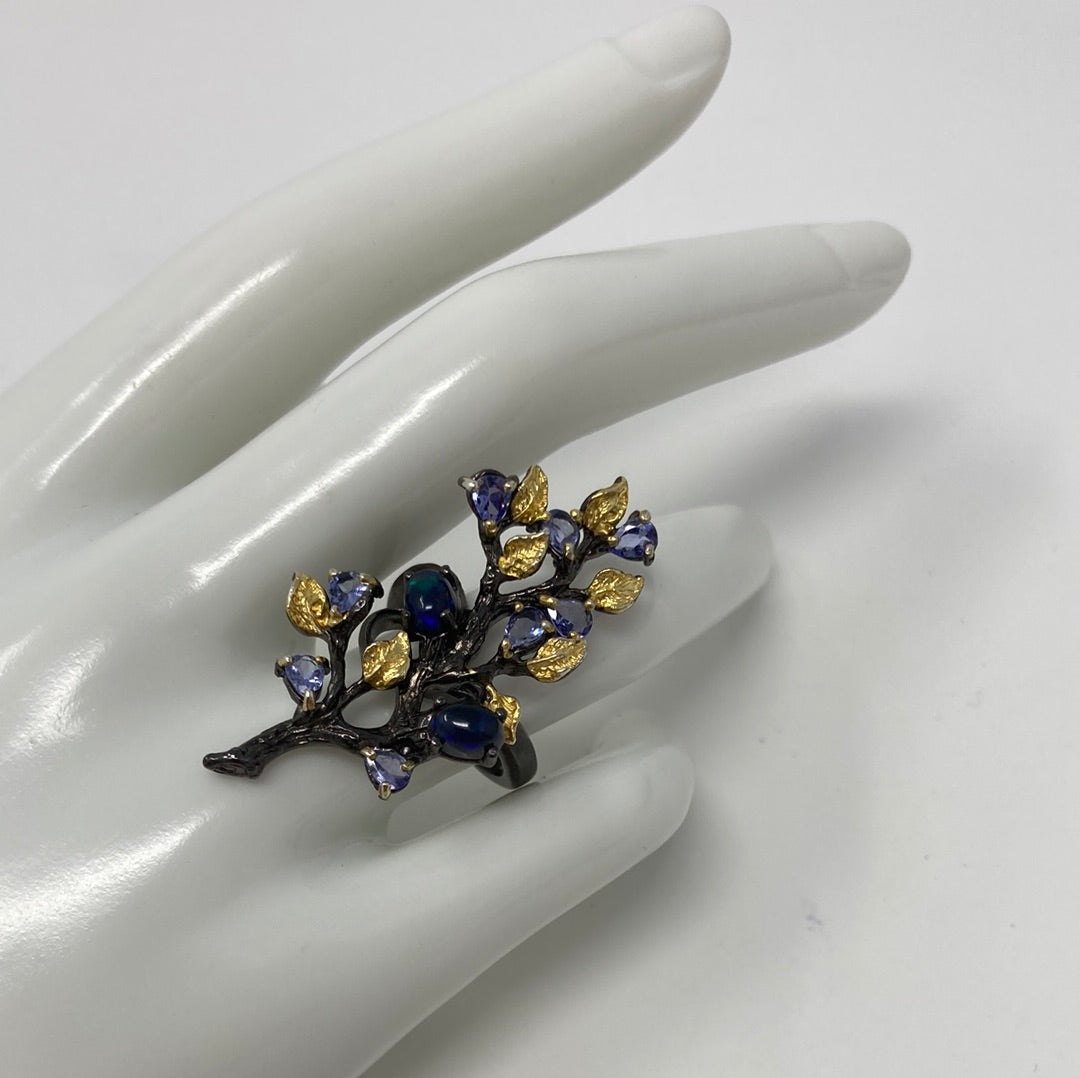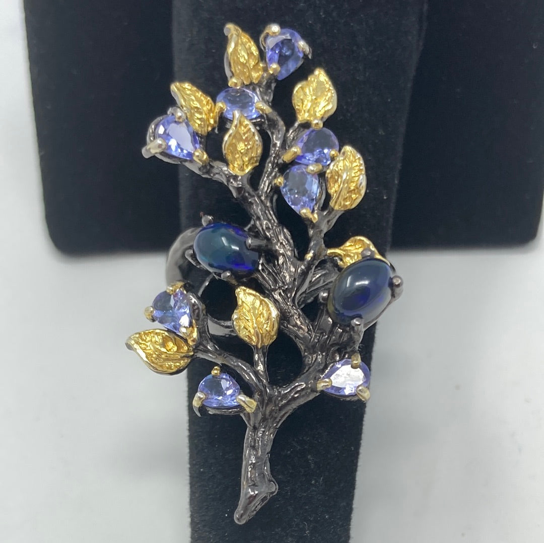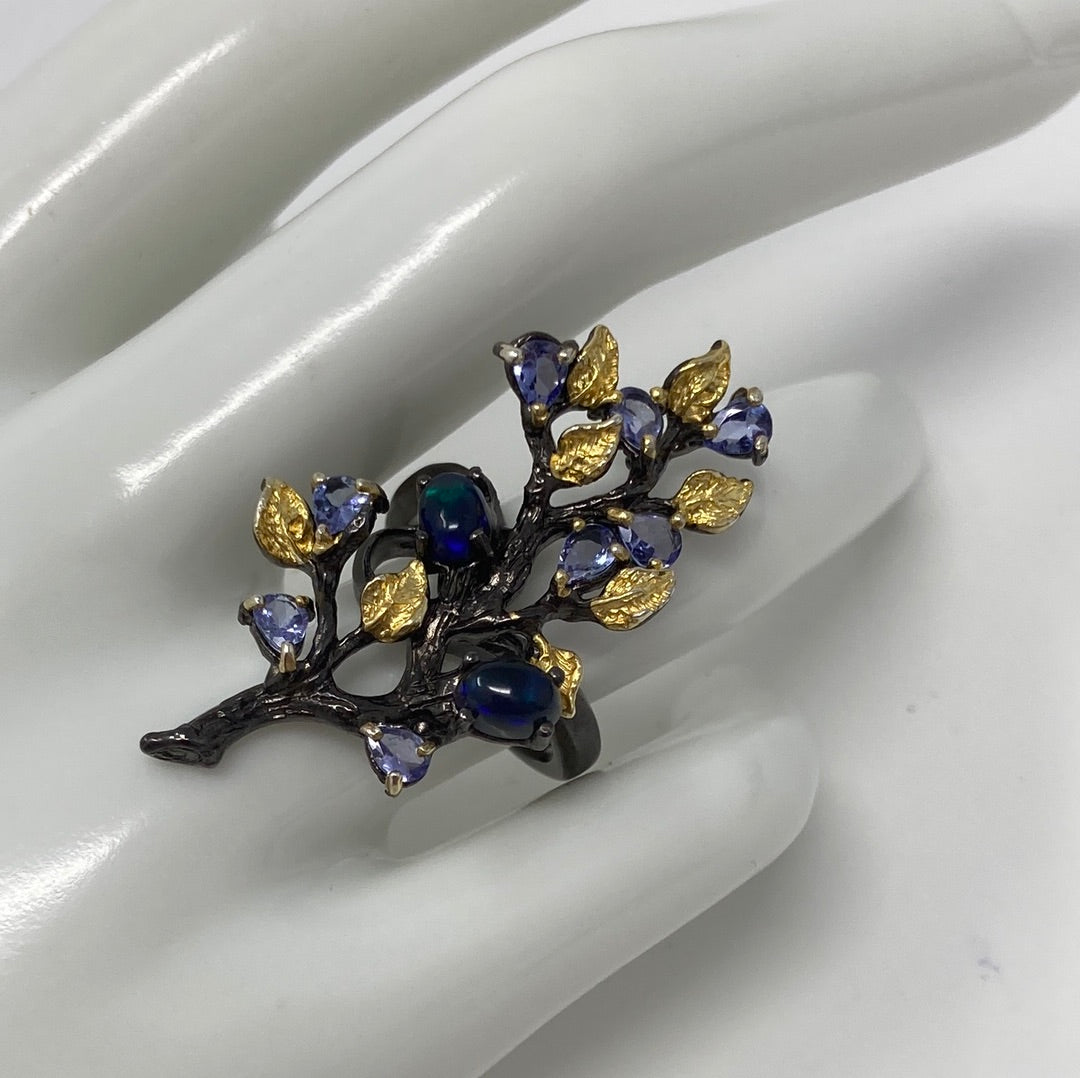 Bohemian Genuine Black Opals with Tanzanite Ring