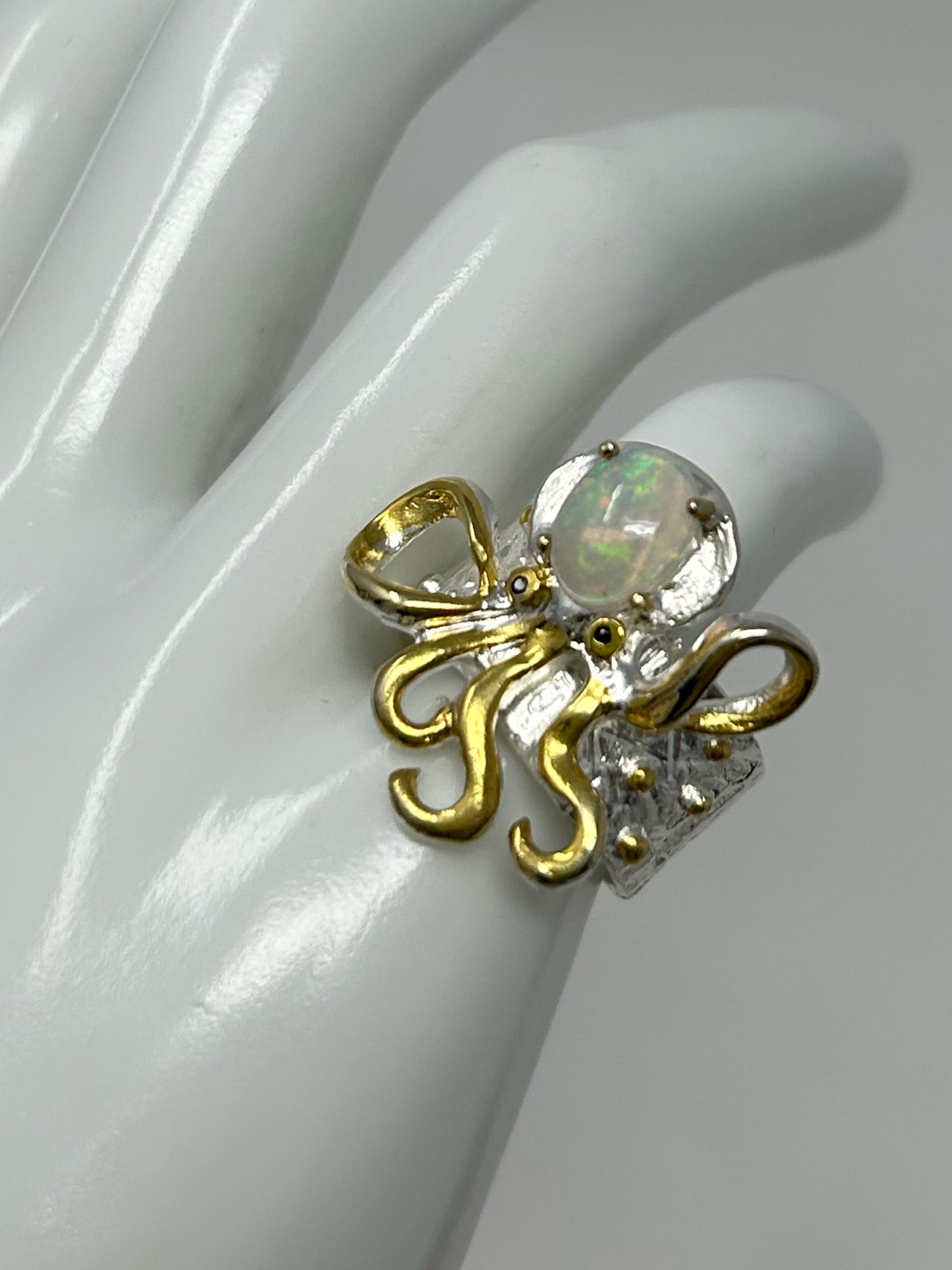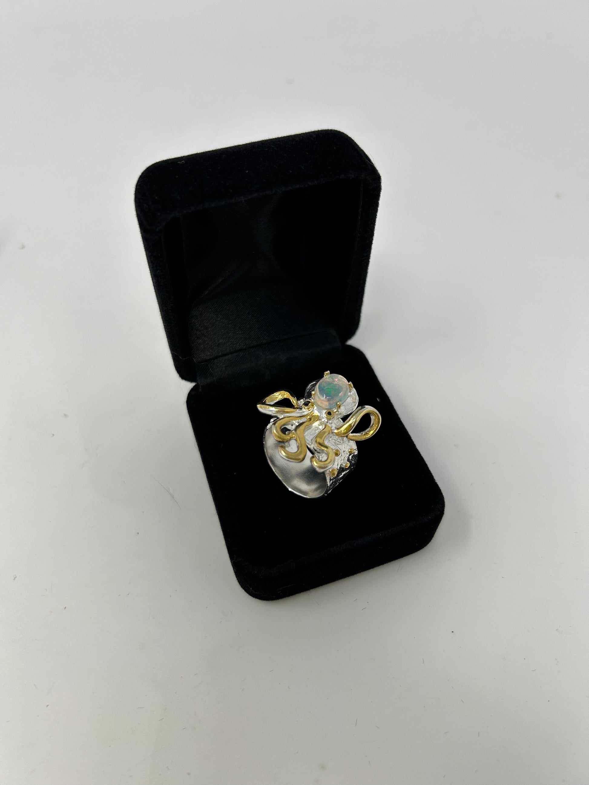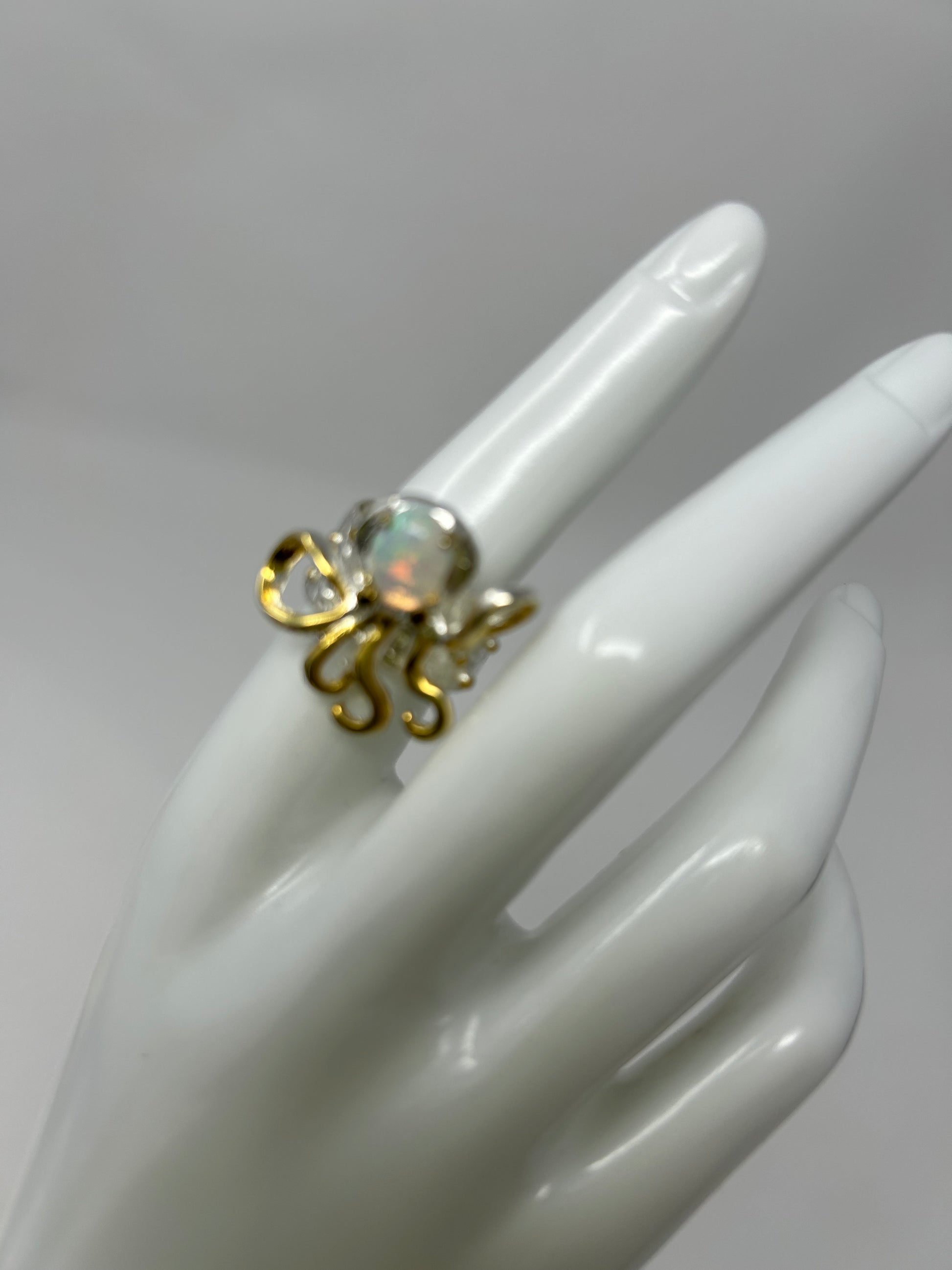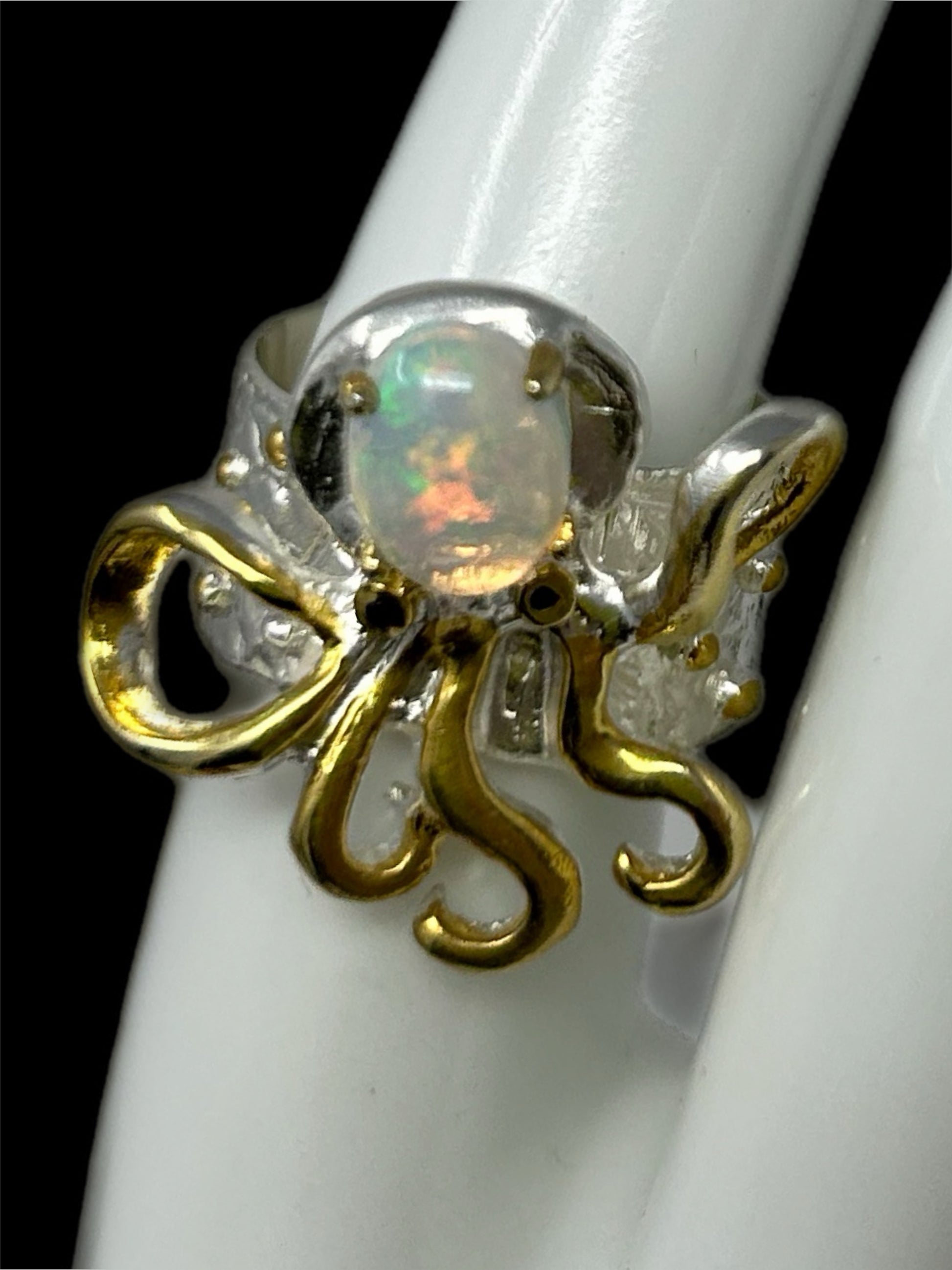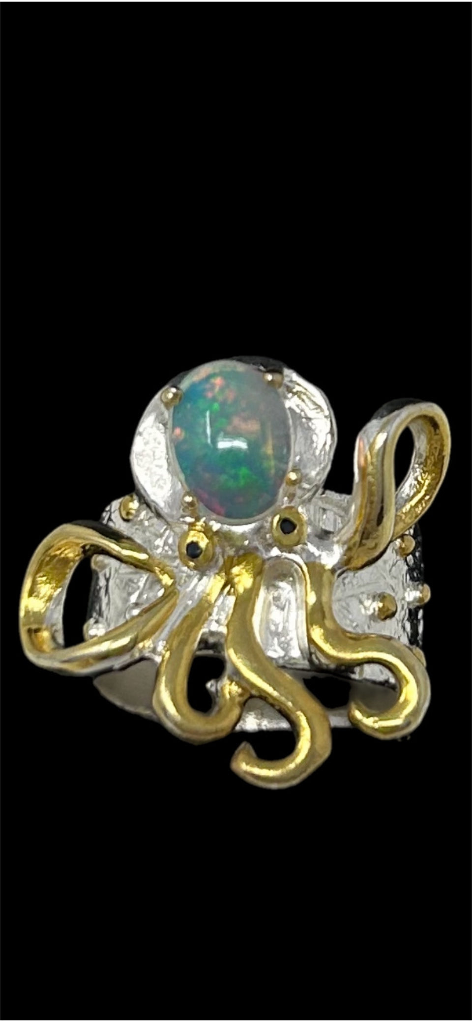 I only have this one, an absolutely precious, Genuine Fiery Opal octopus ring. Crafted lovingly in .925 Sterling silver. This artistic octopus features 14K gold accents & tiny sapphire eyes. Size 6
