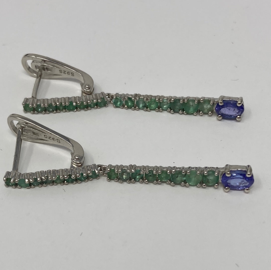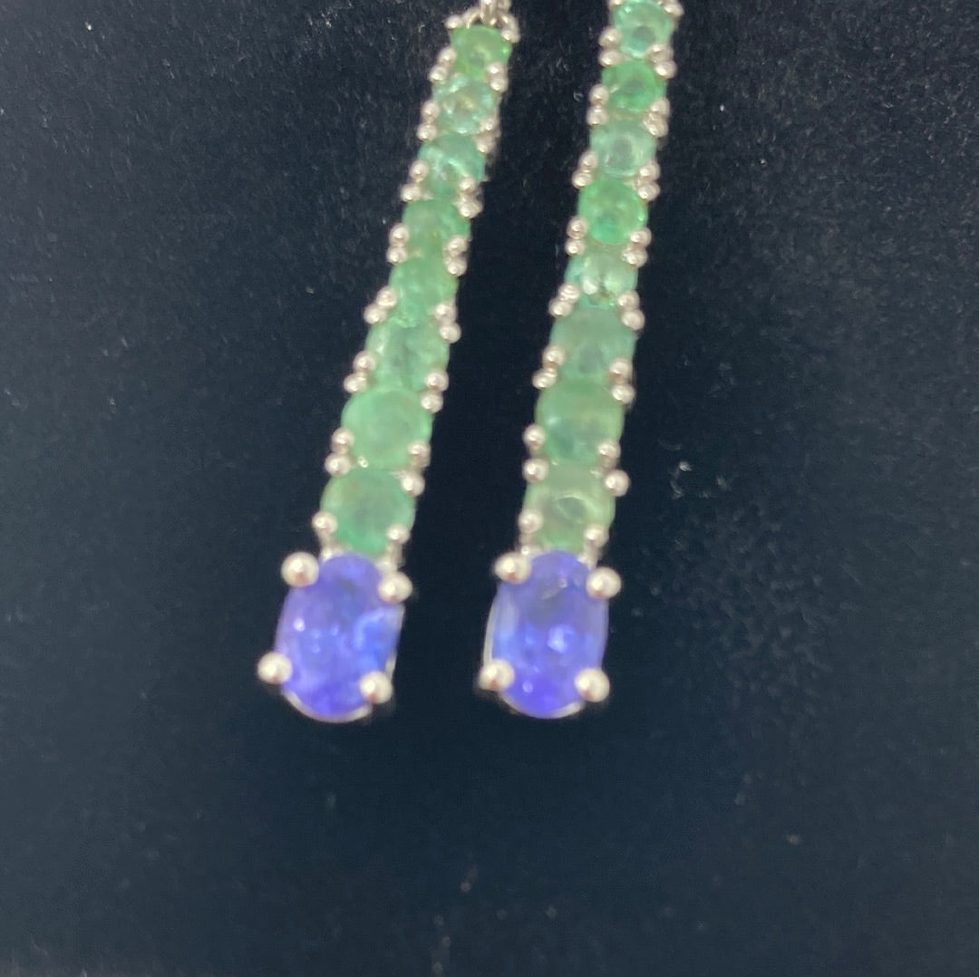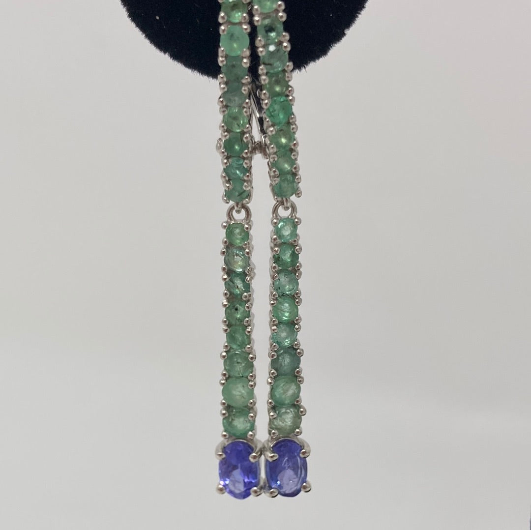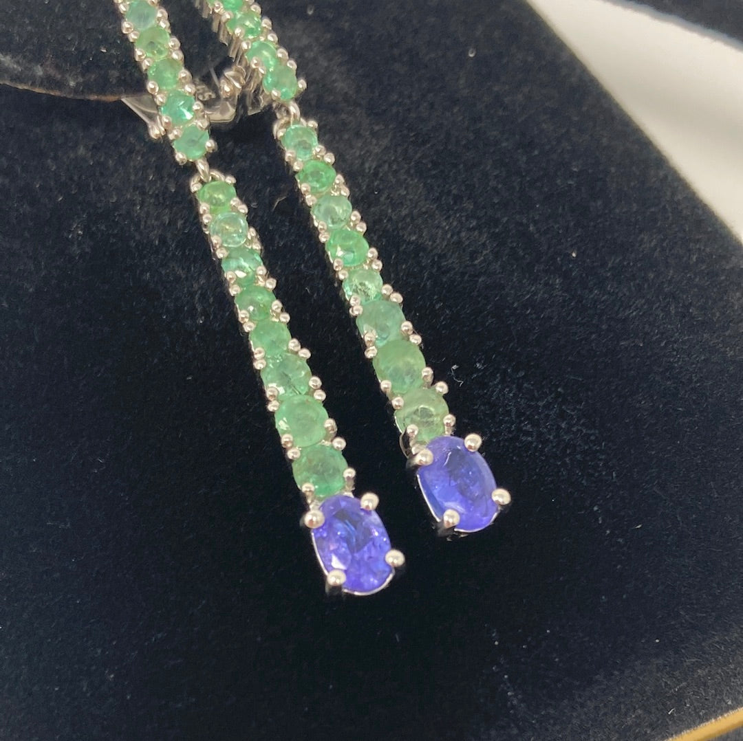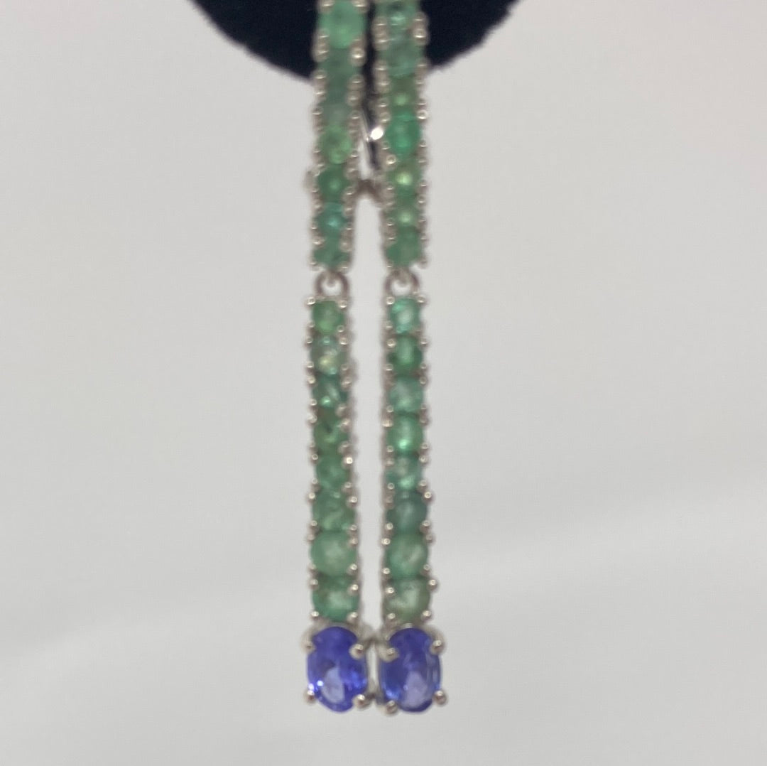 Elegance In Genuine Emerald & Tanzanite Earrings