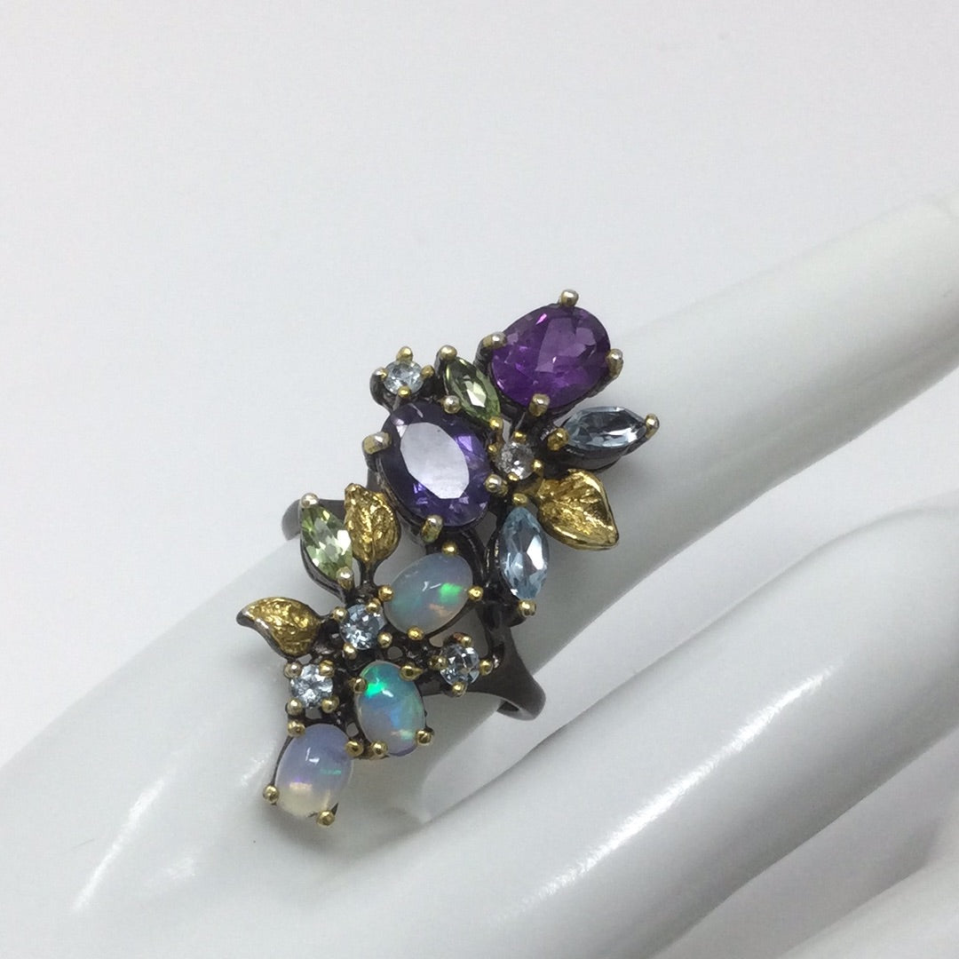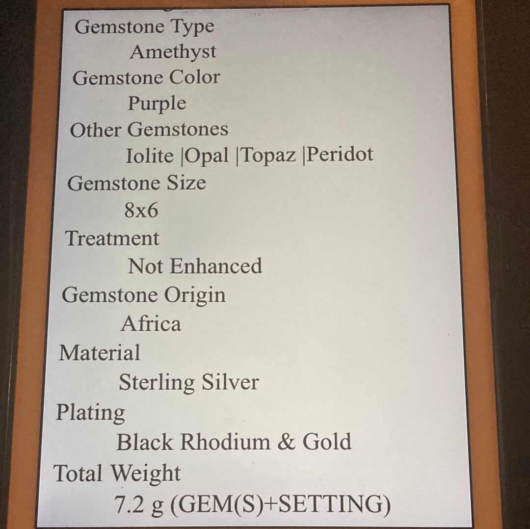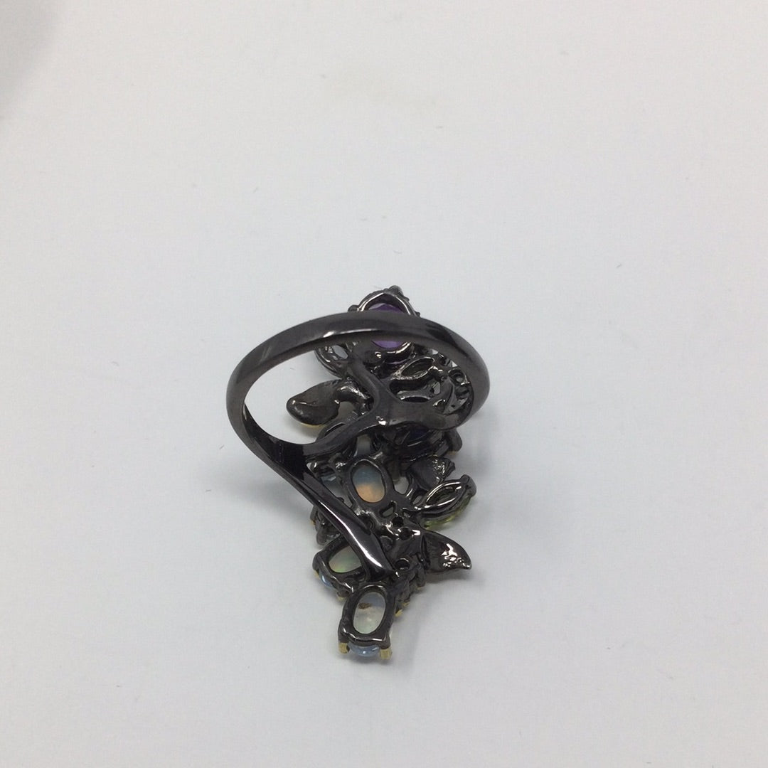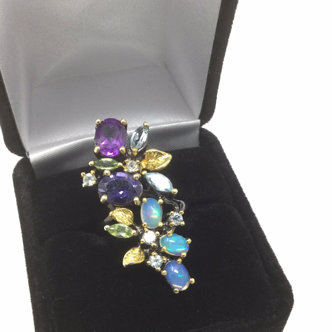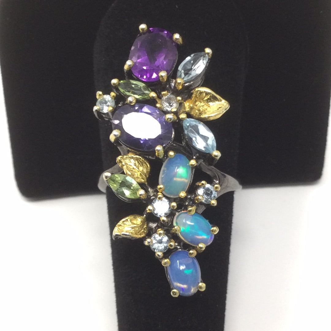 Exceptional Genuine Amethyst, Iolite, Opals & Gemstones Ring