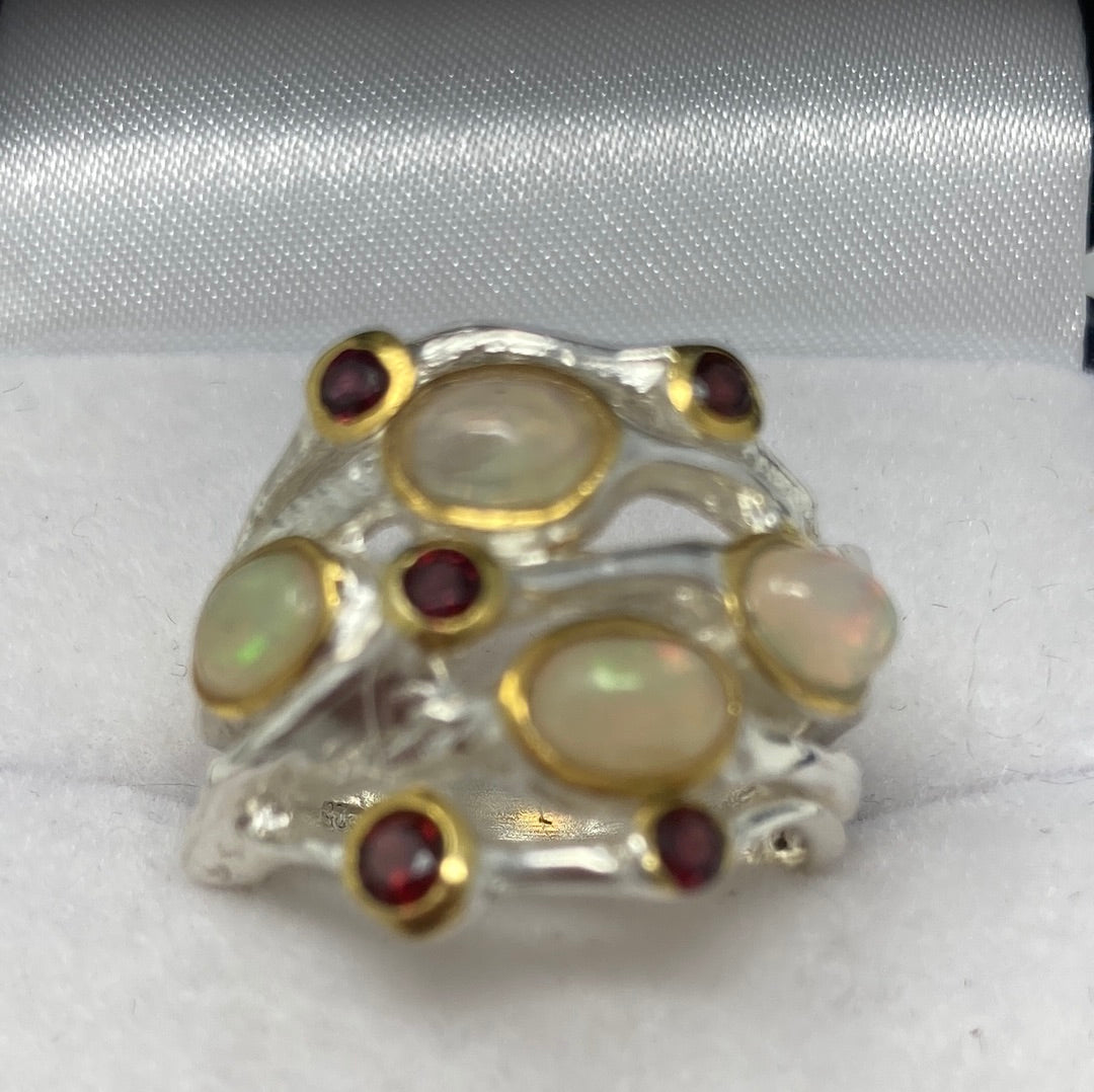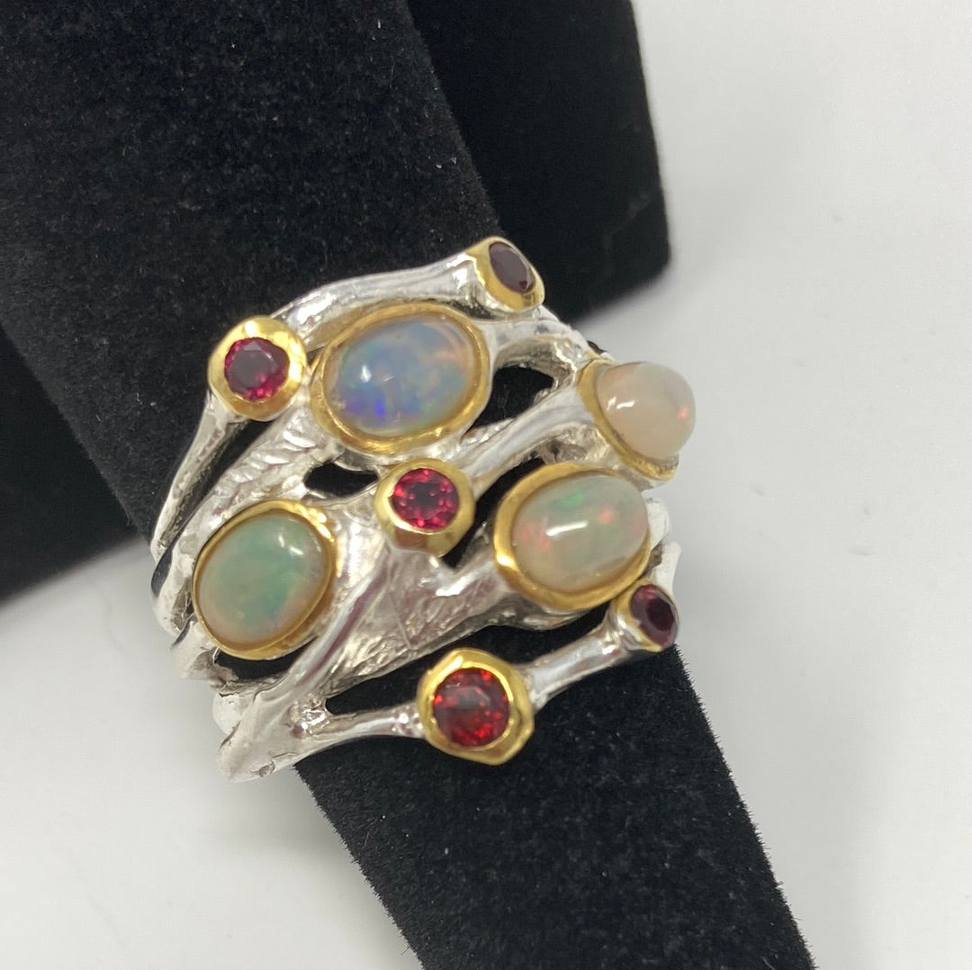 Fabulous Genuine Opal and Garnet Band Ring Band Ring