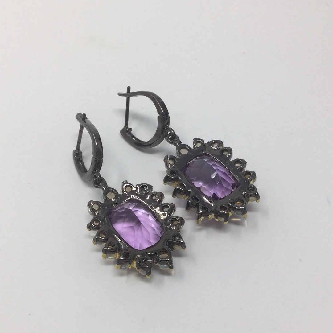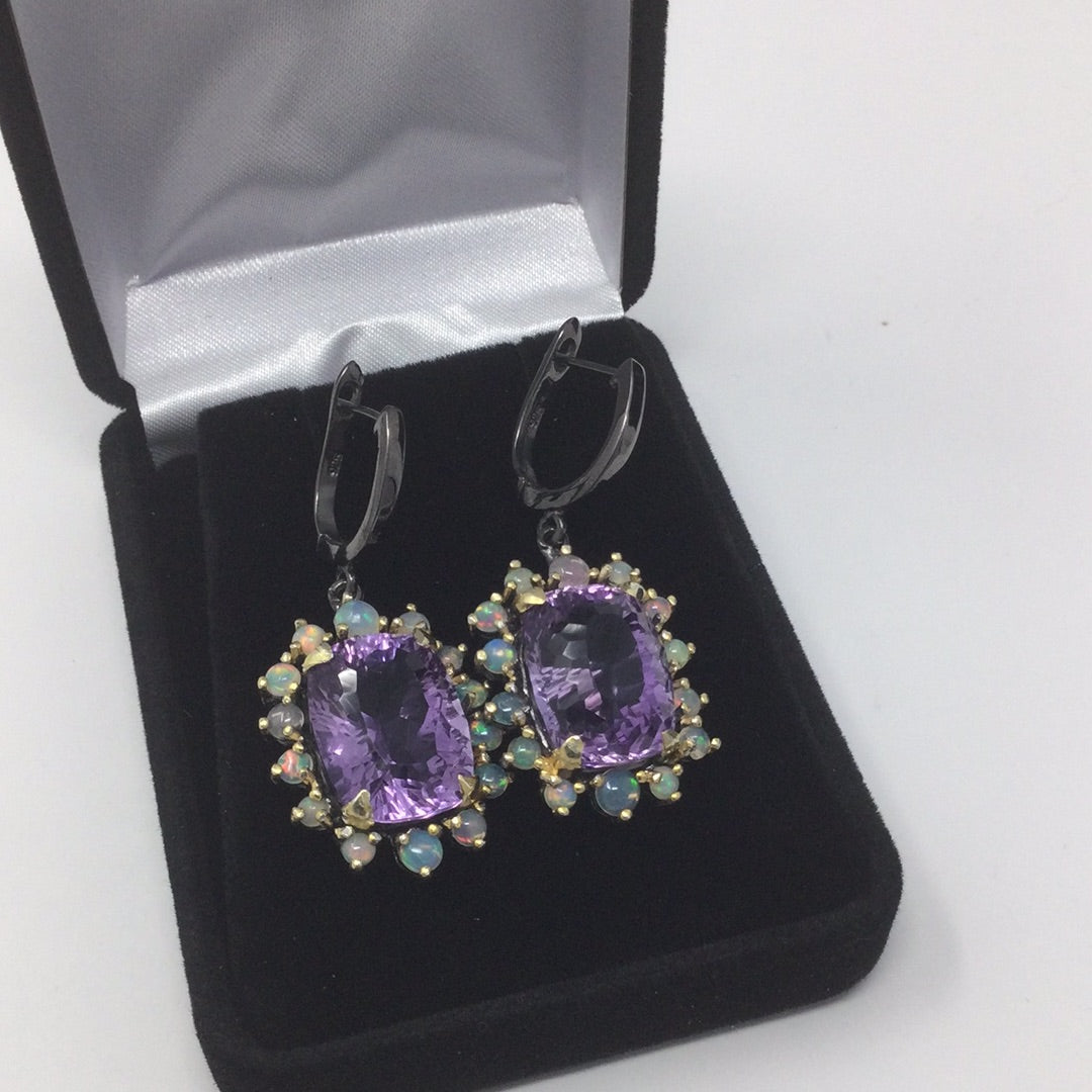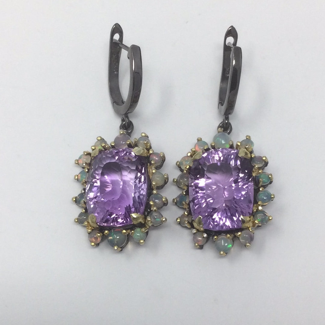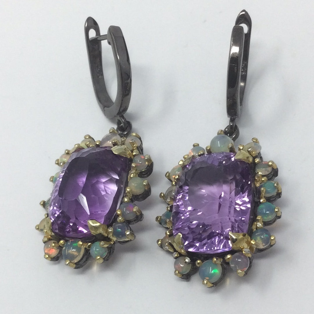 Genuine Amethyst & Opal Earrings