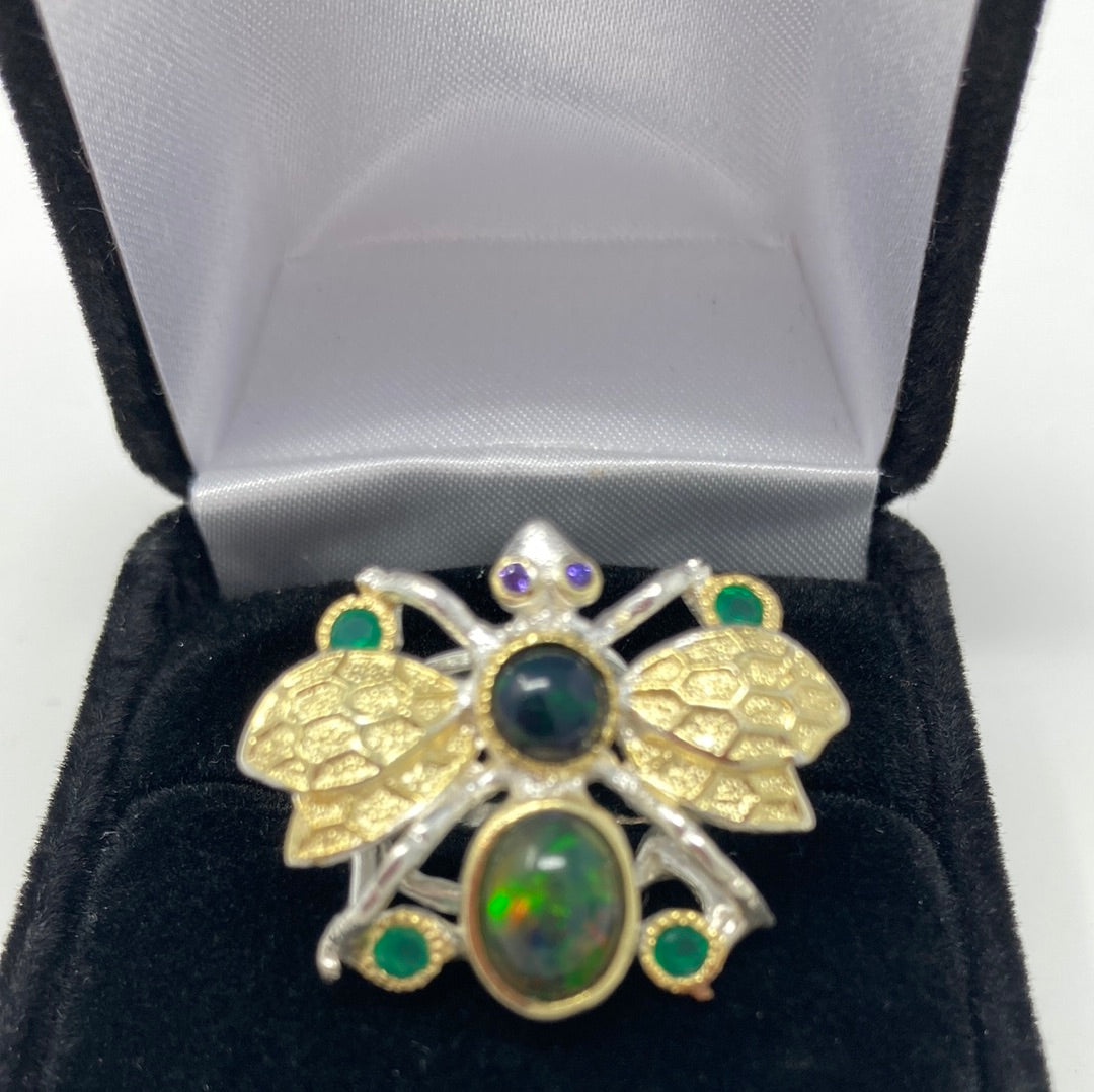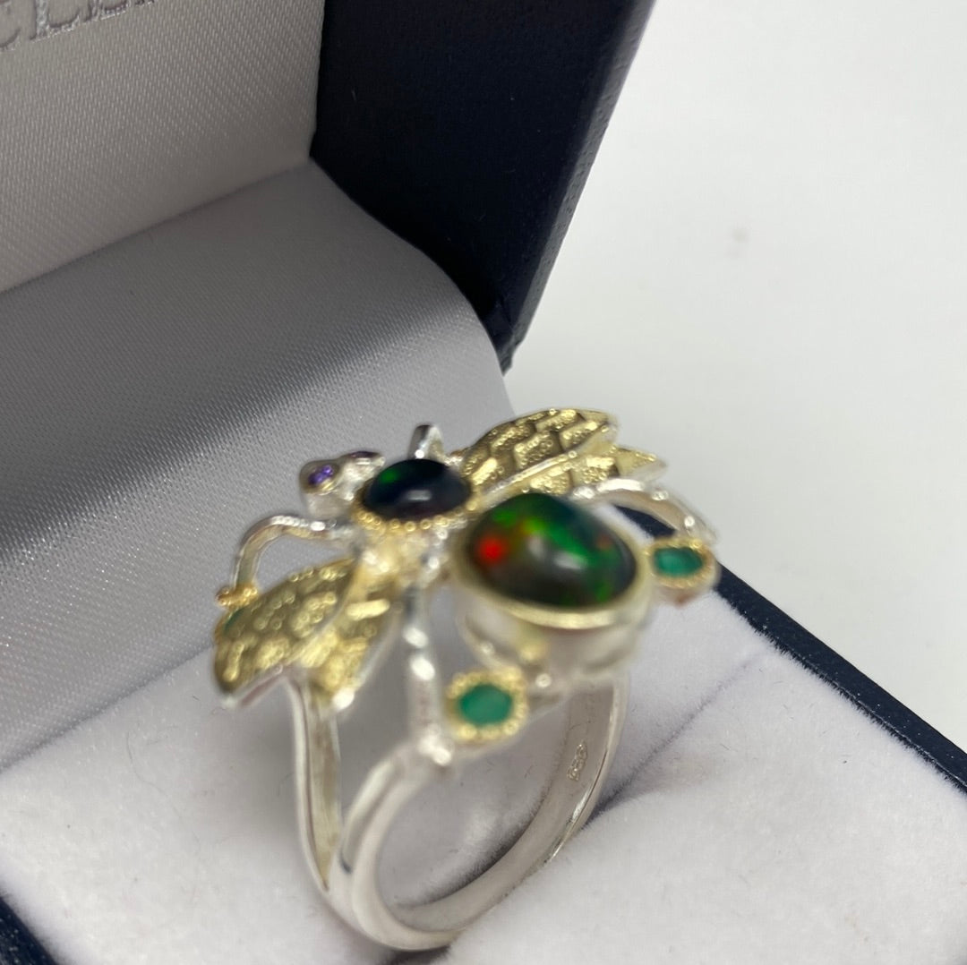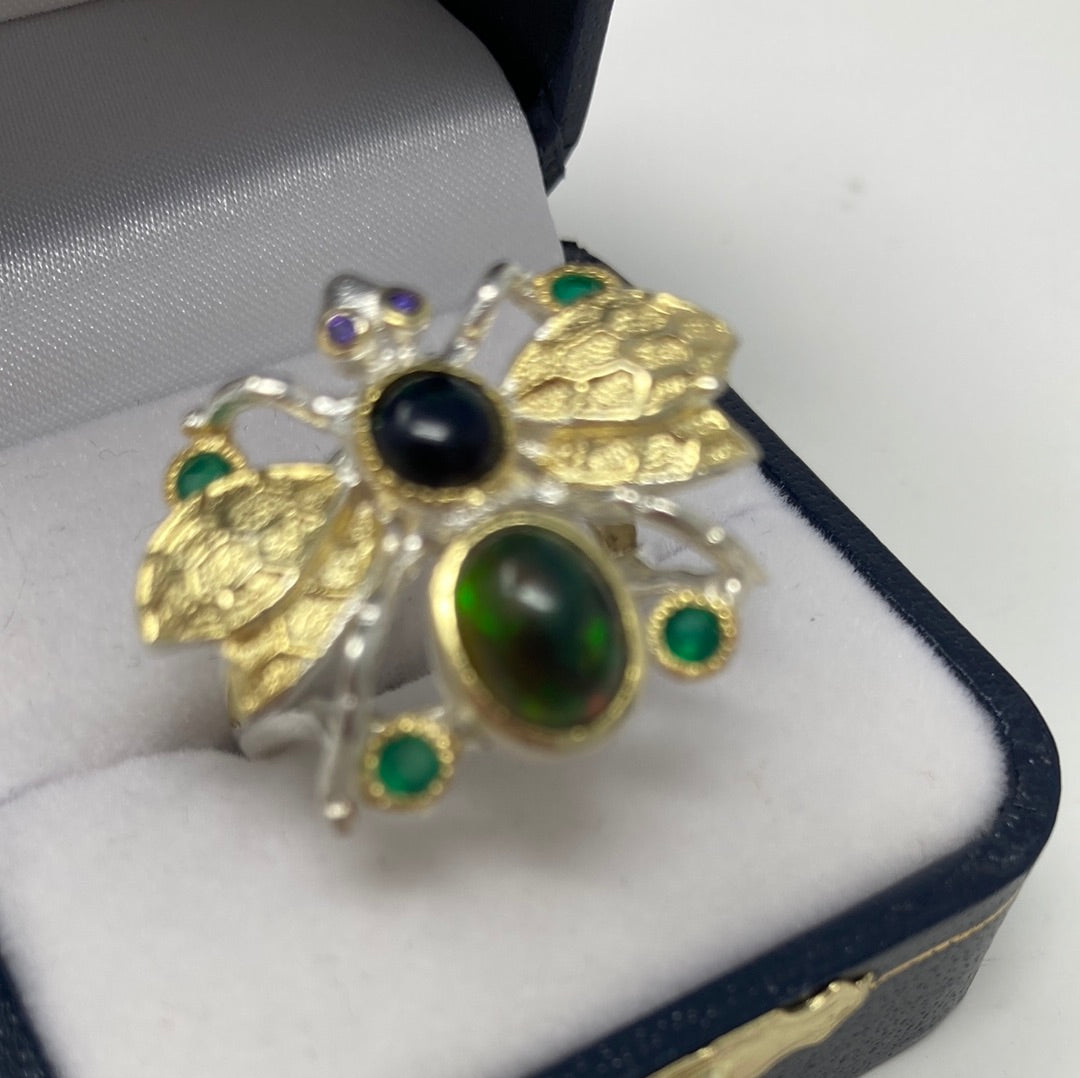 Genuine Black Opal Bee Ring.