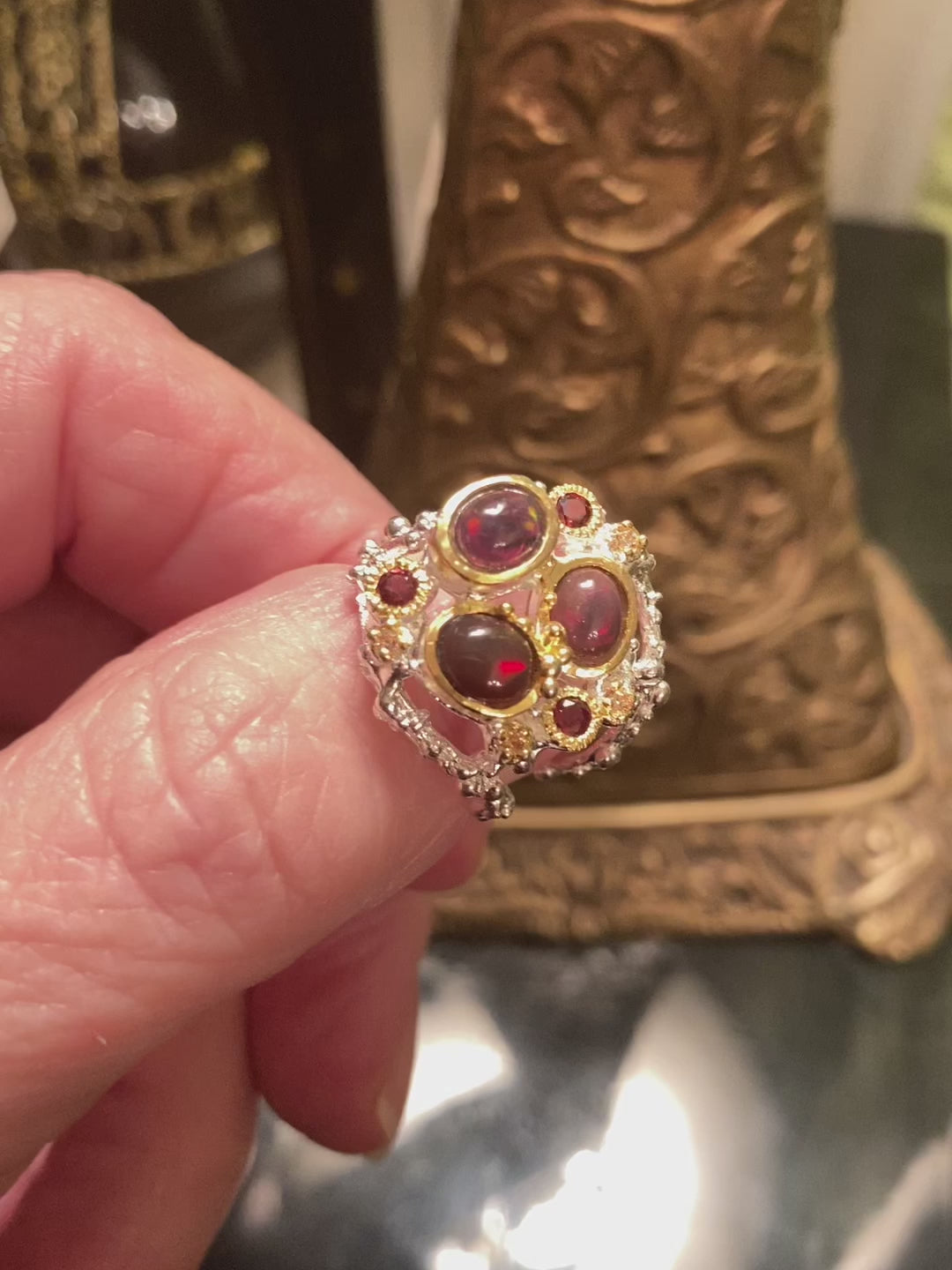 Genuine Black Opal & Garnet Ring