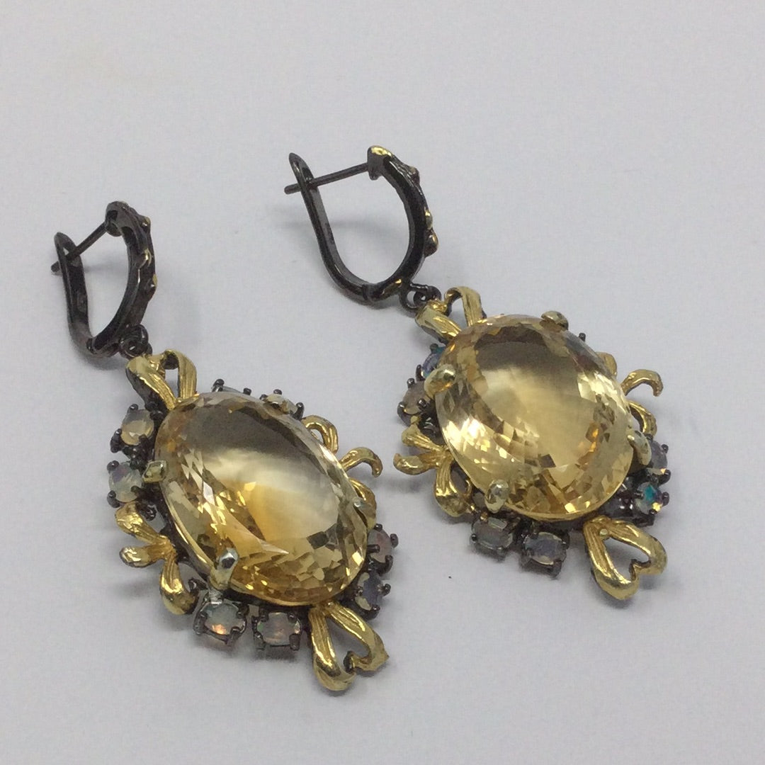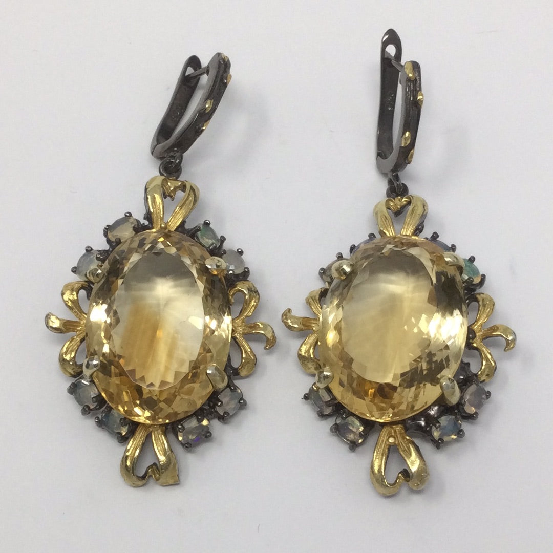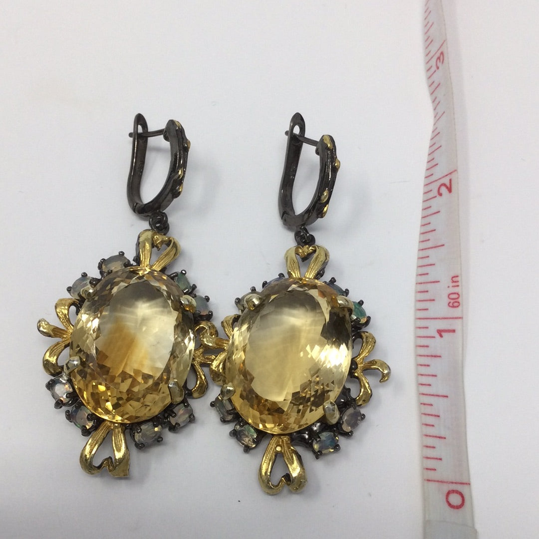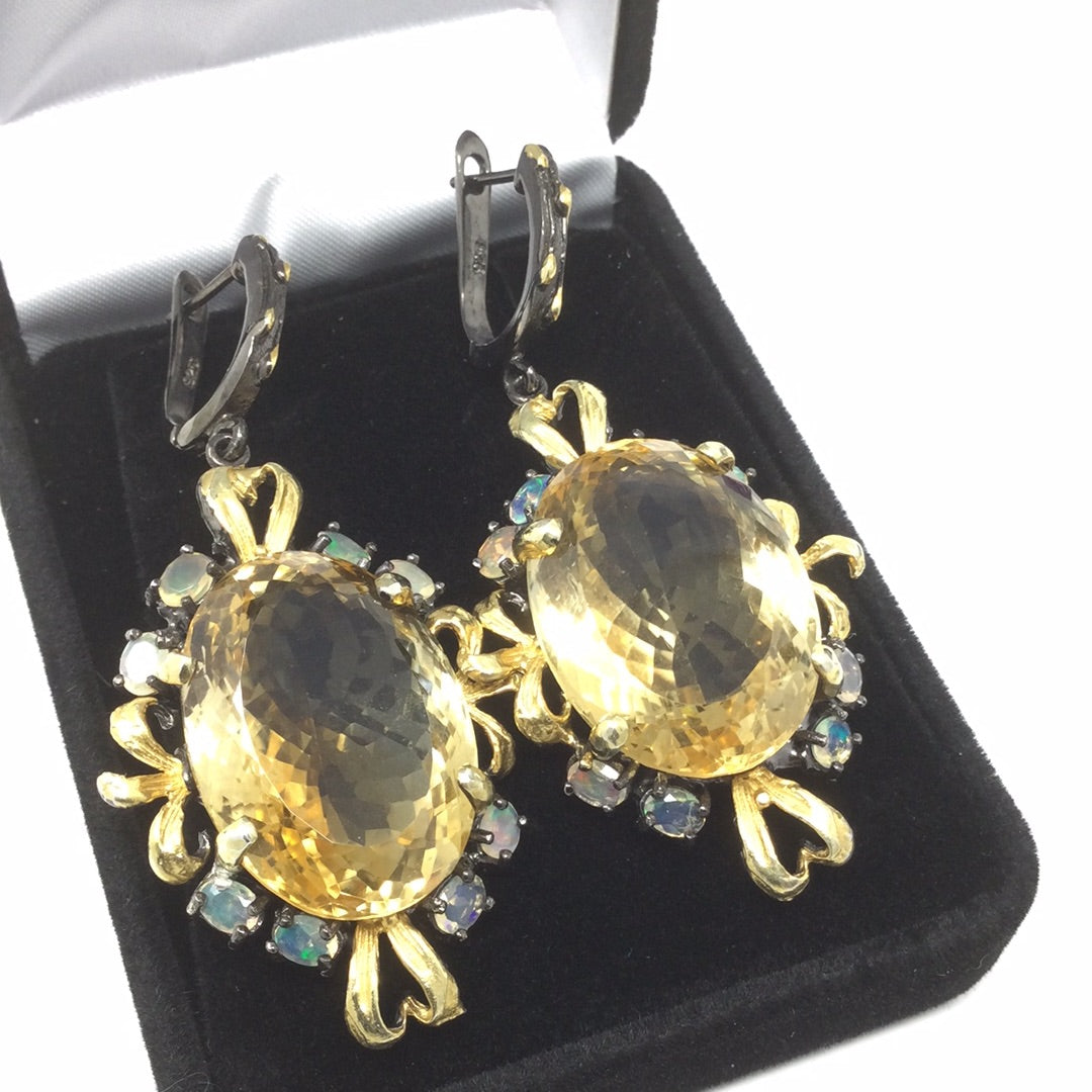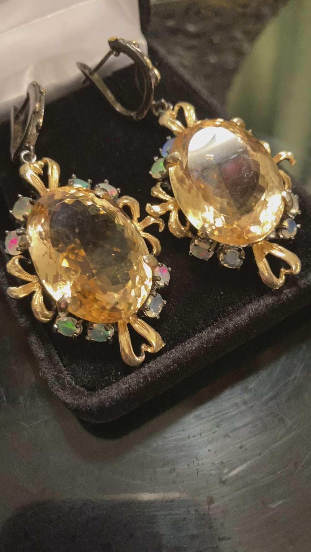 An amazing combined total CTW weight of over 70 CTW! These genuine gemstones have it all, cur, color and clarity, surrounded by genuine faceted Opals. A super special gemstone treasure that is affordable and a good investment! All custom made, a one of a kind using the finest quality gemstones. An important addition to your gemstone collection, always classy. Set in .925 sterling silver with a Rhodium overlay and accents of 14K yellow gold. Approximately 1 1/2” Long