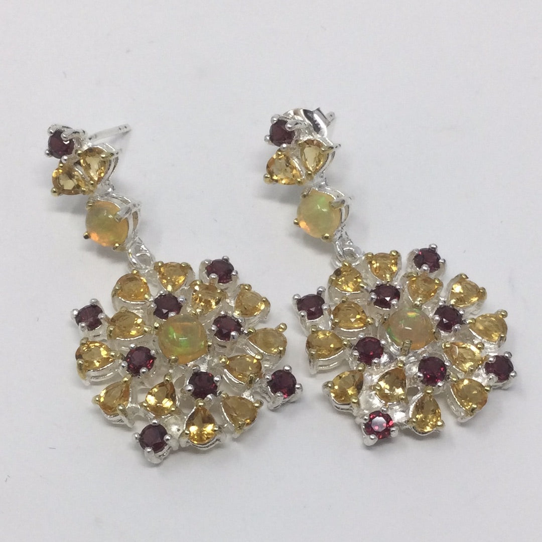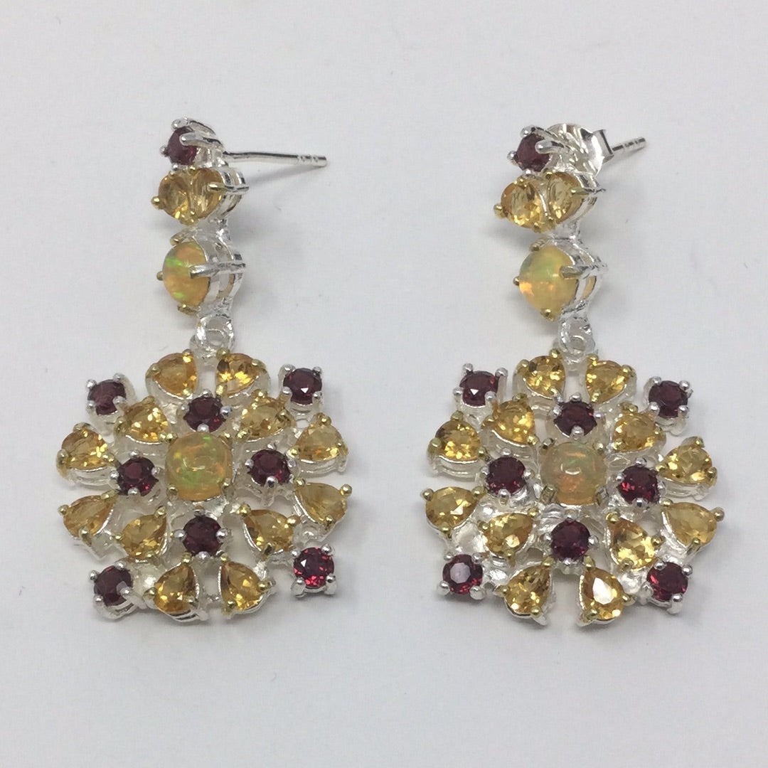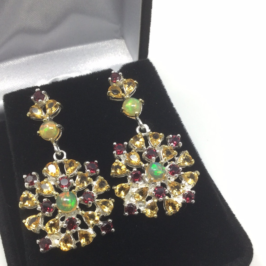 Genuine Opal, Citrine & Garnet Earrings