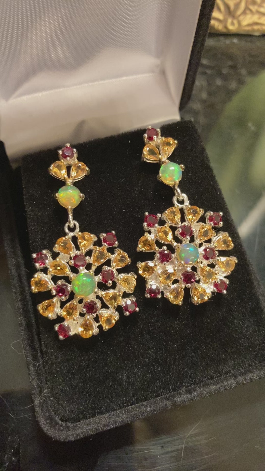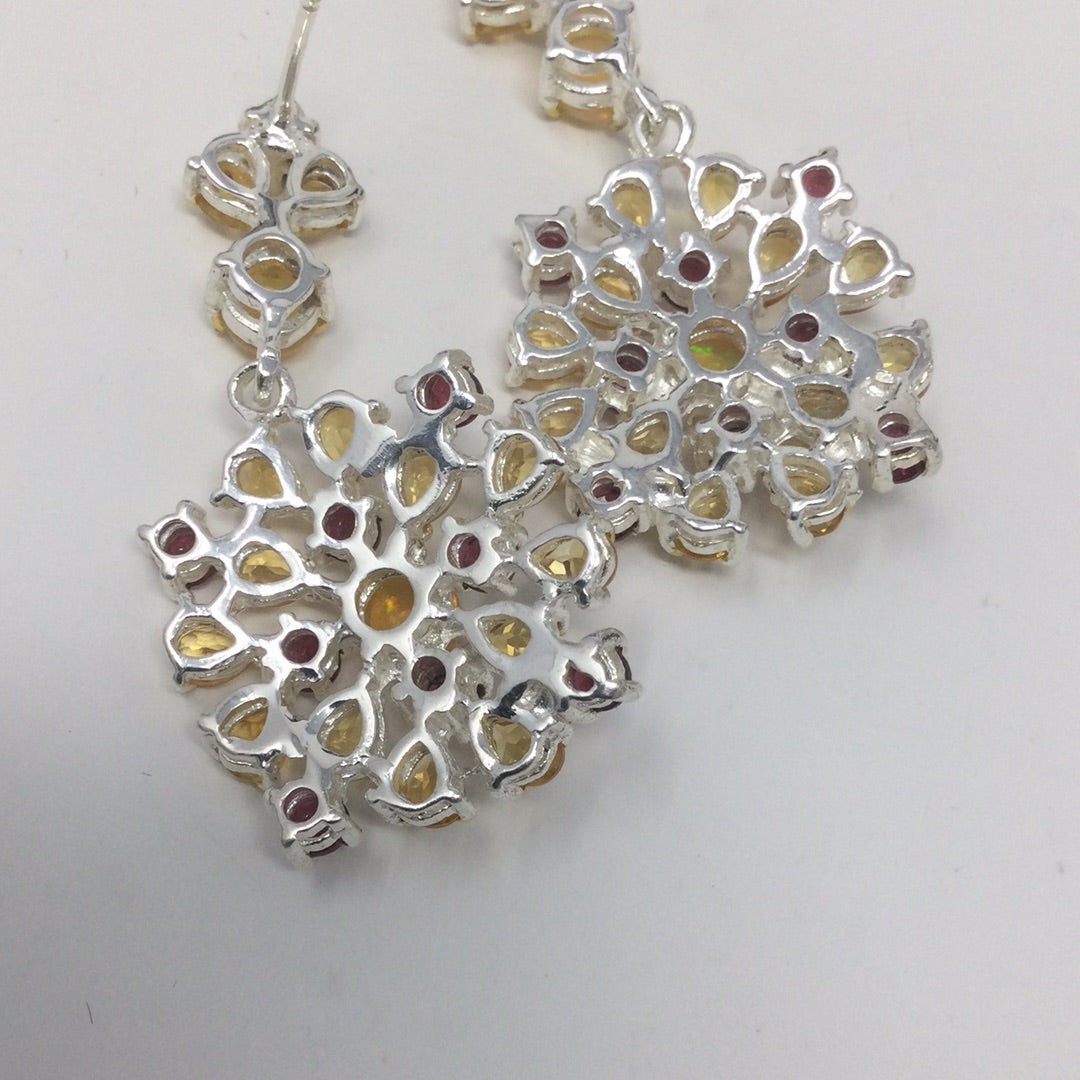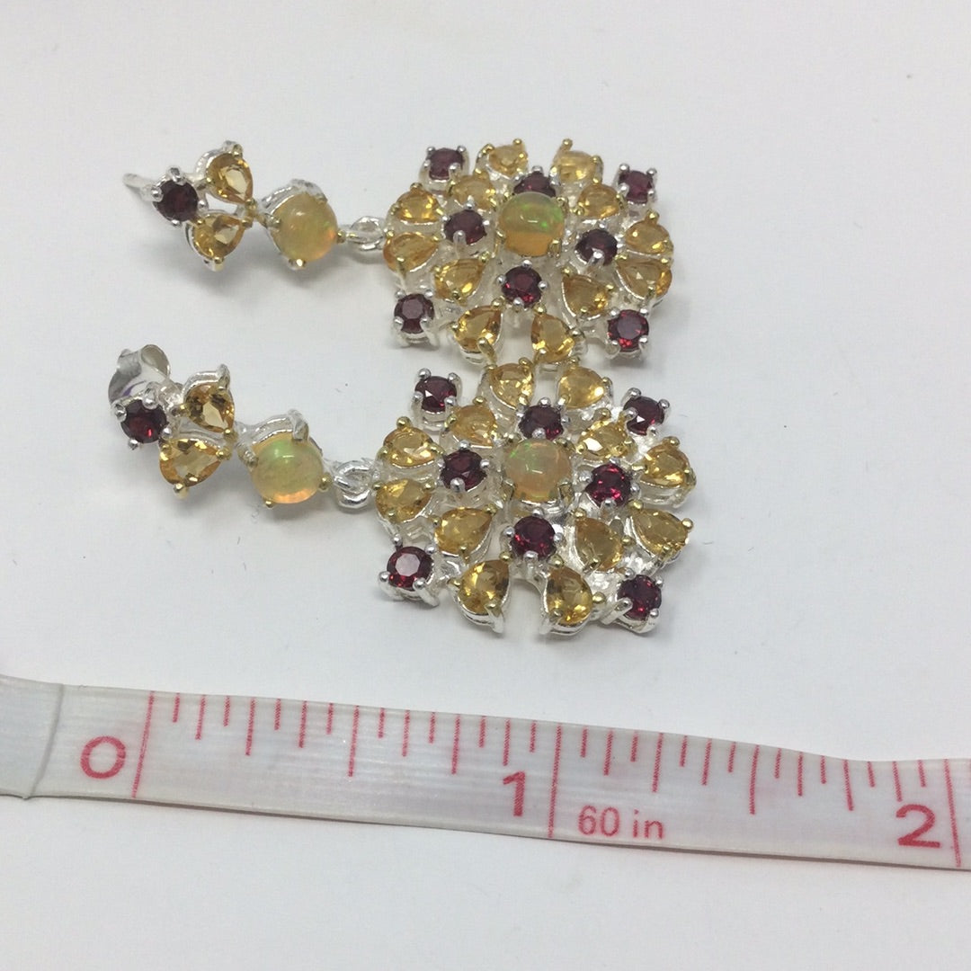 Genuine Opal, Citrine & Garnet Earrings