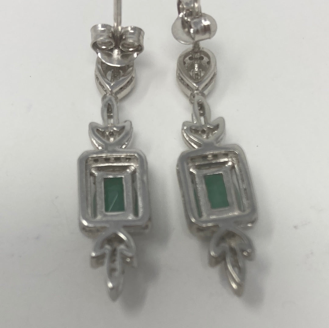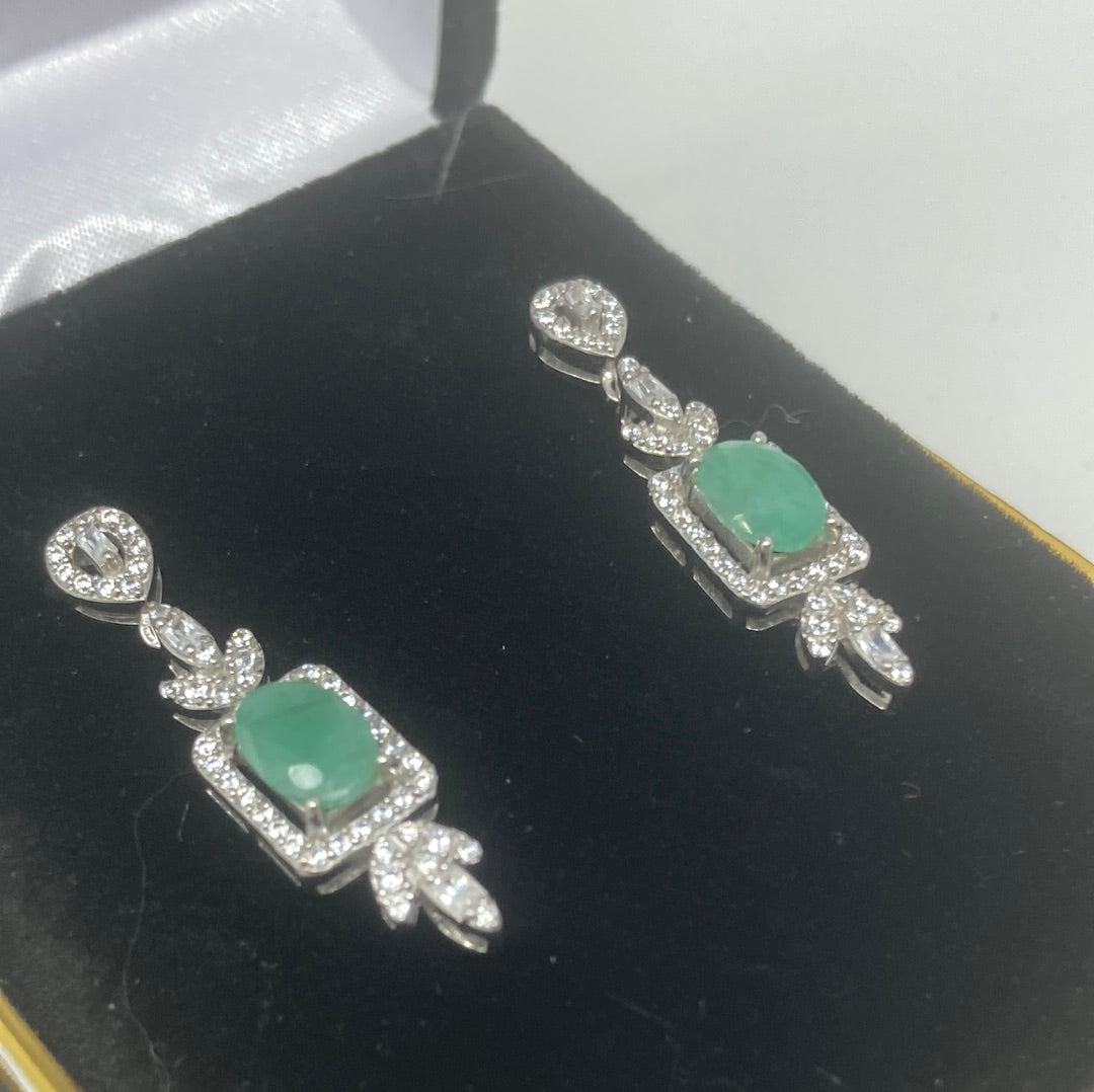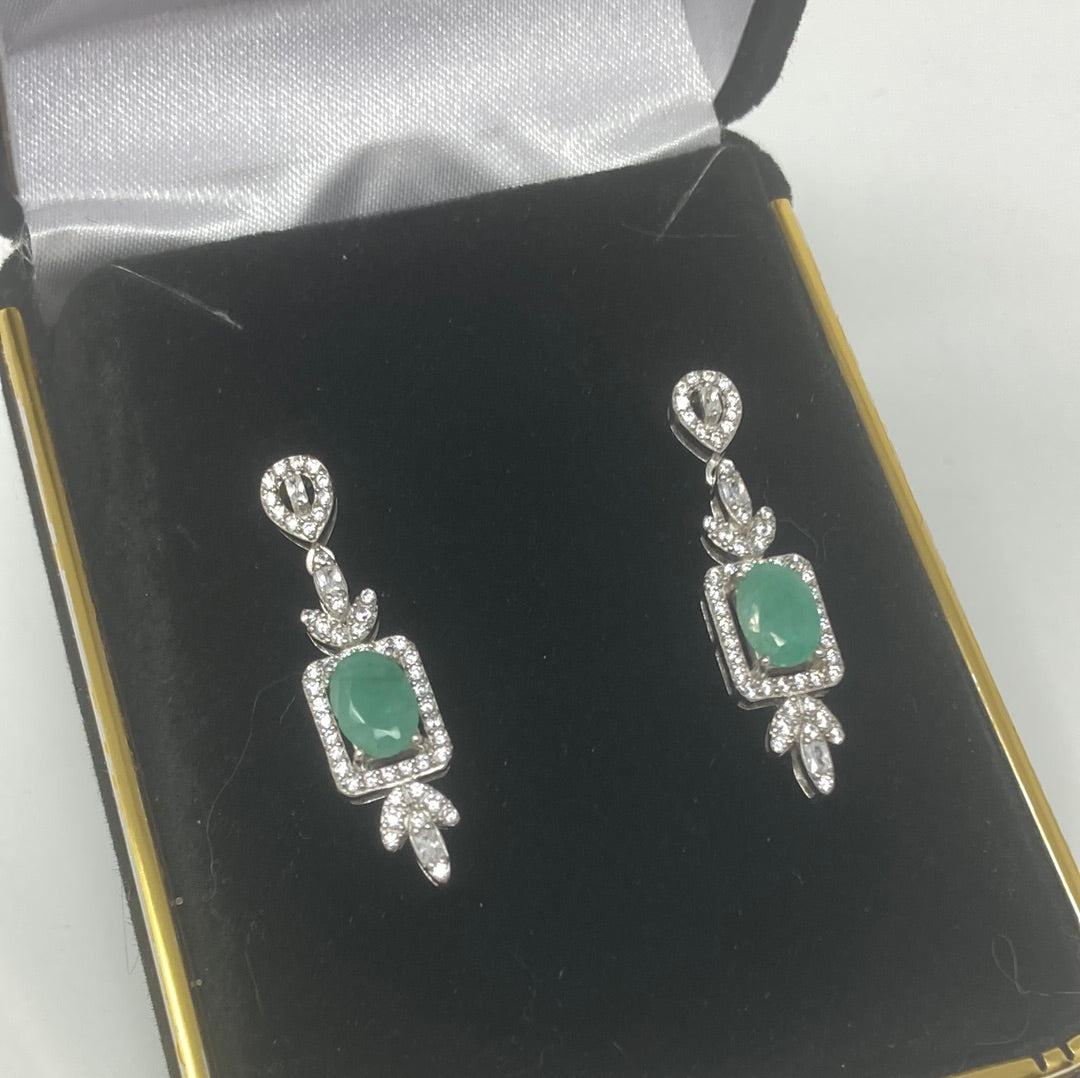Such elegance that is exceptionally classy way to frame your face. Every girl should own genuine Emeralds, life time jewelry investment for the future These earrings feature genuine 7mm by 5mm faceted Emeralds set in .925 Sterling Silver accented with tiny CZs to accent the Genuine Emeralds. Pamper your inner queen and invest in yourself. Approximately 1” long