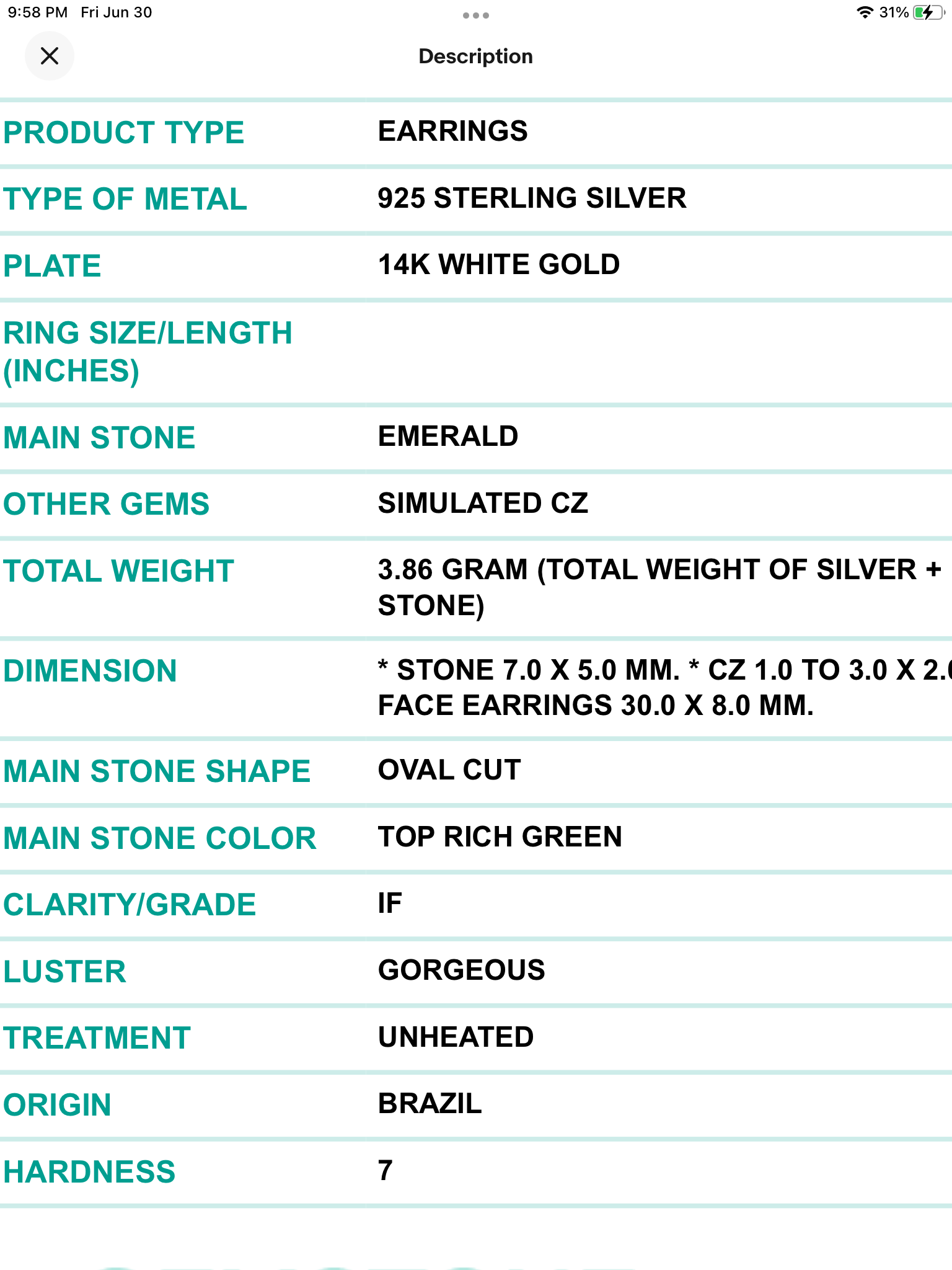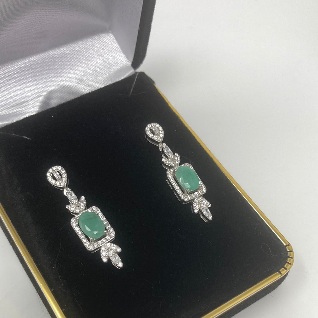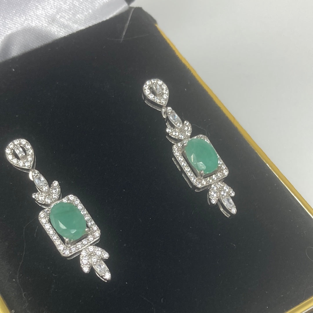 Such elegance that is exceptionally classy way to frame your face. Every girl should own genuine Emeralds, life time jewelry investment for the future These earrings feature genuine 7mm by 5mm faceted Emeralds set in .925 Sterling Silver accented with tiny CZs to accent the Genuine Emeralds. Pamper your inner queen and invest in yourself. Approximately 1” long