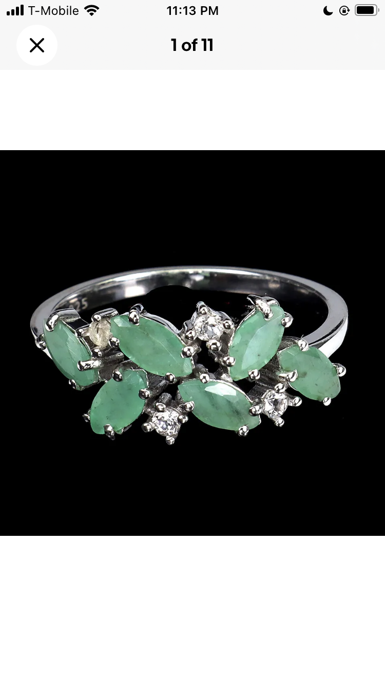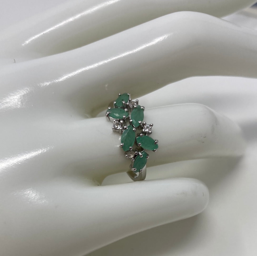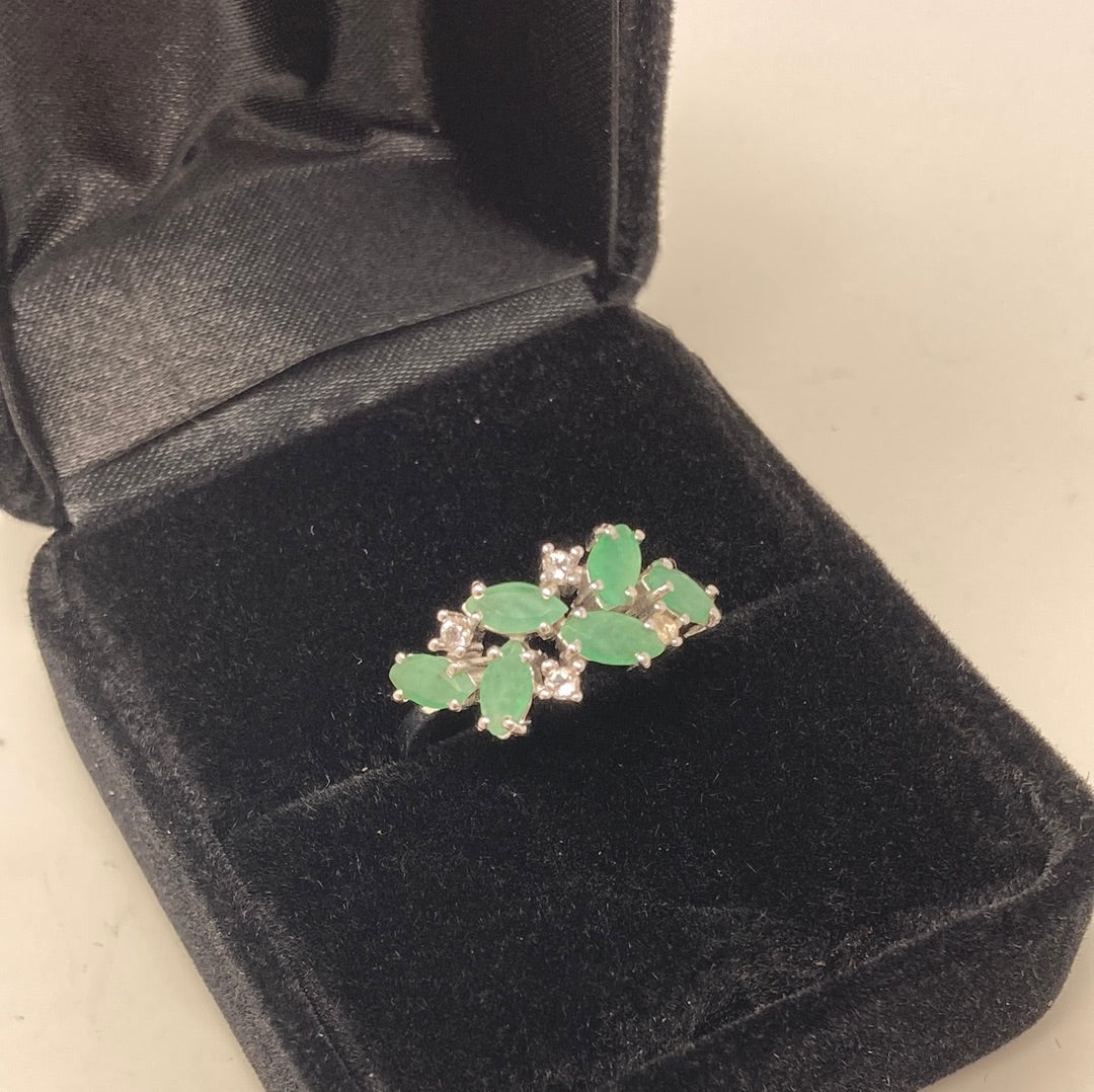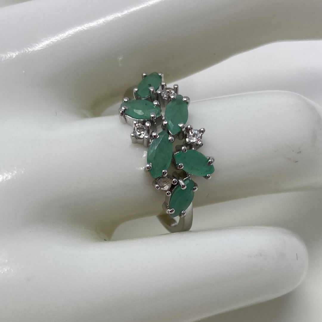 A suburb, classic genuine Emerald ring accented with White Topaz. This will define your look in elegance, nothing like genuine Emeralds to have you stand apart from the crowd. Set in .925 sterling silver, a wonderful addition you your genuine gemstone jewelry collection. Size 7