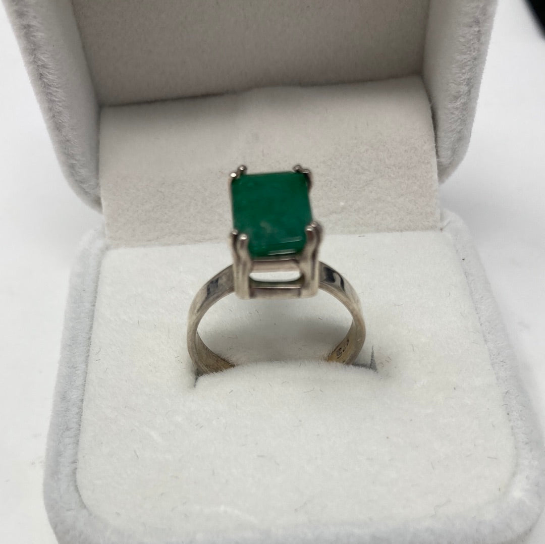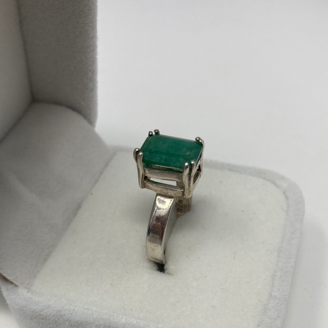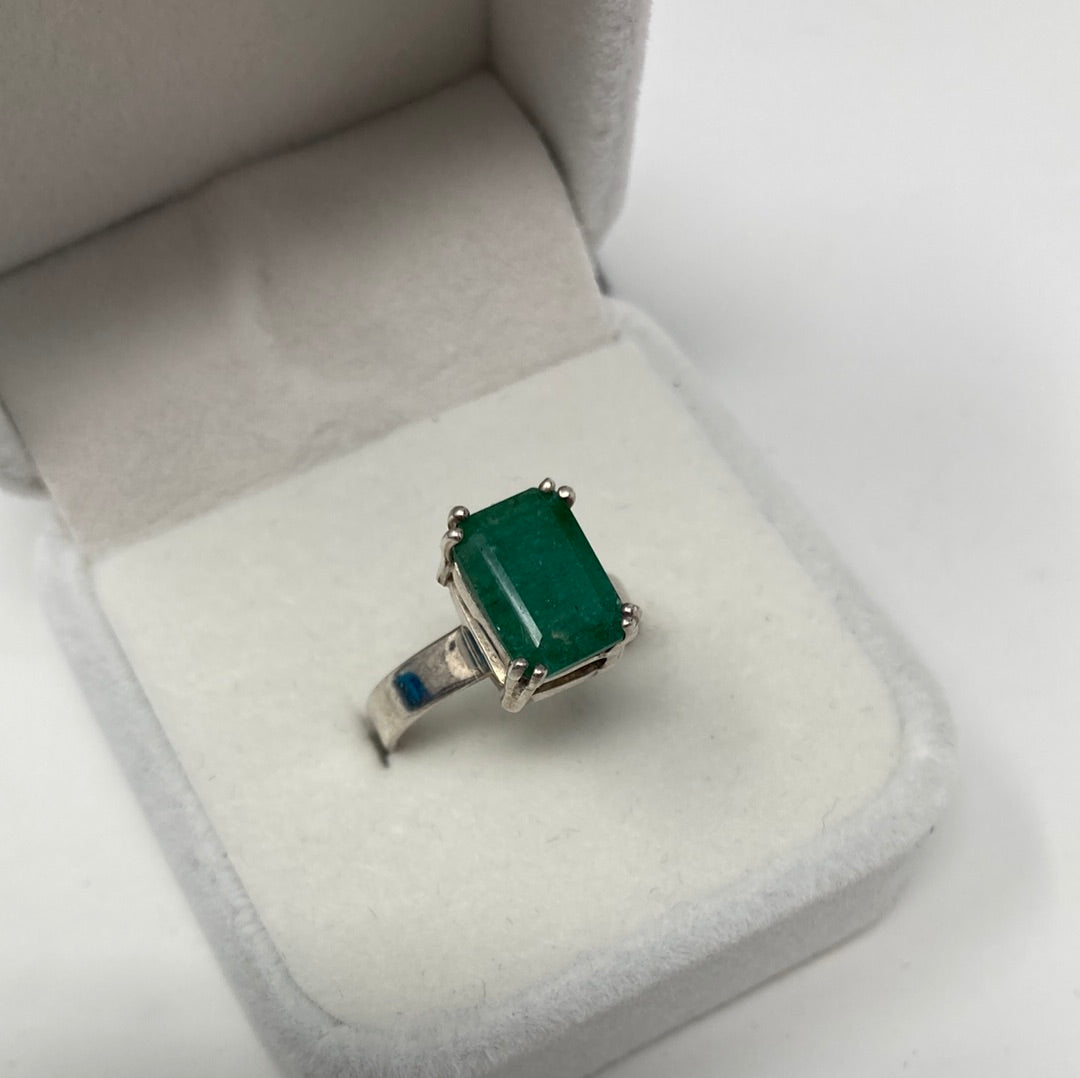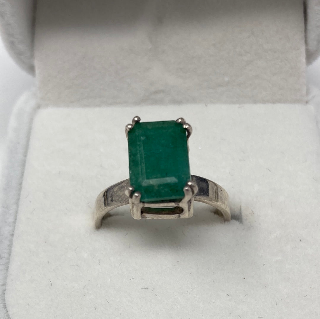 A super gorgeous genuine Emerald from Colombia, approx 10mm by 8mm, a rare find. I only have this one and I highly recommend this gemstone as investment. Just like everything else gems go up in value and are handed down from generation to generation. Always precious and a work of art from nature. Size 6, Resize at your jeweler