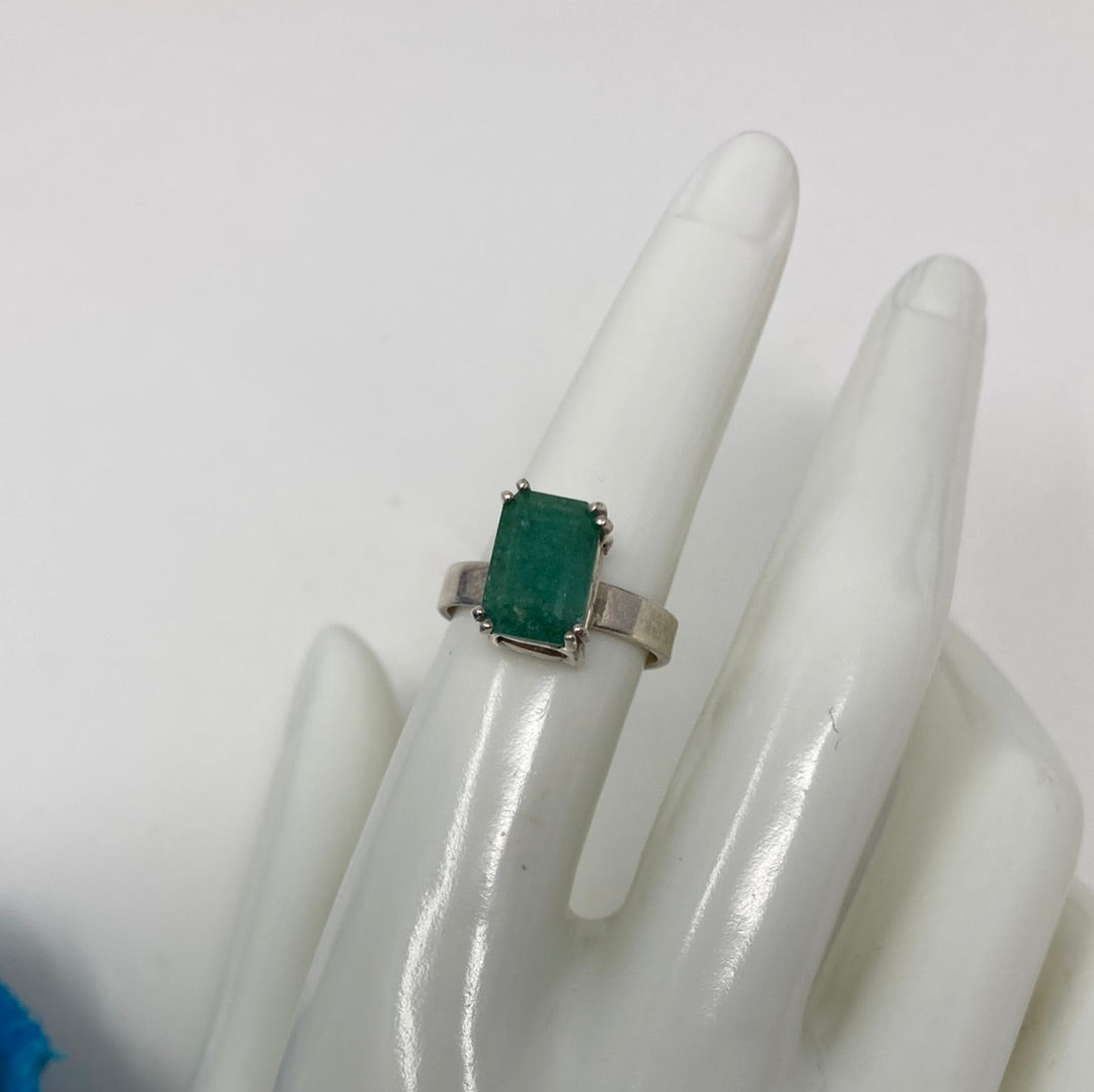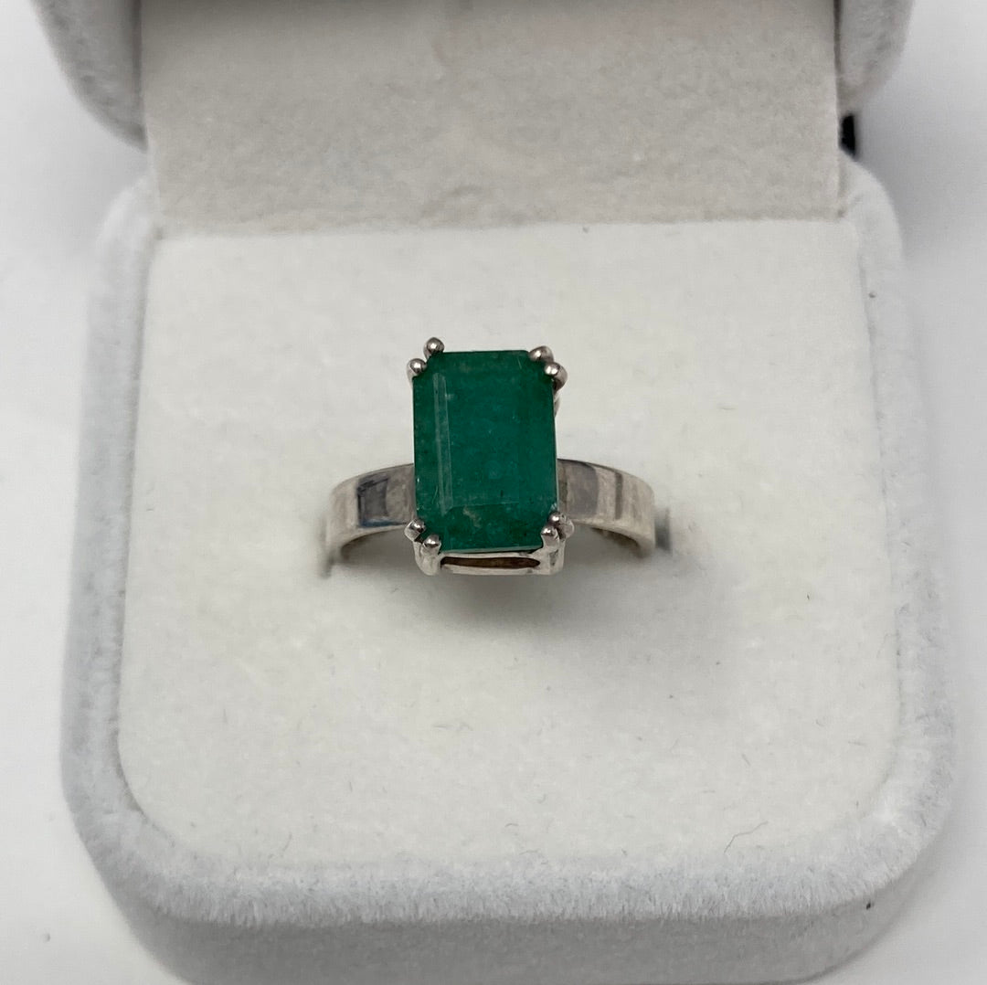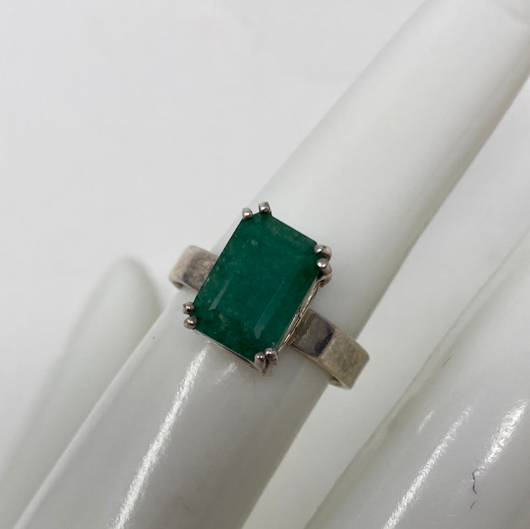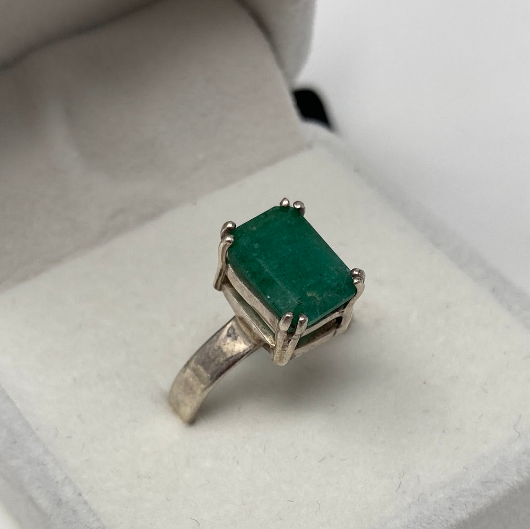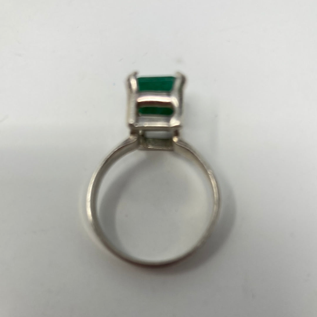 A super gorgeous genuine Emerald from Colombia, approx 10mm by 8mm, a rare find. I only have this one and I highly recommend this gemstone as investment. Just like everything else gems go up in value and are handed down from generation to generation. Always precious and a work of art from nature. Size 6, Resize at your jeweler