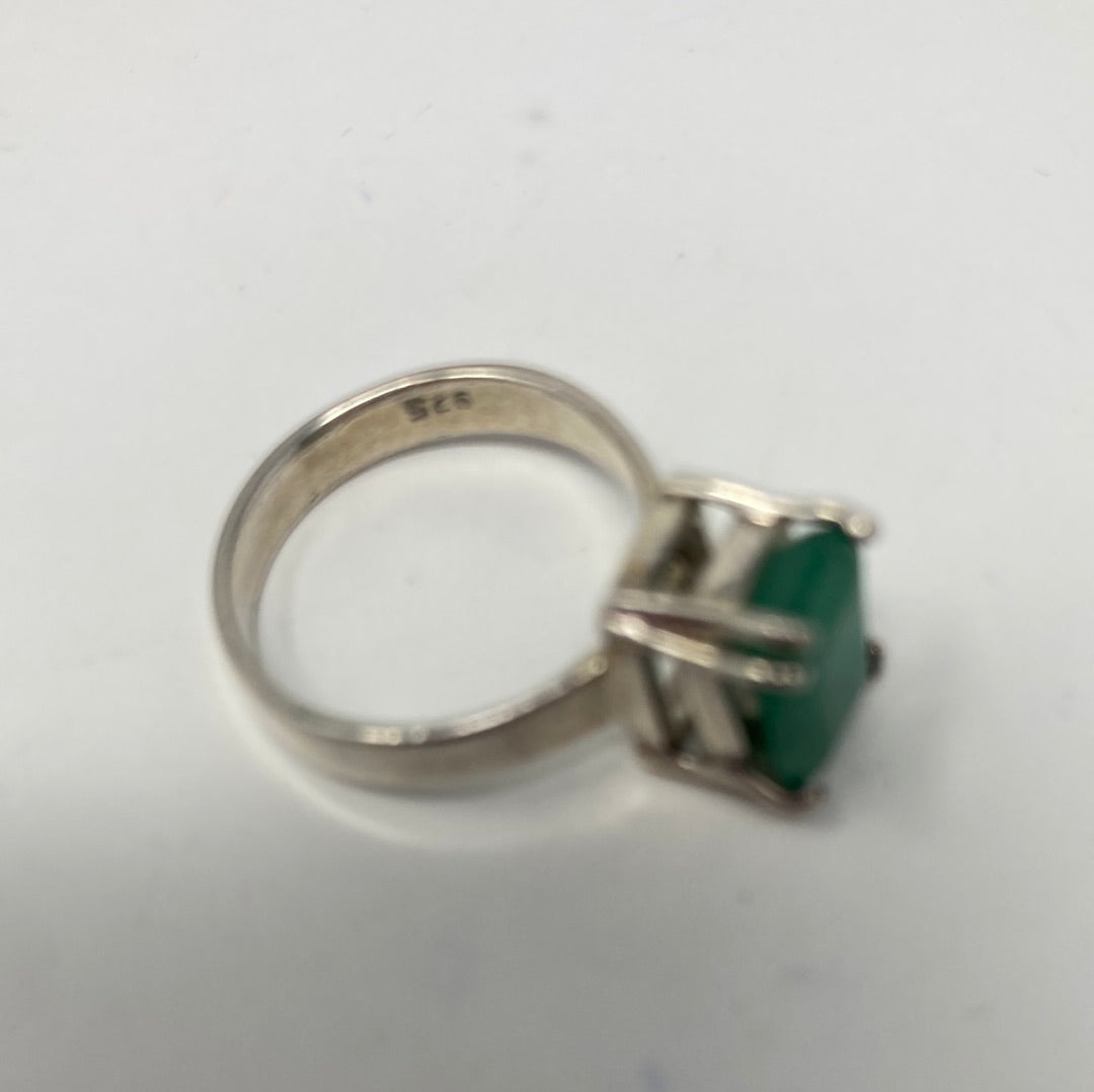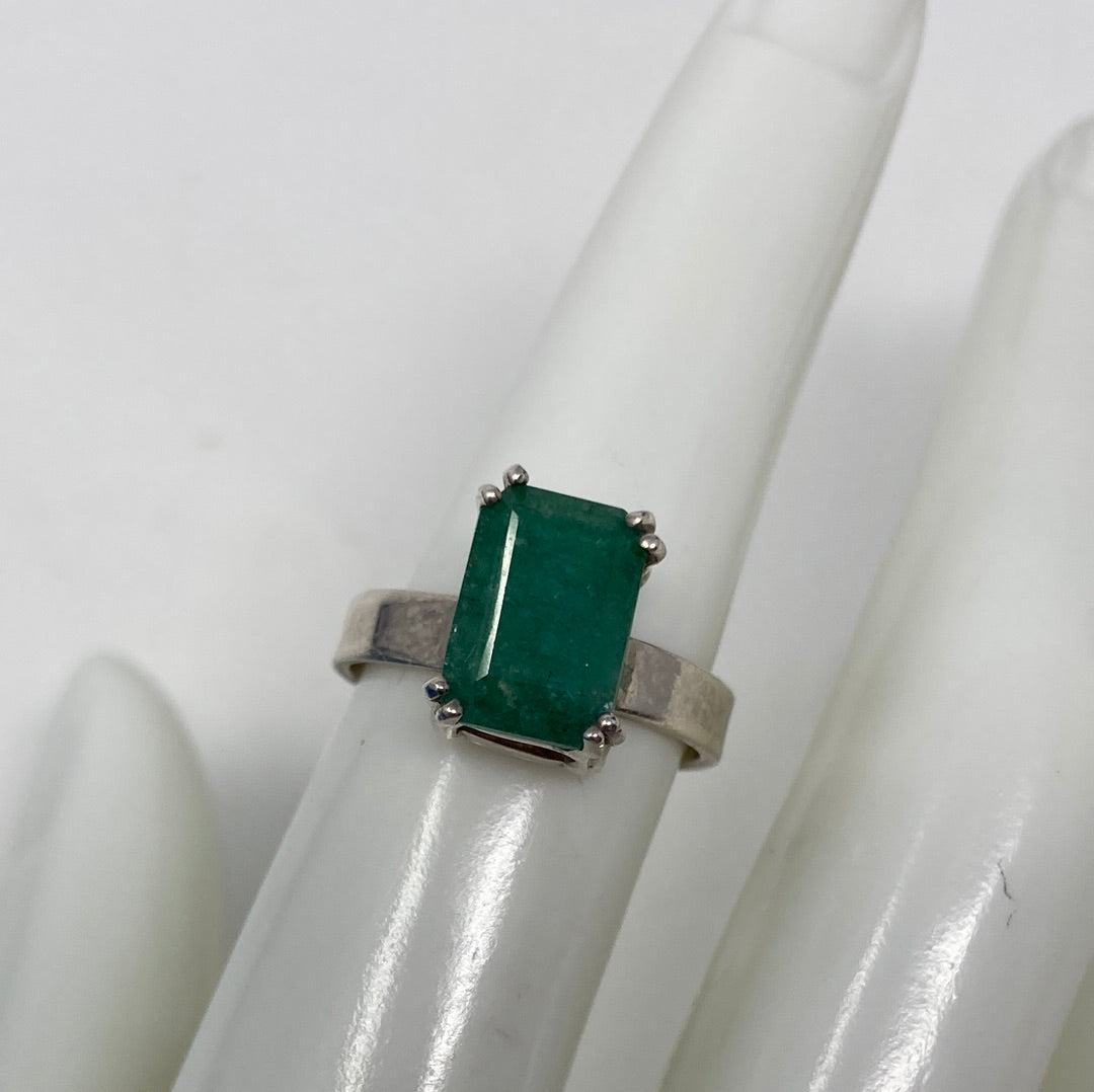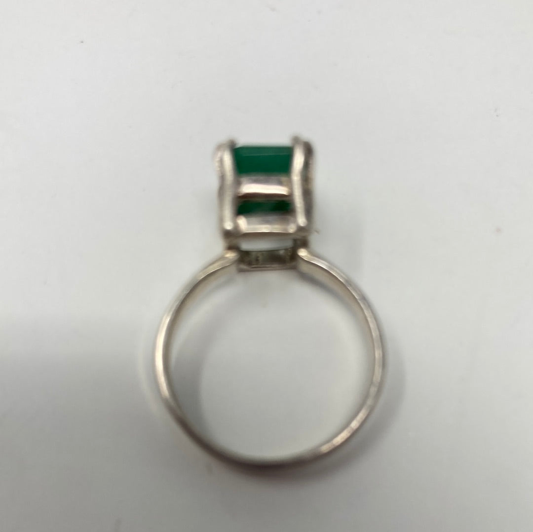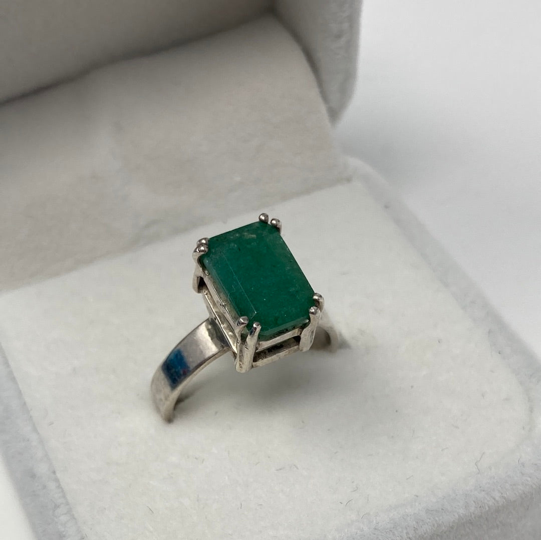 A super gorgeous genuine Emerald from Colombia, approx 10mm by 8mm, a rare find. I only have this one and I highly recommend this gemstone as investment. Just like everything else gems go up in value and are handed down from generation to generation. Always precious and a work of art from nature. Size 6, Resize at your jeweler