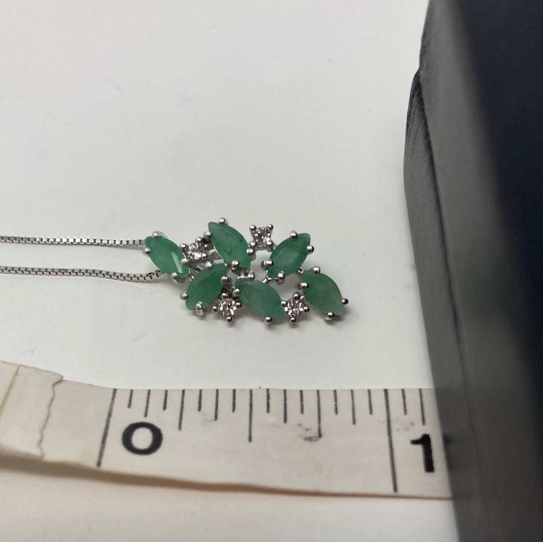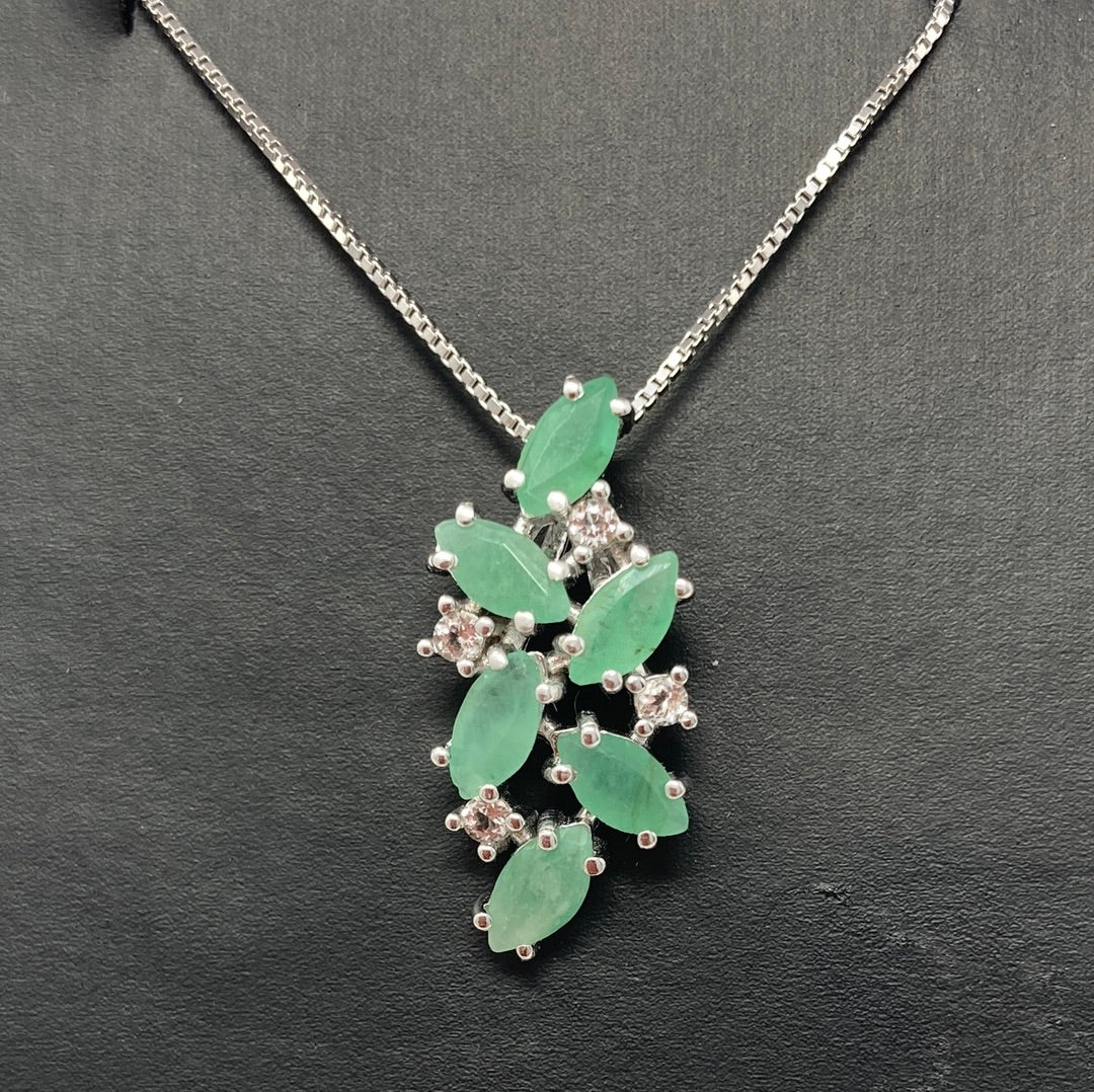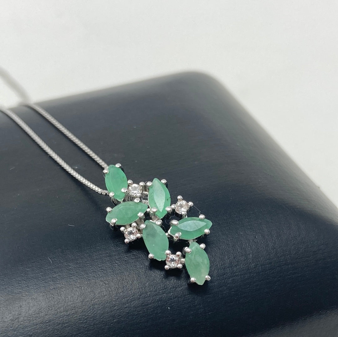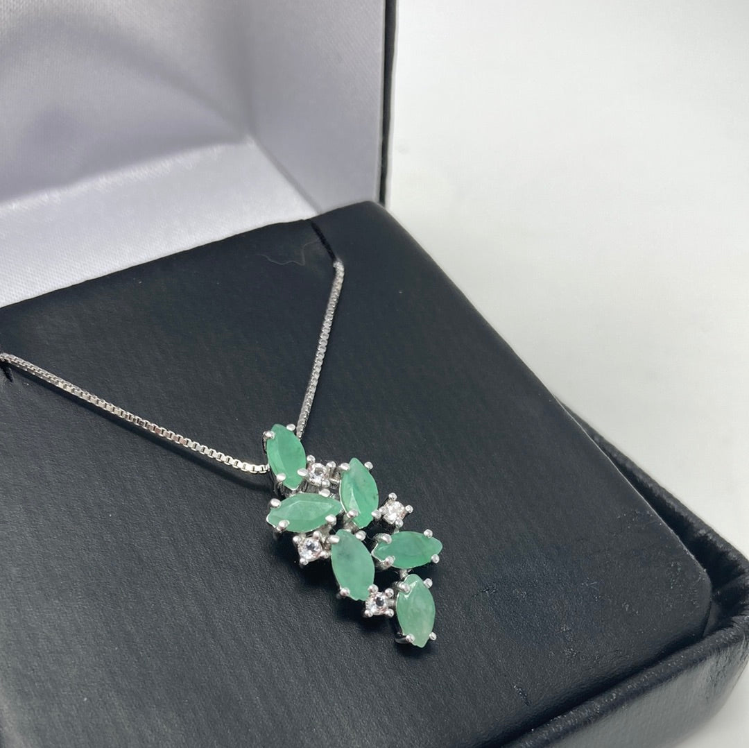 Exquisitely elegant, Genuine Emeralds, 2mm by 6mm gemstones accented with White Topaz, set in .925 sterling silver on an 18” sterling silver chain. A classy way to show your good taste, you can afford genuine Emeralds and elevate your look. I only have one available, so reward yourself.