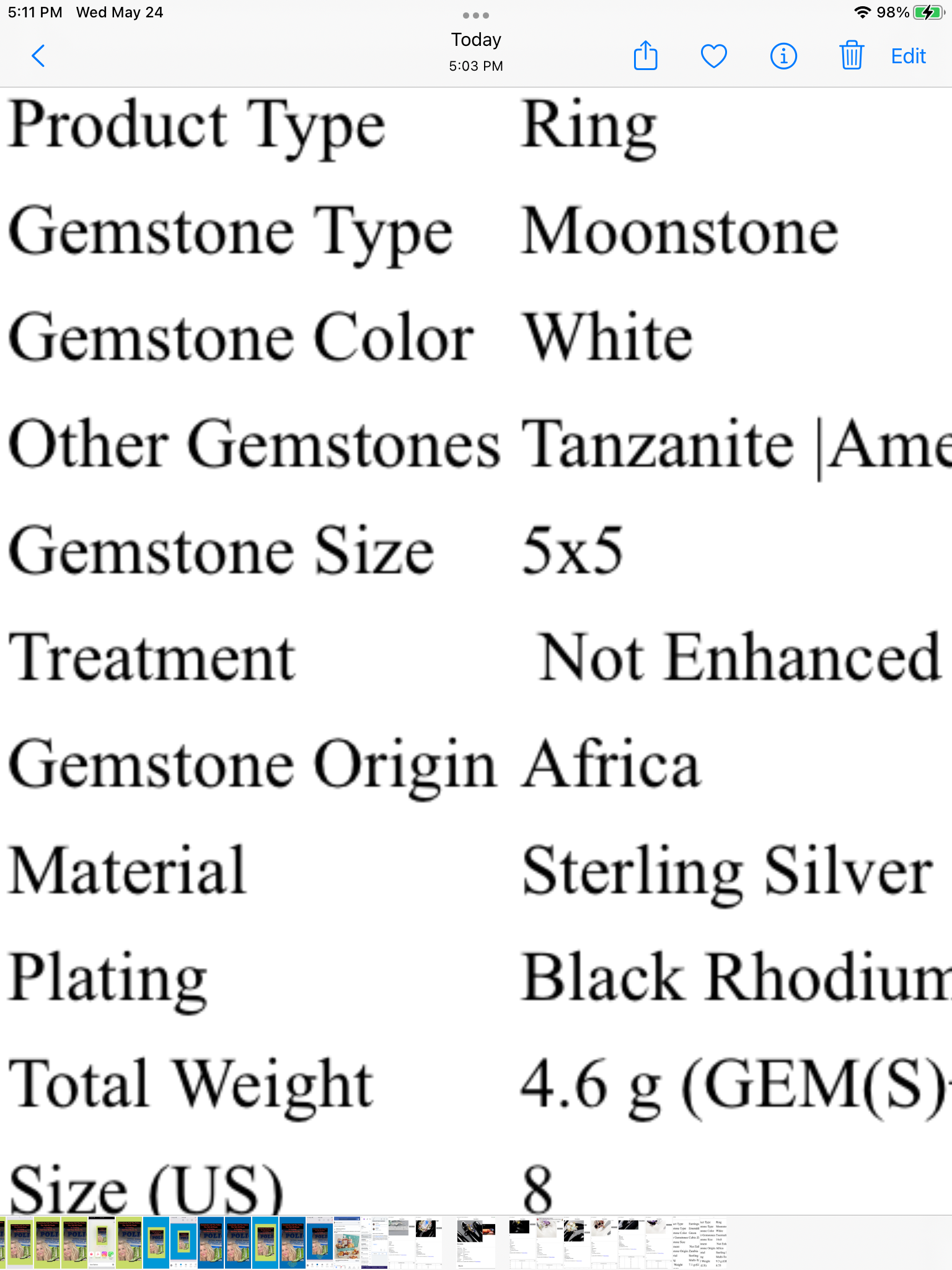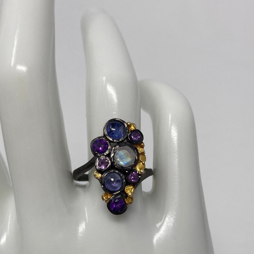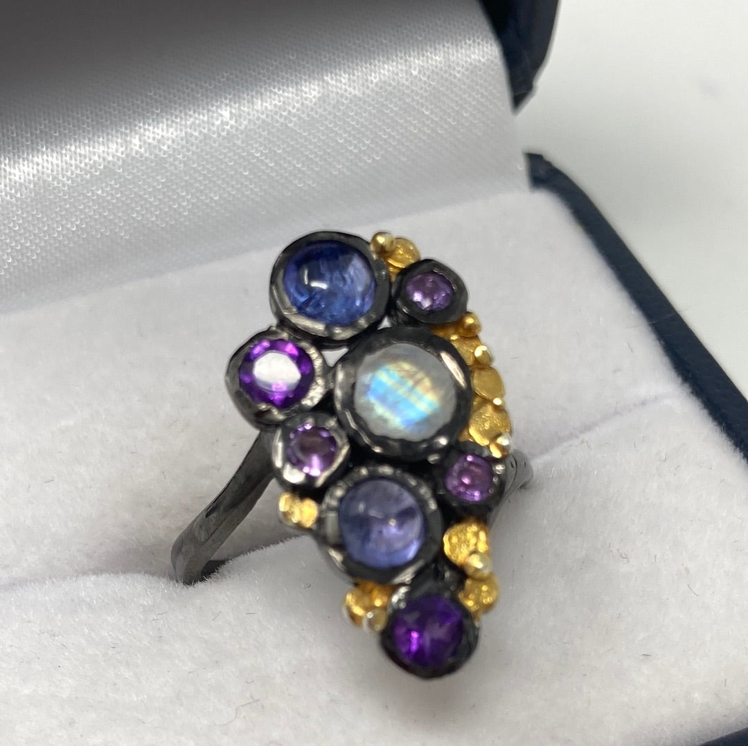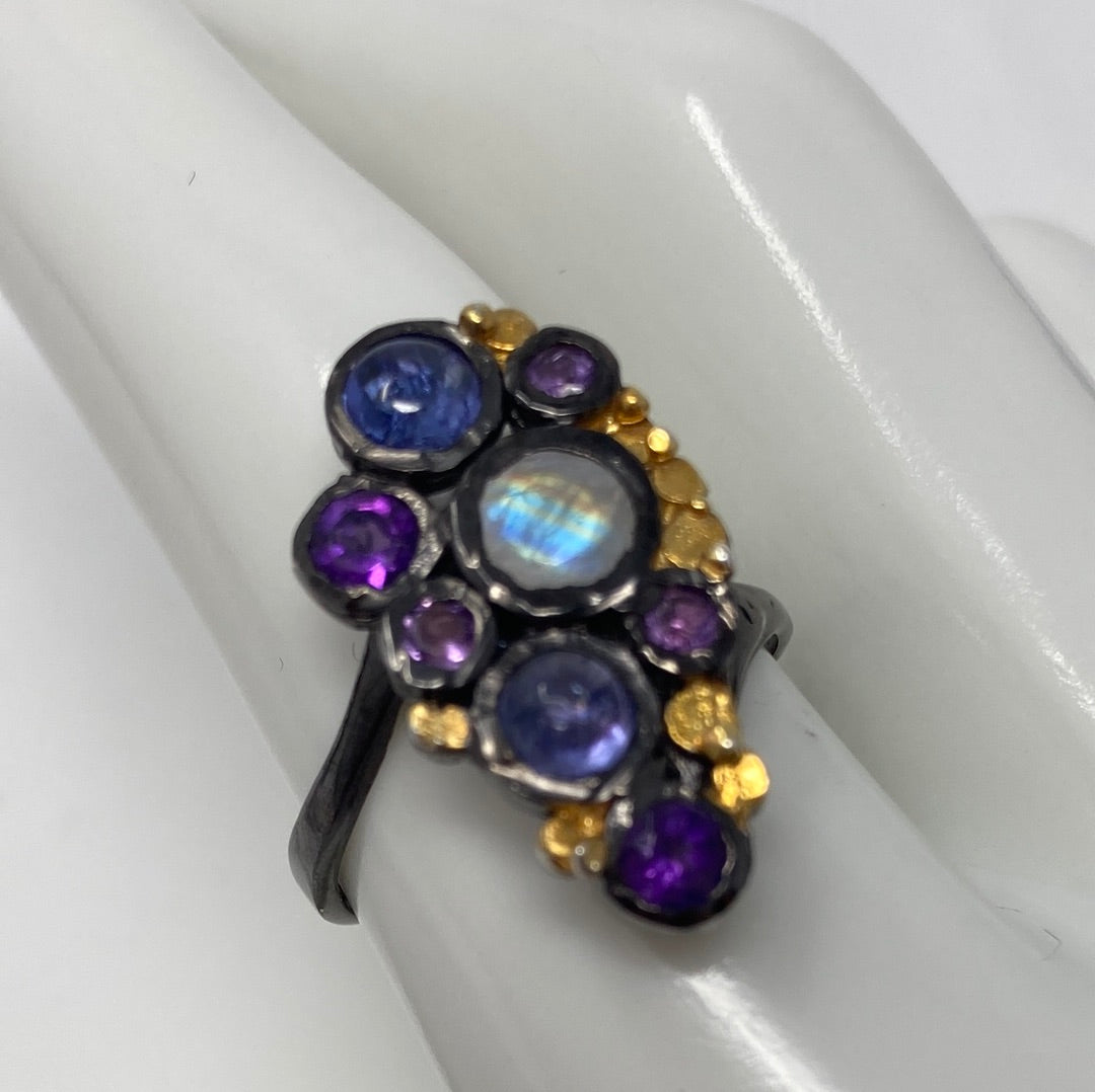 Genuine Moonstone with Tanzanite & Topaz Ring