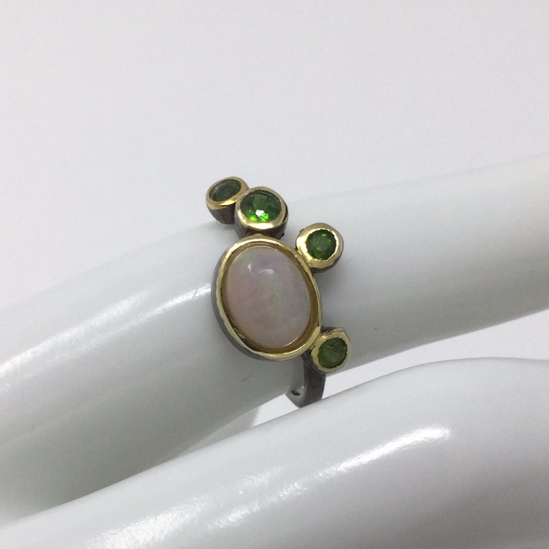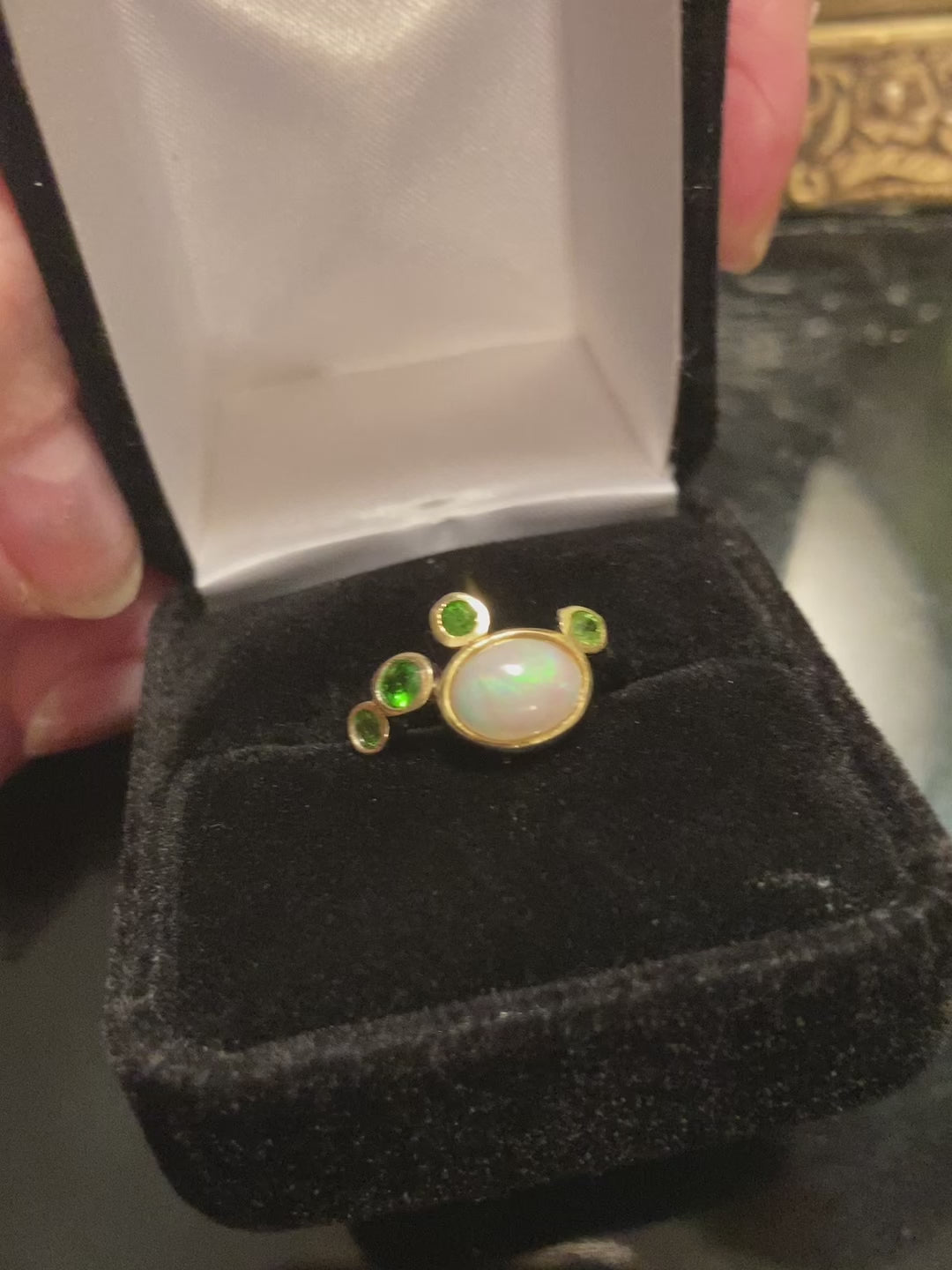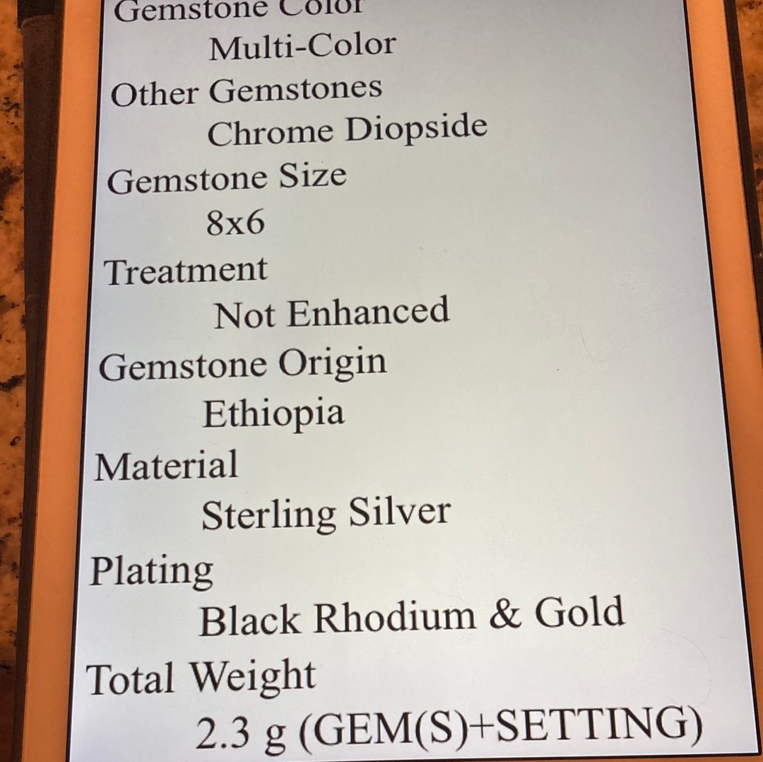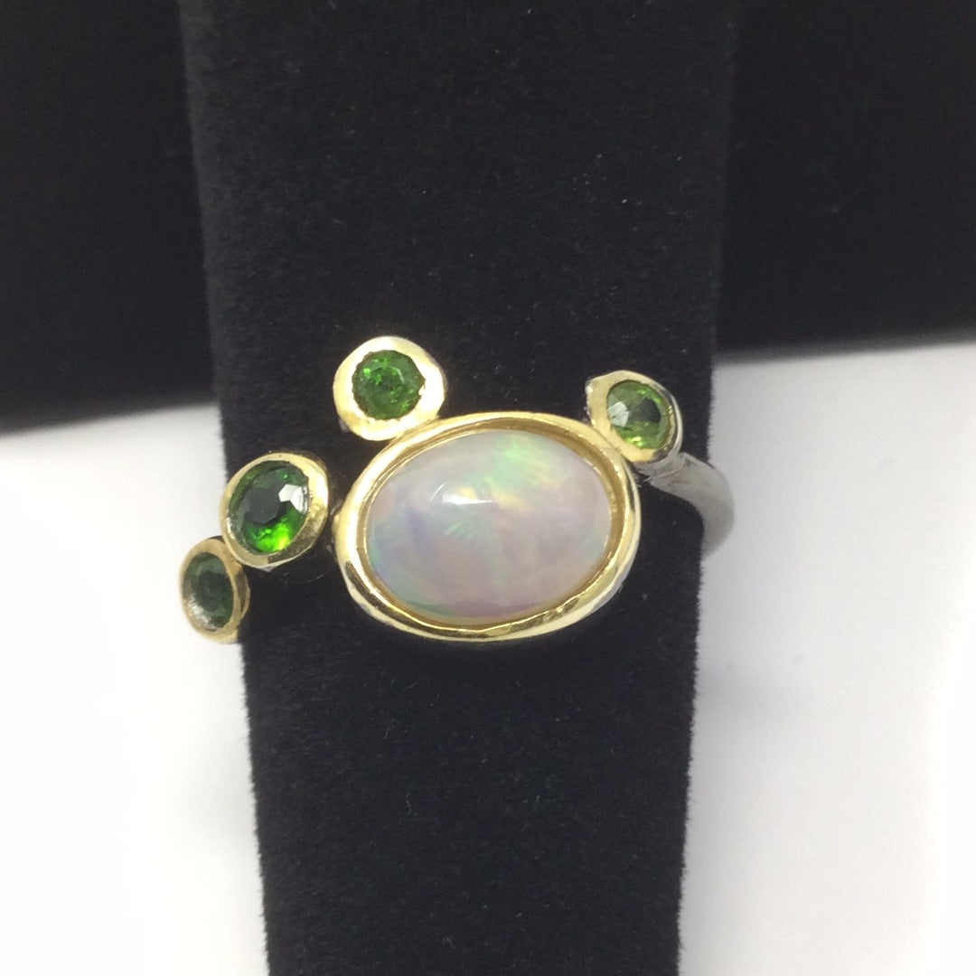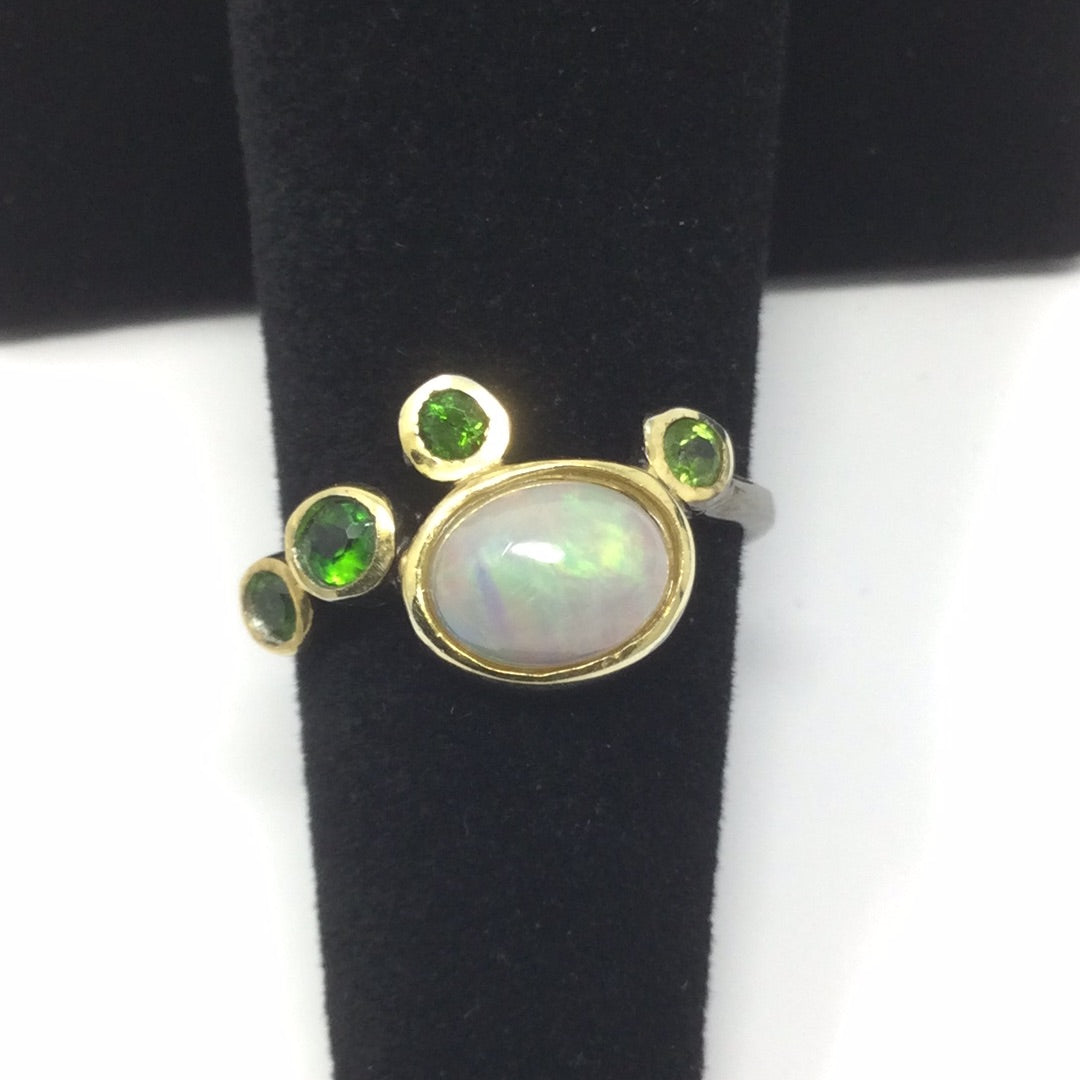 Genuine Fiery Opal & Russian Chrome Diopside Ring