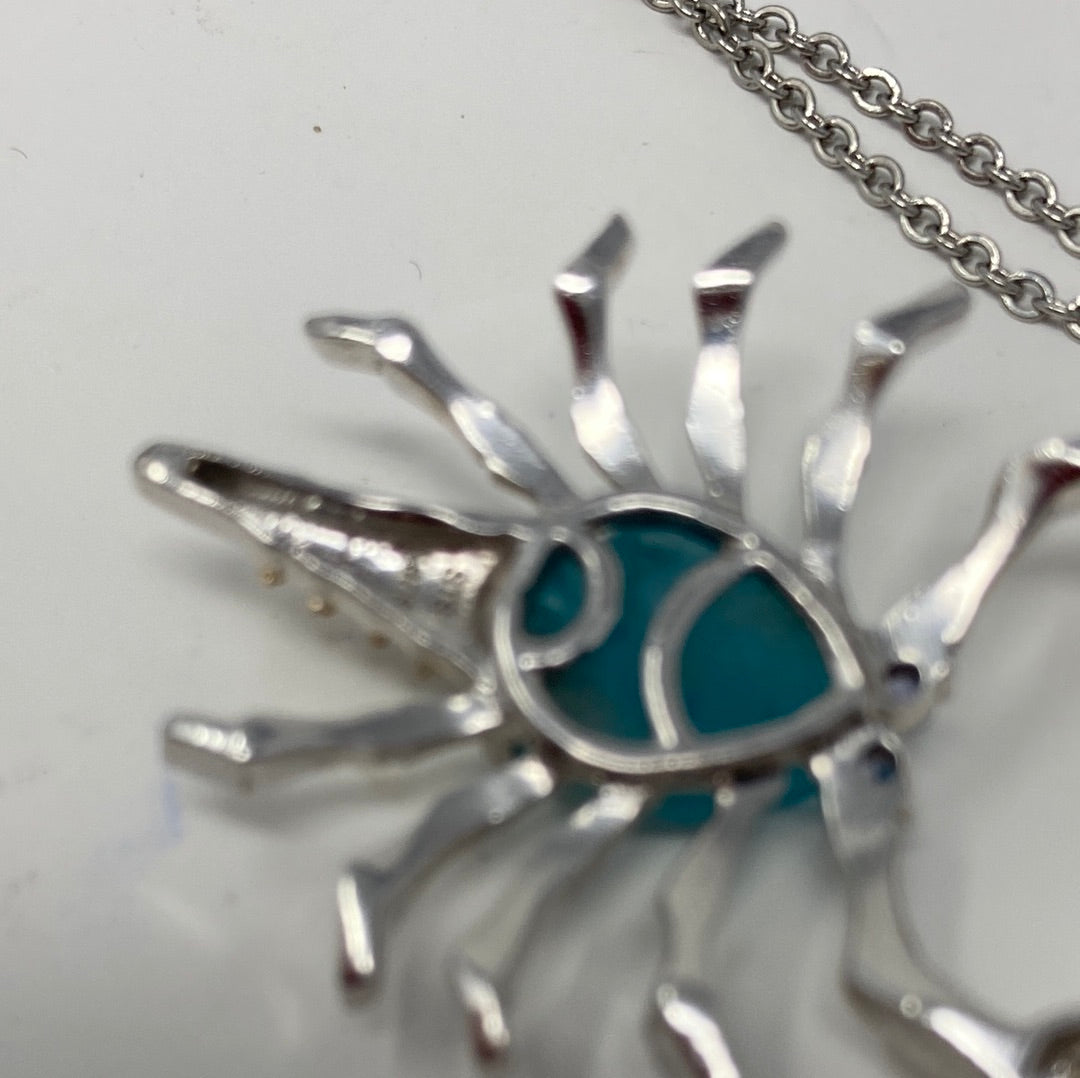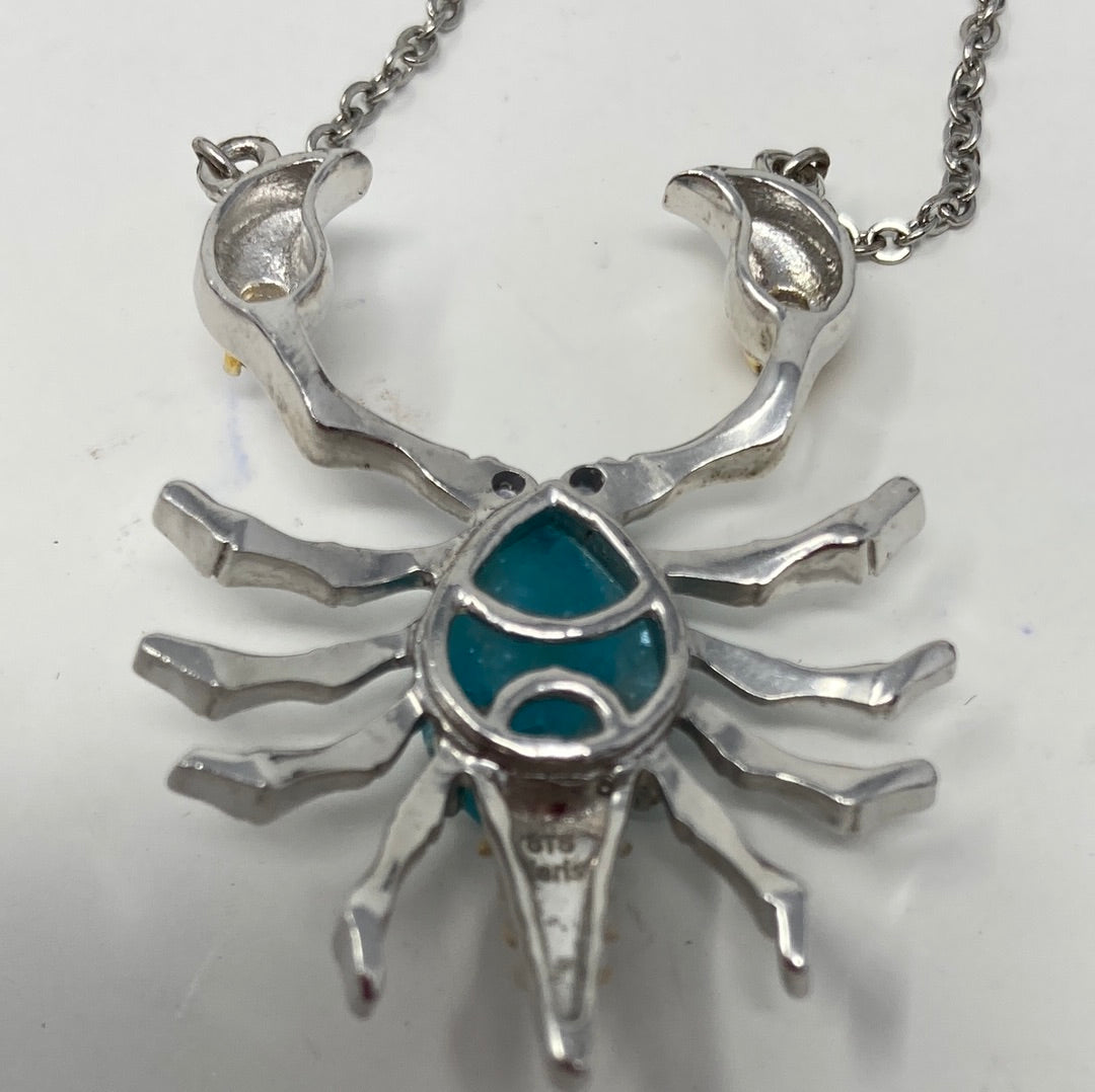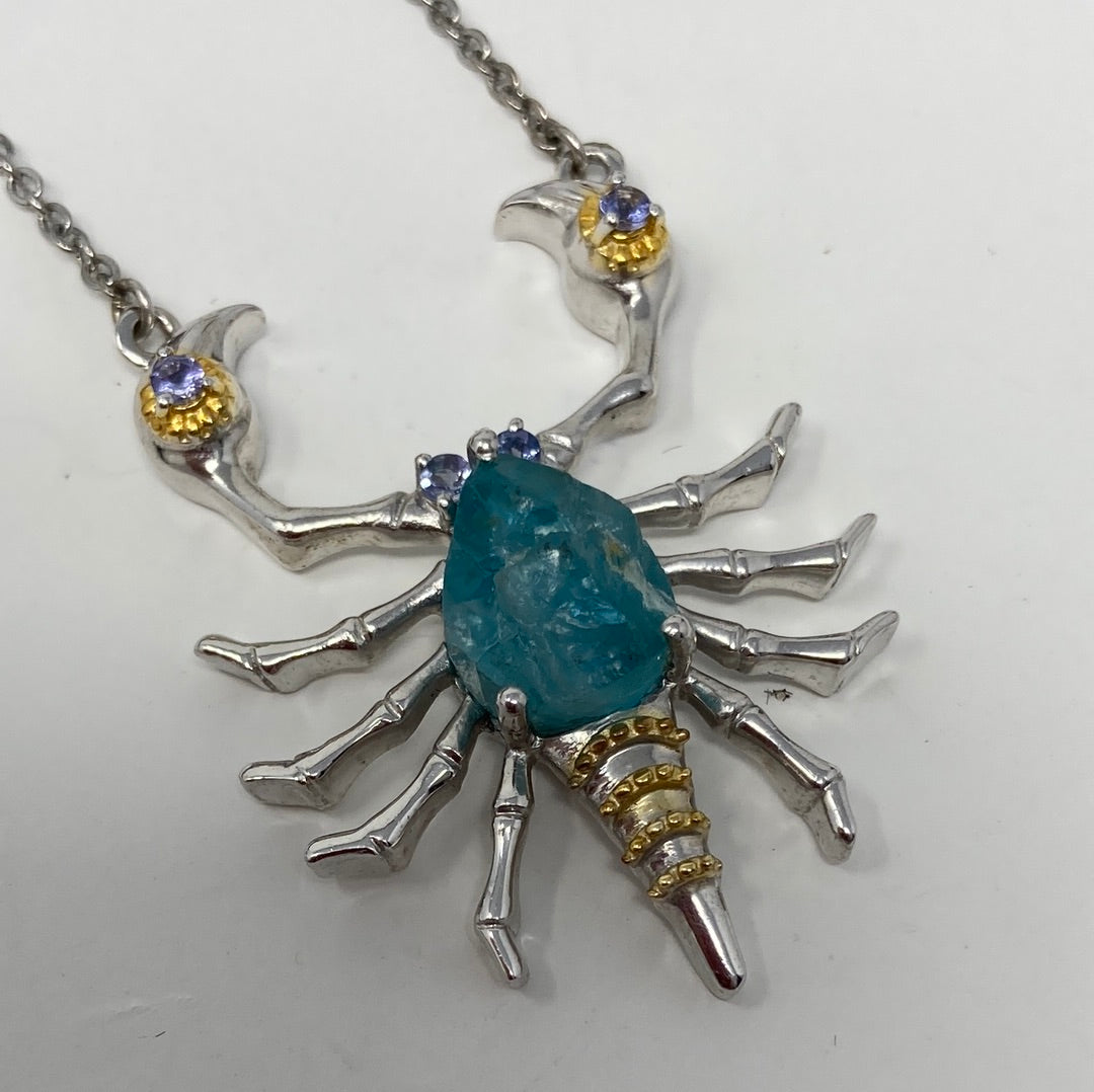 Exquisitely detailed special Scorpion pendant accented with tiny Tanzanite. This is intricately crafted in .925 sterling silver accented with yellow gold. This is a nice specimen of natural fluorite in its raw, uncut, unpolished state. A work of art to wear. Approximately 1 1/2” long pendant on 18” chain