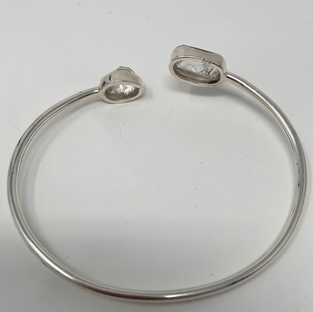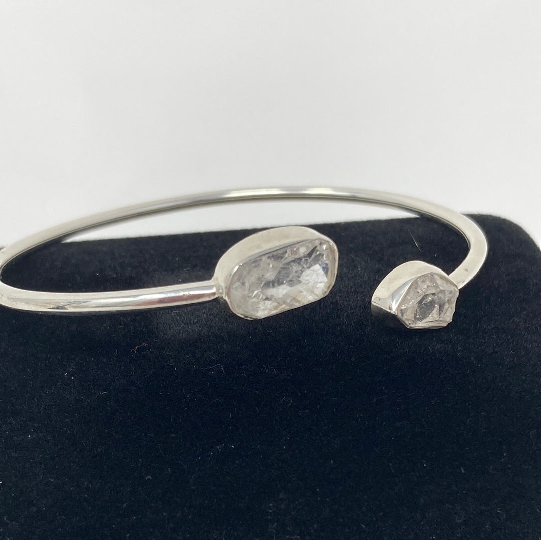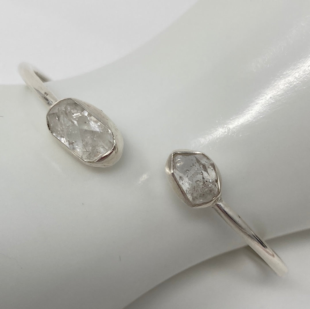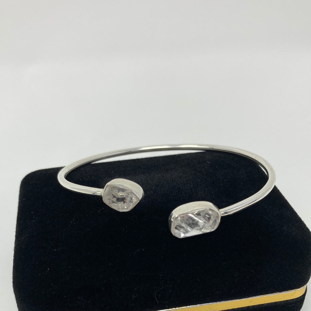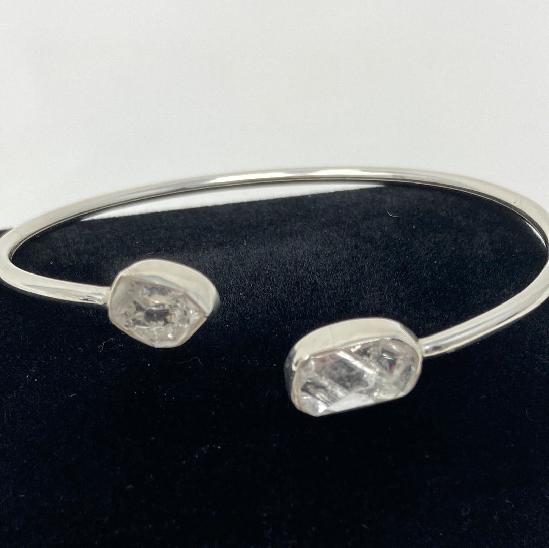 I absolutely love Herkimer Diamonds, so unusual and found in only one place in the world, Herkimer New York. I seldom see them at the Gem Shows and when I do I buy what they have. I wore a huge Herkimer Diamond necklace with Baroque Pearls that I made on The Tell All. This sweet dainty bracelet is crafted in .925 silver featuring 2 Herkimer Diamonds. Wear something very unique Fits small through medium wrists.