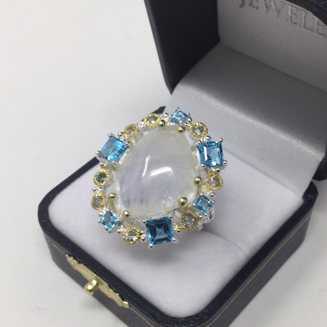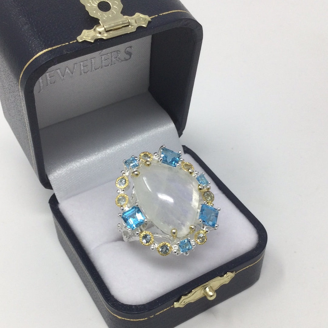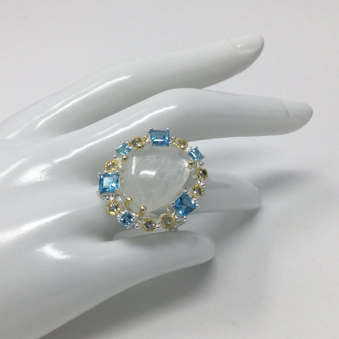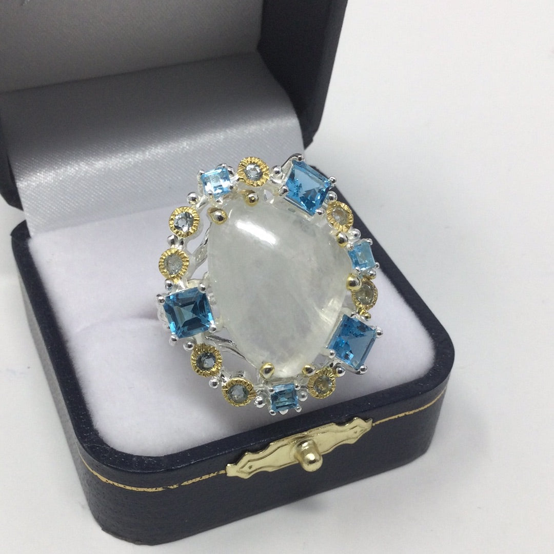 Genuine Moonstone & Topaz Ring