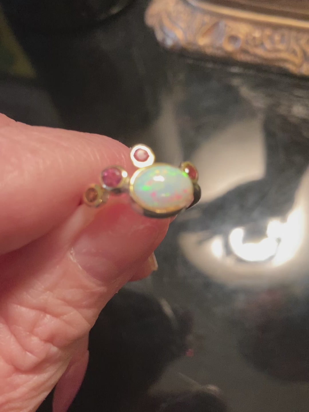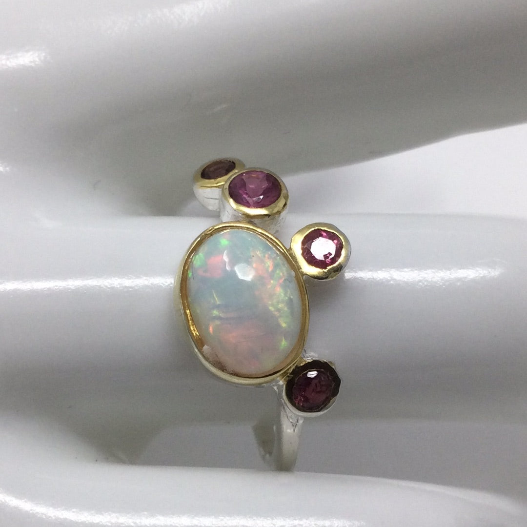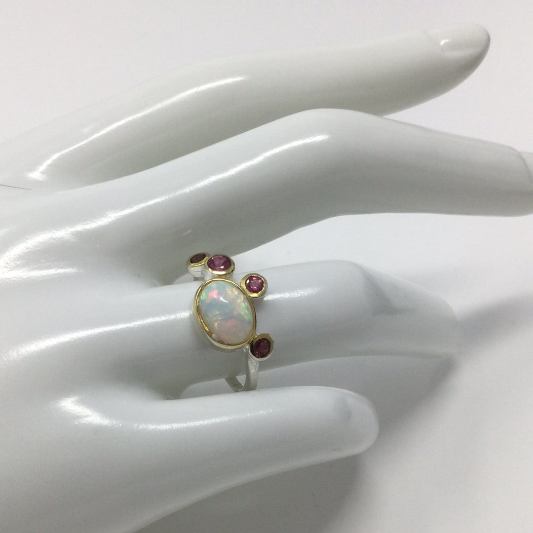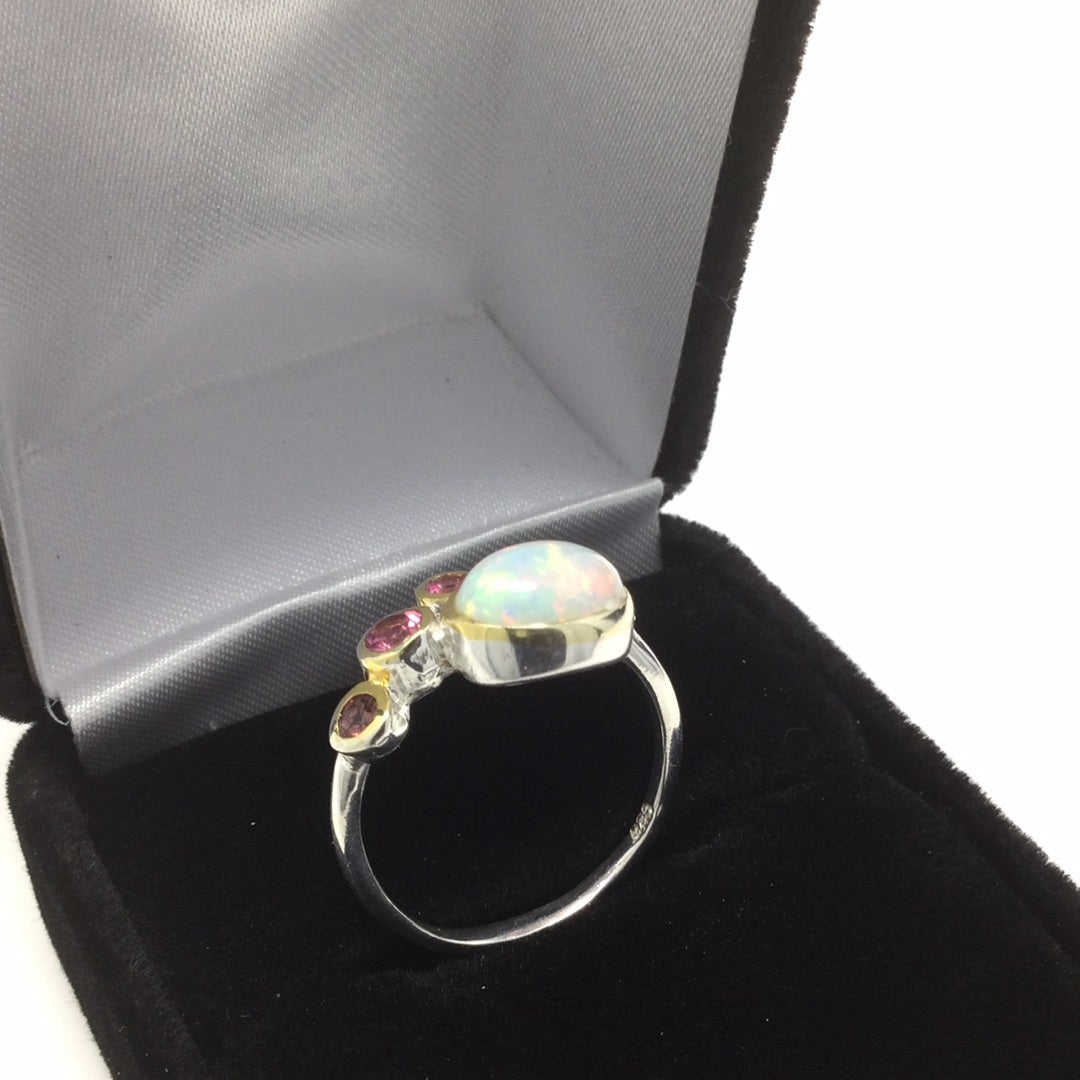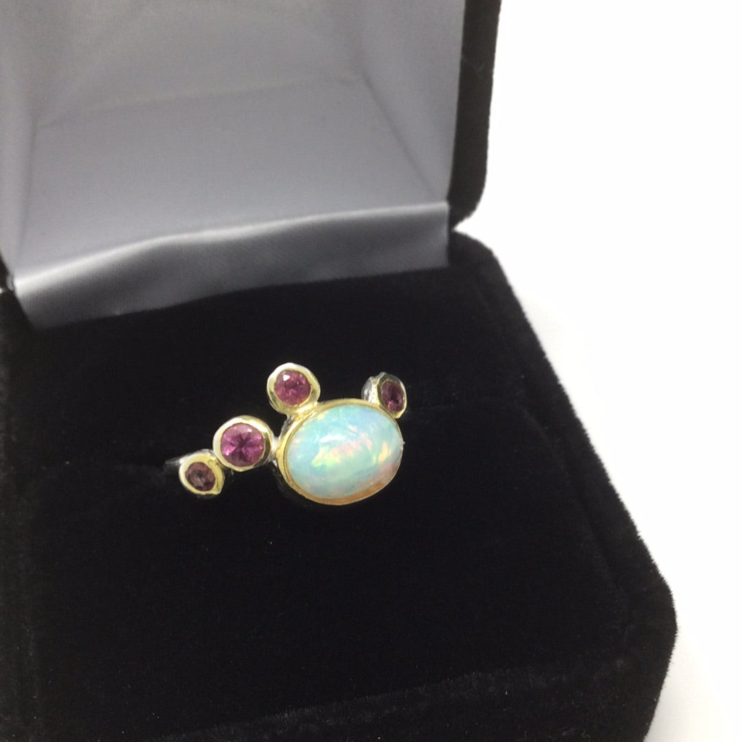 Genuine Opal & Pink Tourmalines Ring