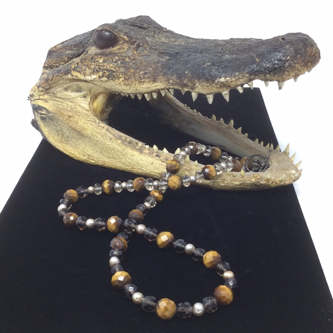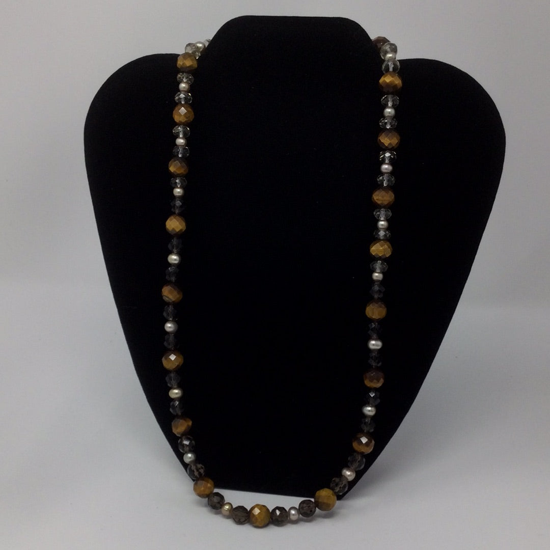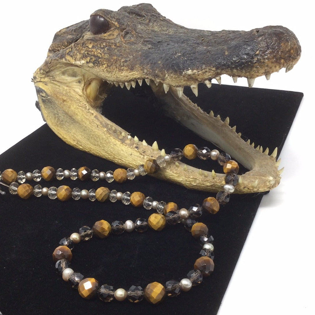 Genuine Tigers Eyes, Pearls & Crystal Necklace Artist Original