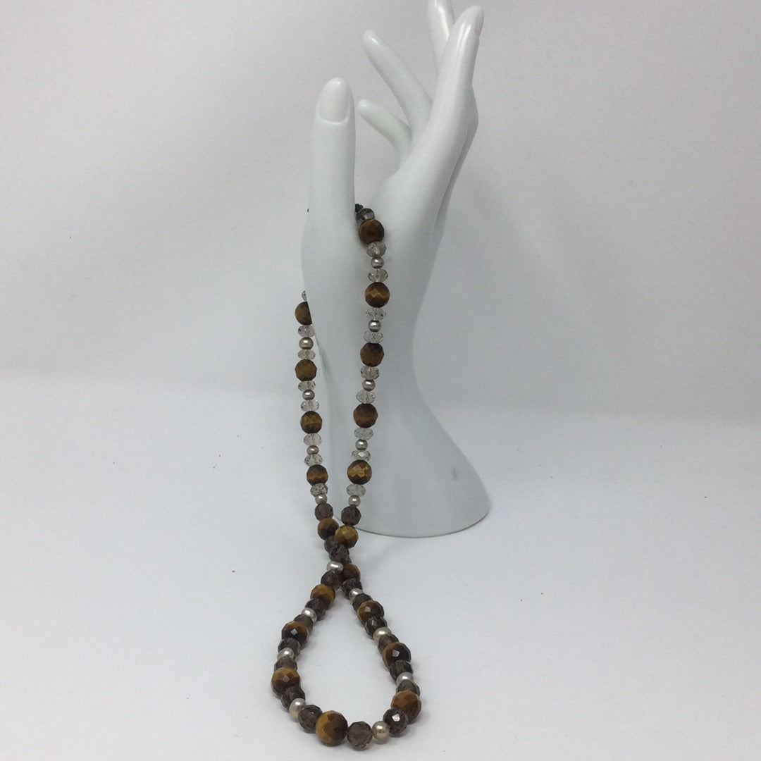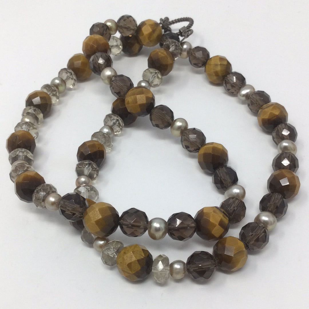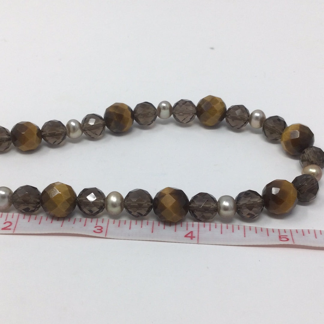 Genuine Tigers Eyes, Pearls & Crystal Necklace Artist Original