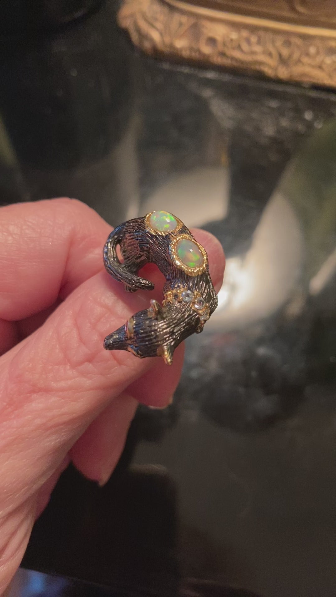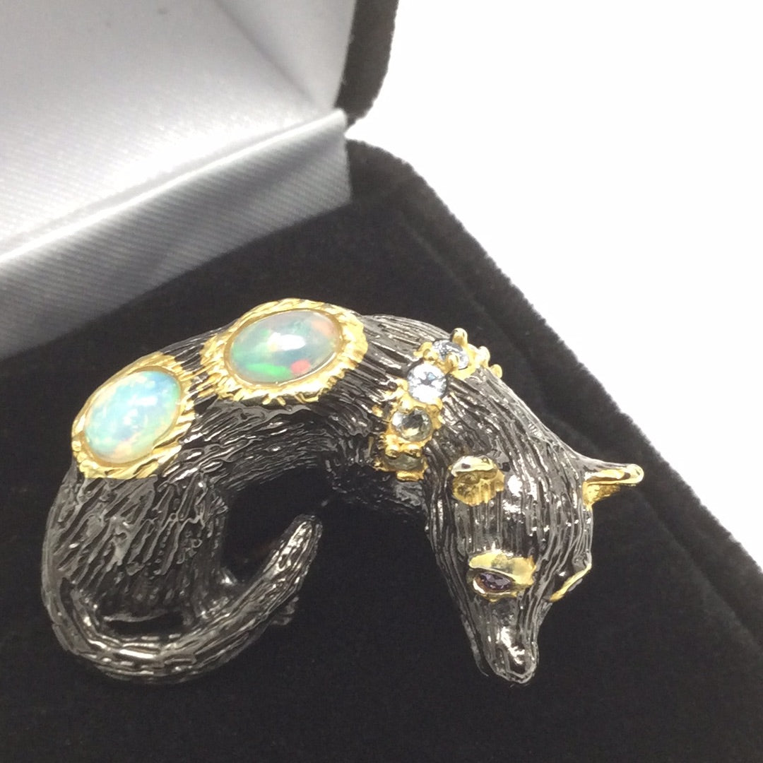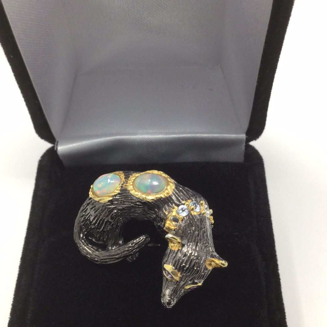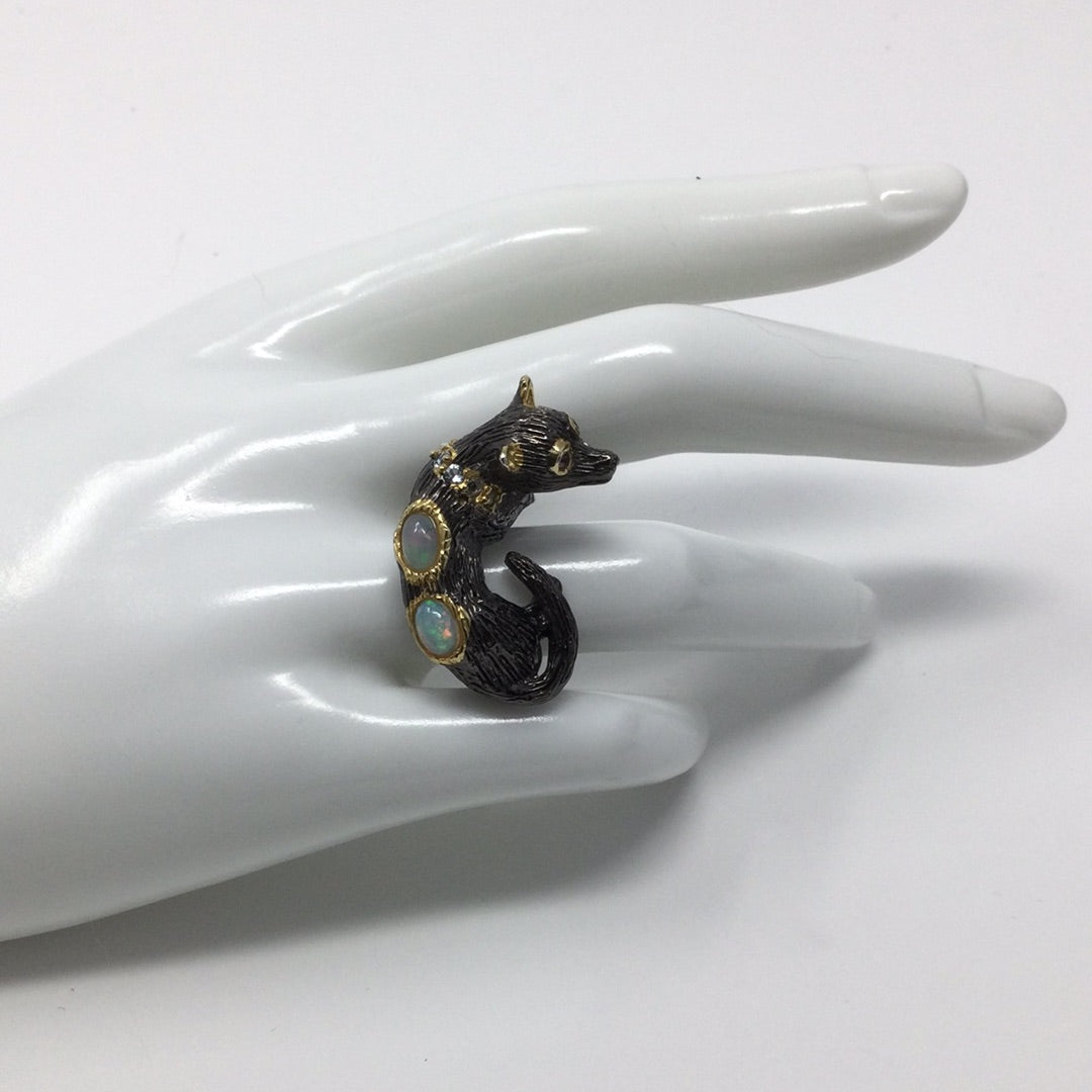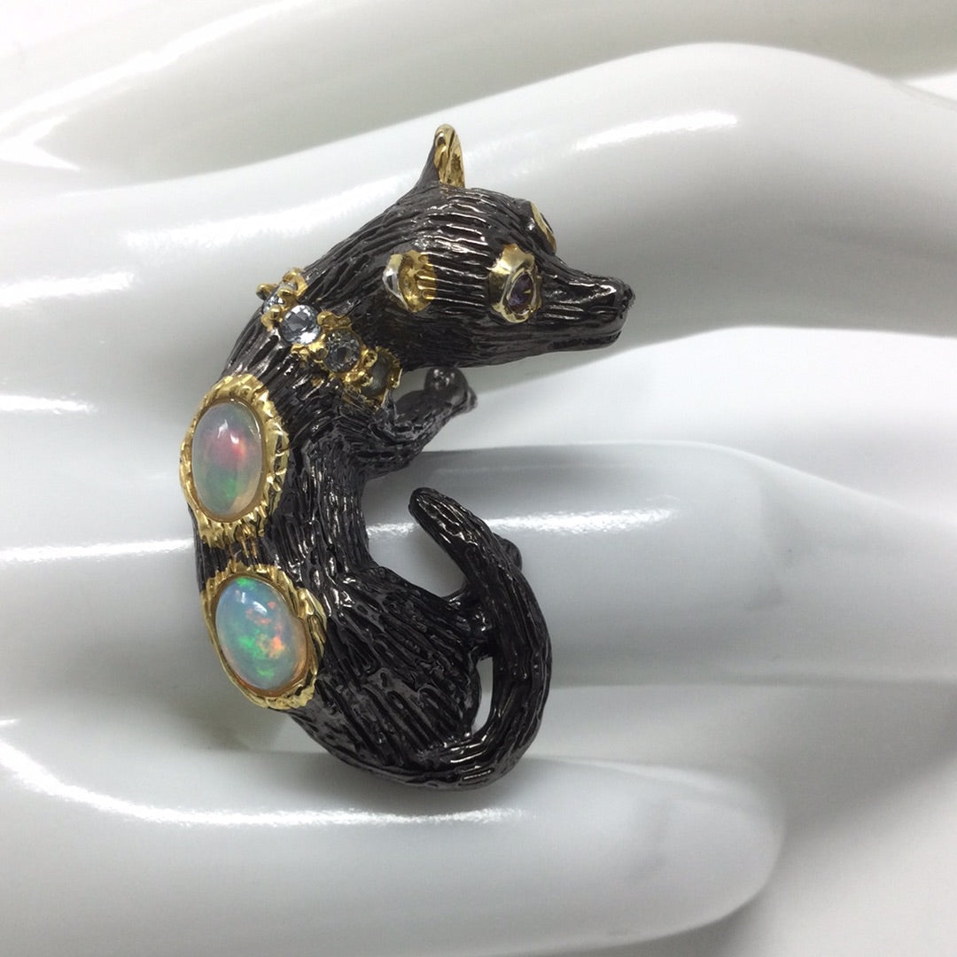 Handcrafted Genuine Opal Dog Ring