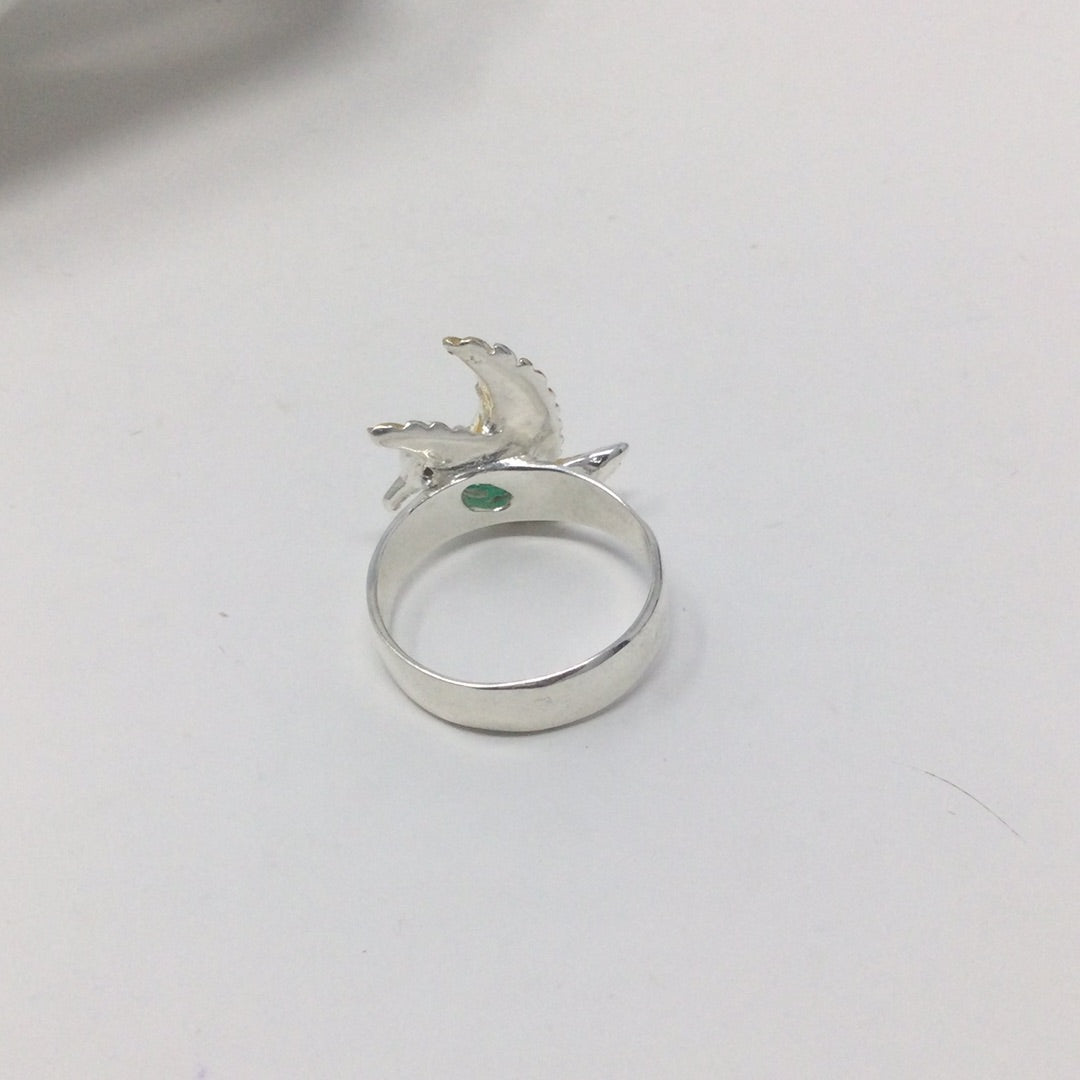 High Flying Genuine Faceted Green Onyx Bird Ring