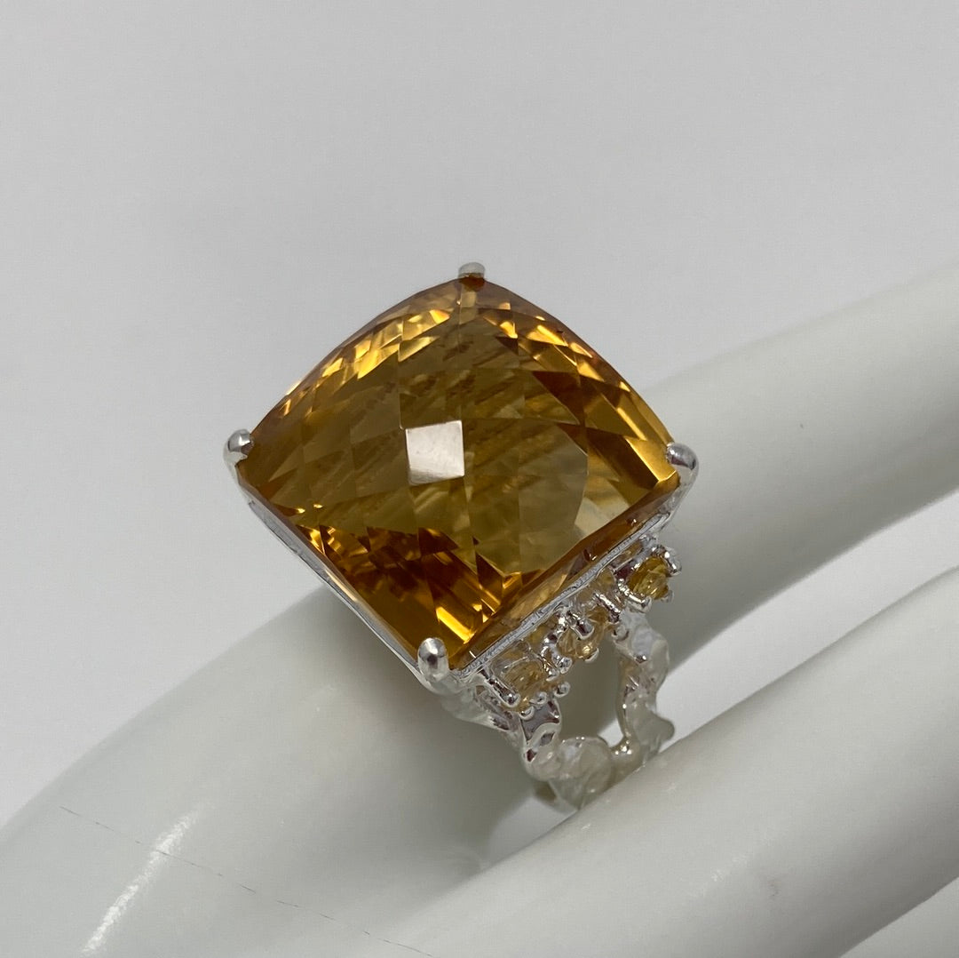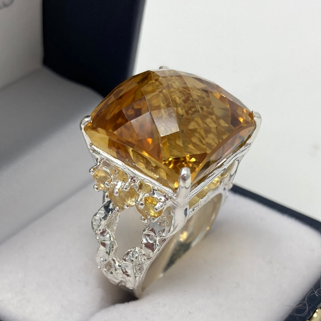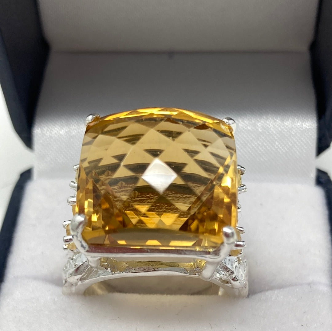 Huge Genuine Citrine Checkerboard Faceted Ring