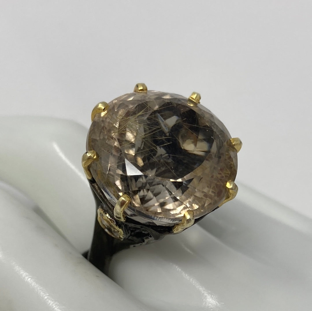 HUGE GENUINE Golden Rutilated Quartz Ring