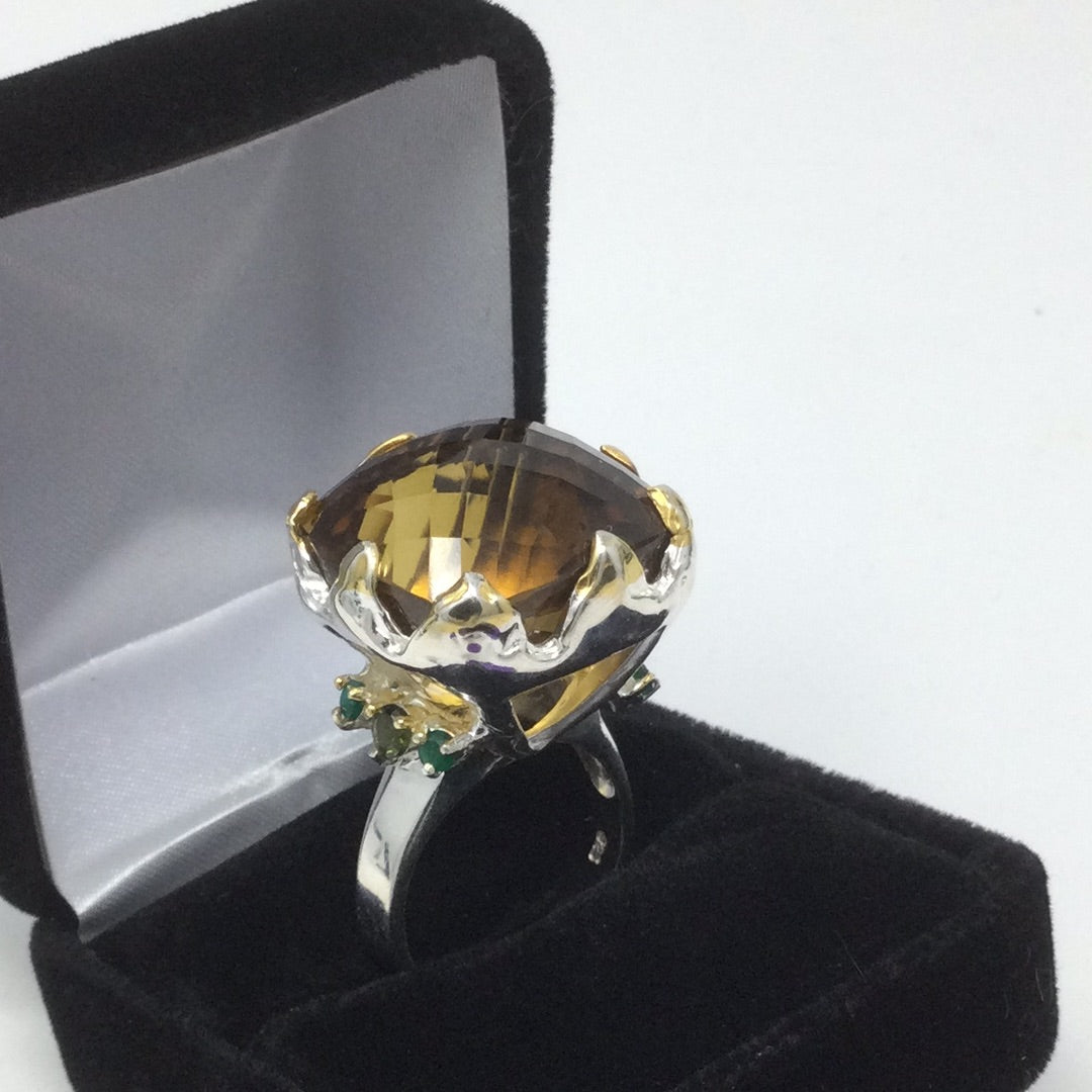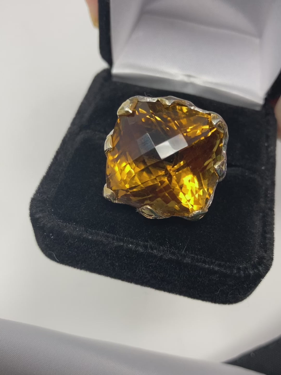 Incredible Genuine 34CTW Cognac Quartz Ring