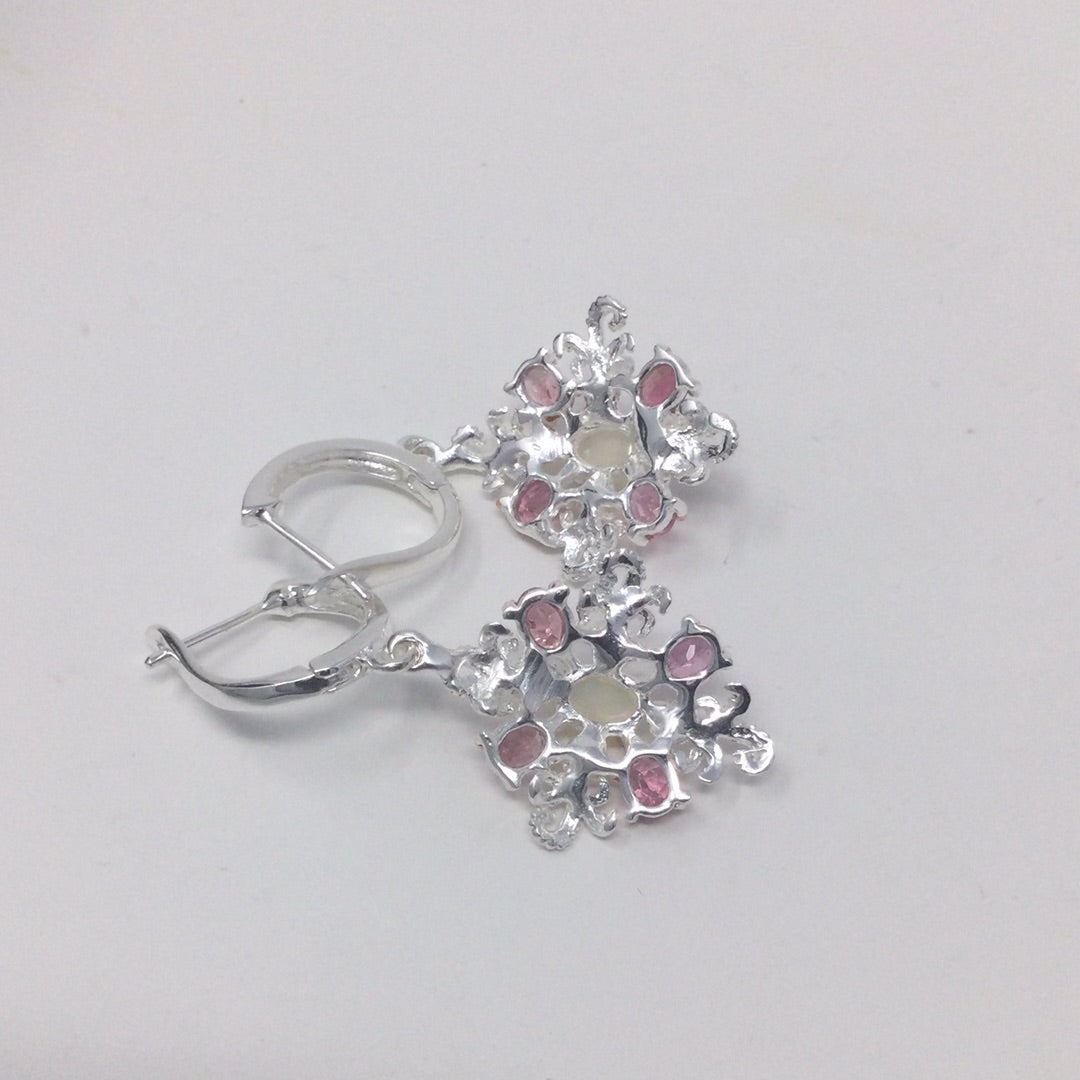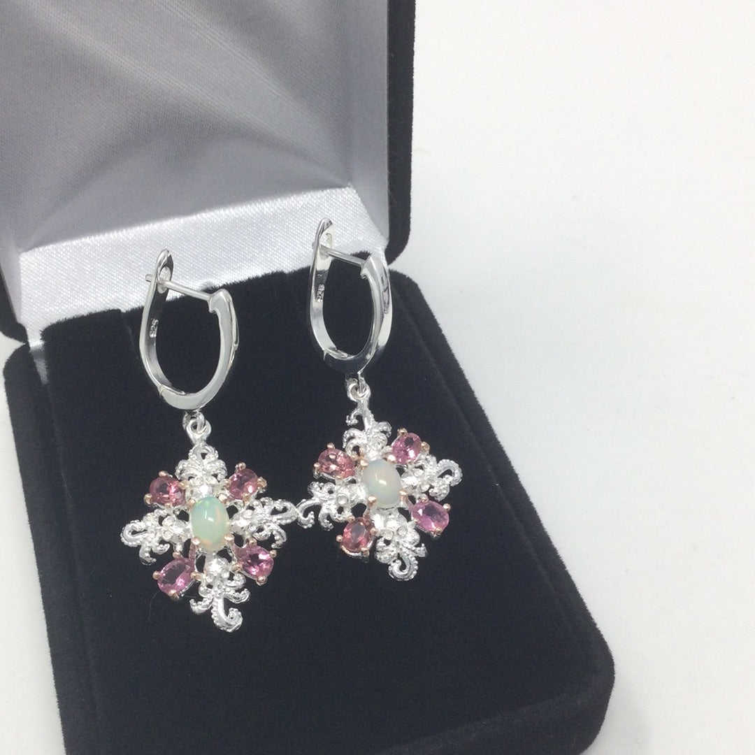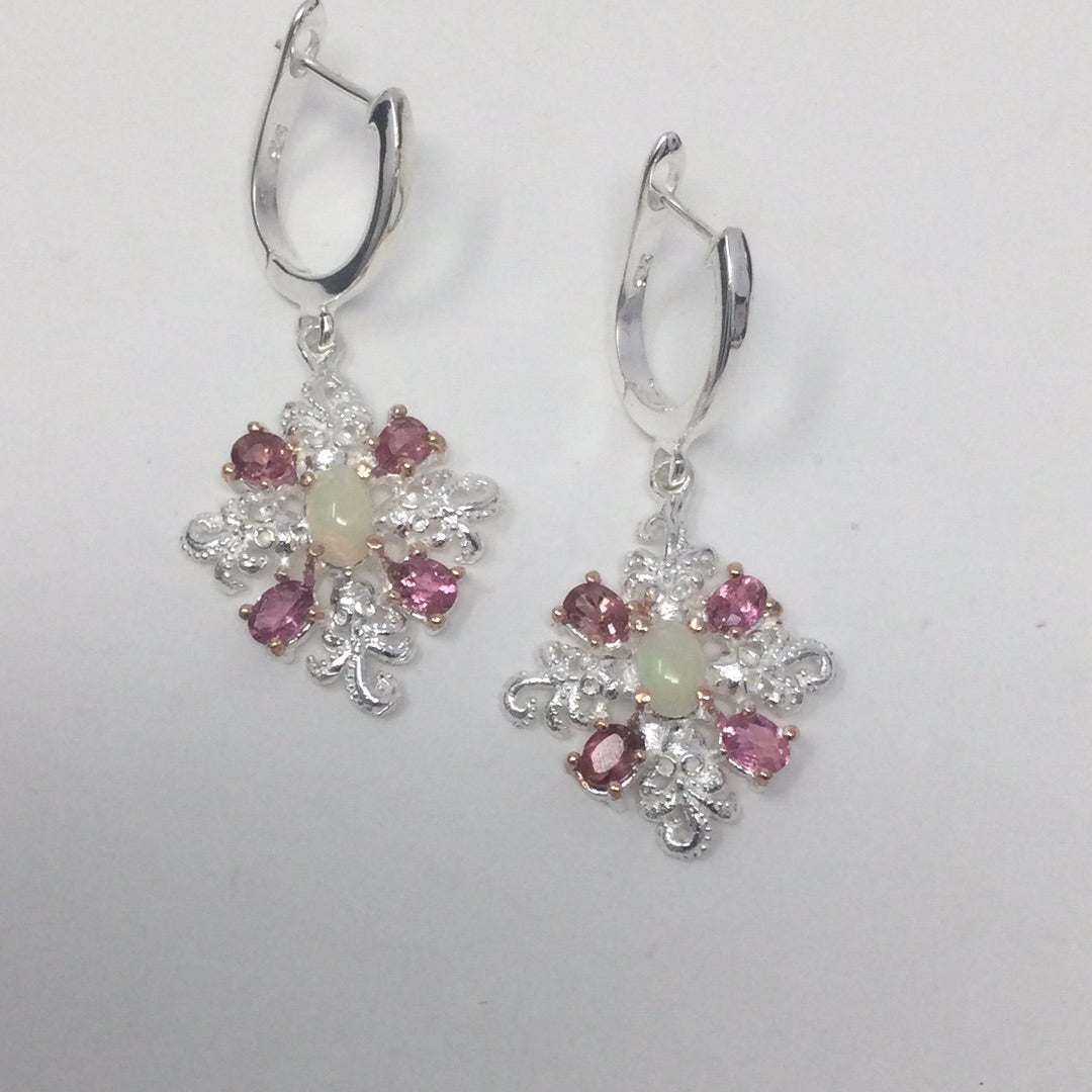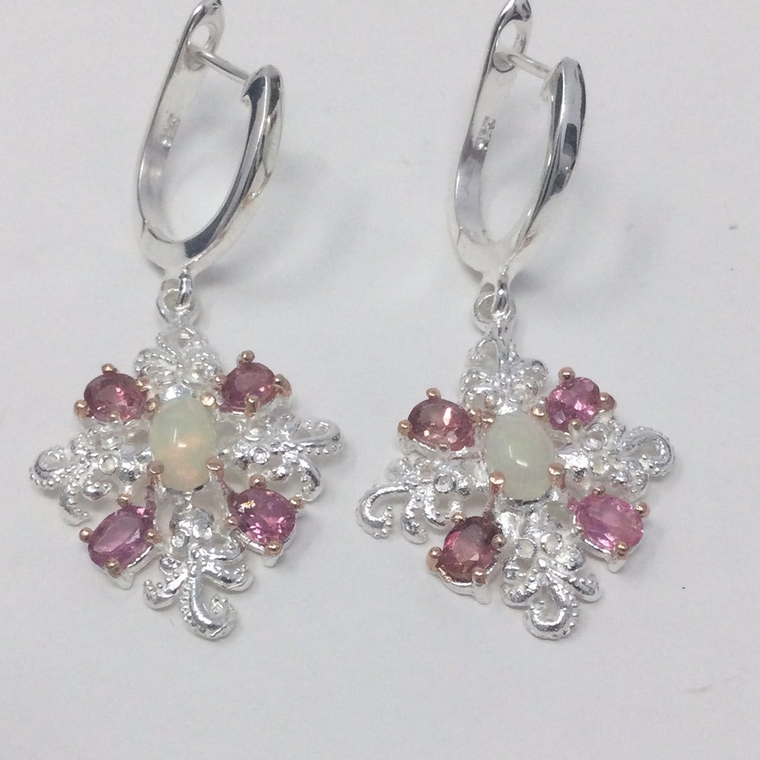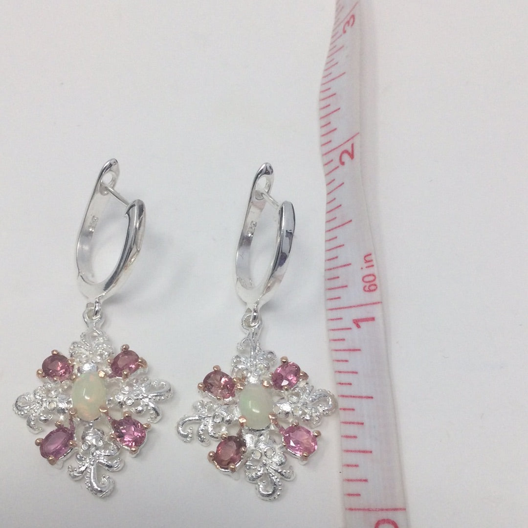 Passionate Pink Genuine Tourmaline & Opal Earrings
