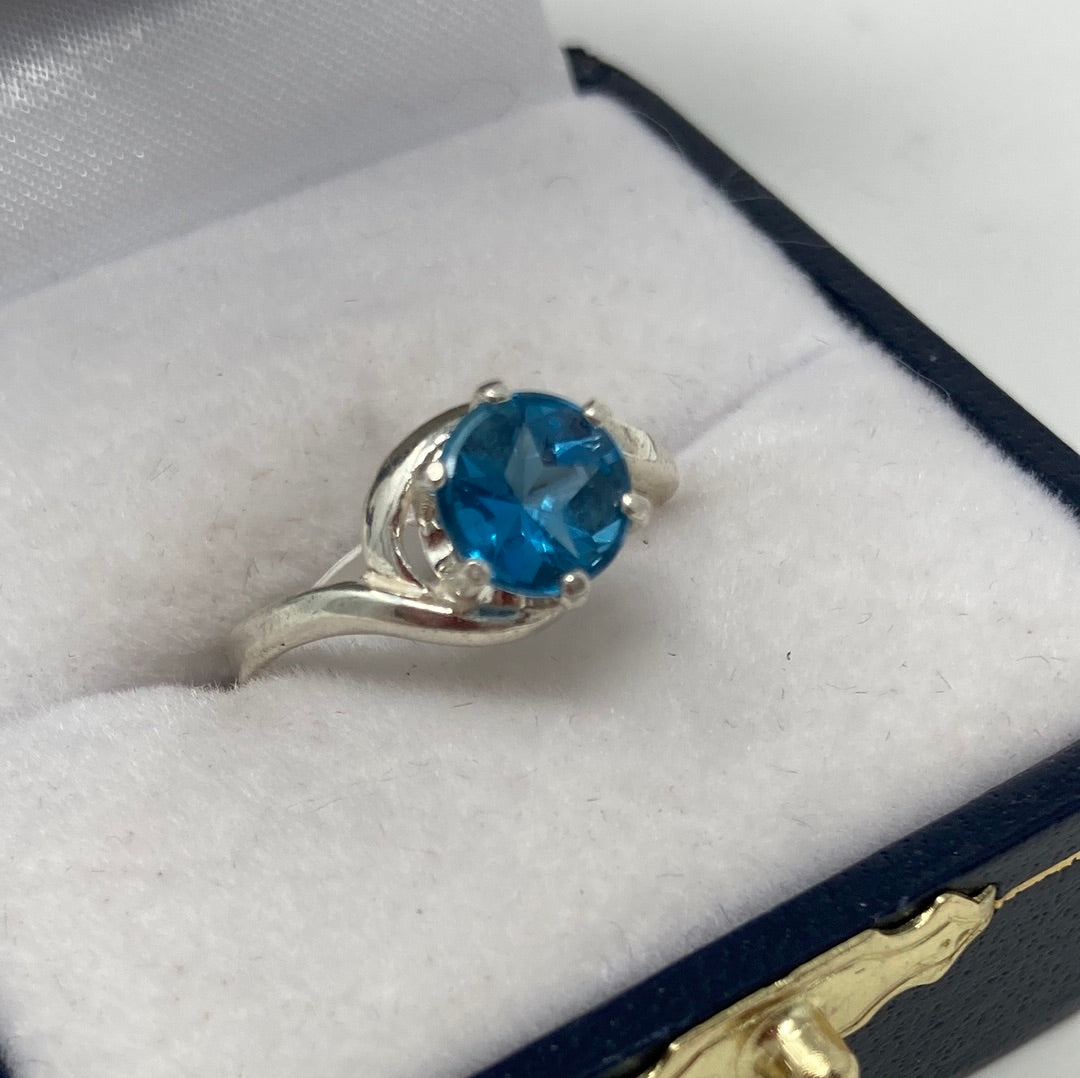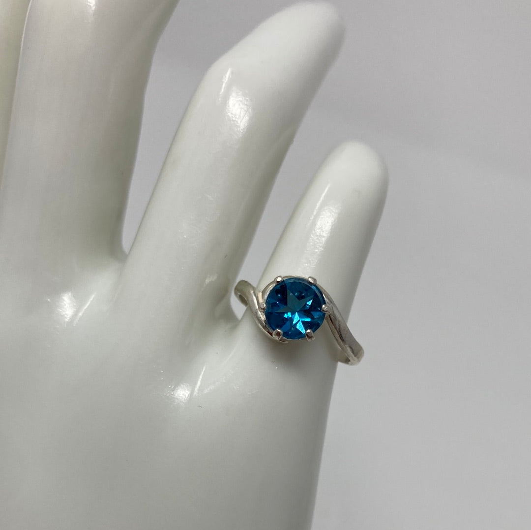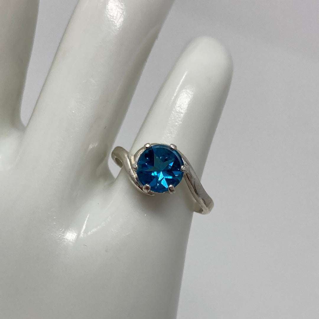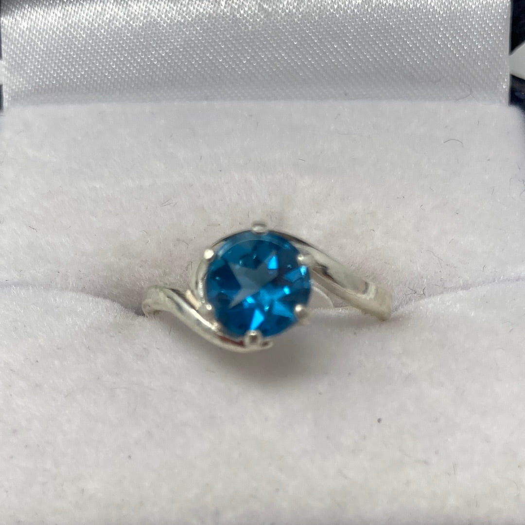 Here’s an incredible find, a genuine faceted Blue Topaz with a Star of David etched into the faceting. It’s petite and a lovely, unusual work of art to wear. Set in .925 Sterling Silver Size 5