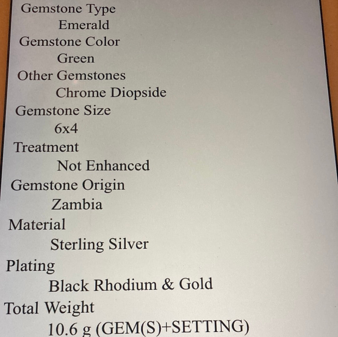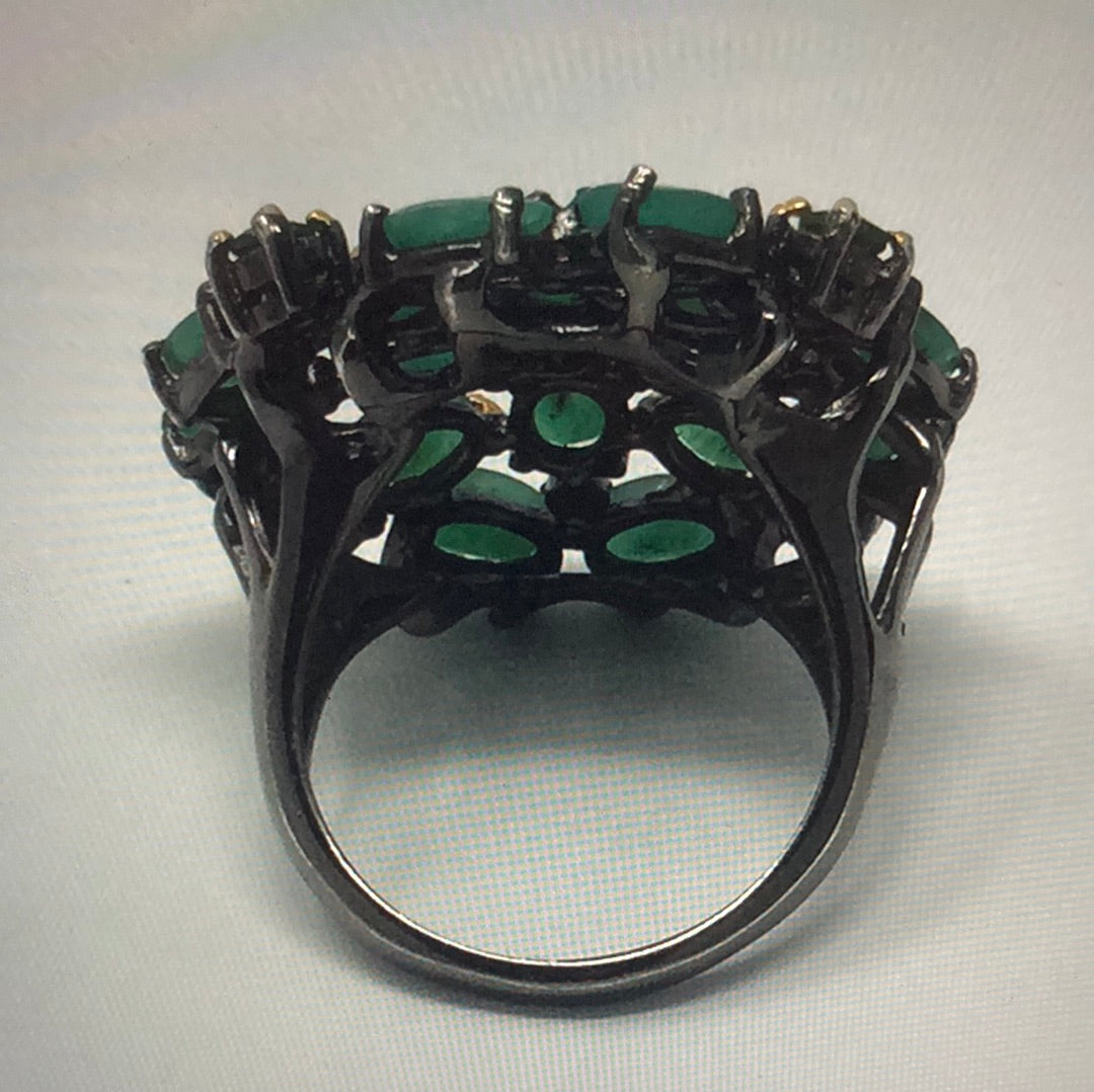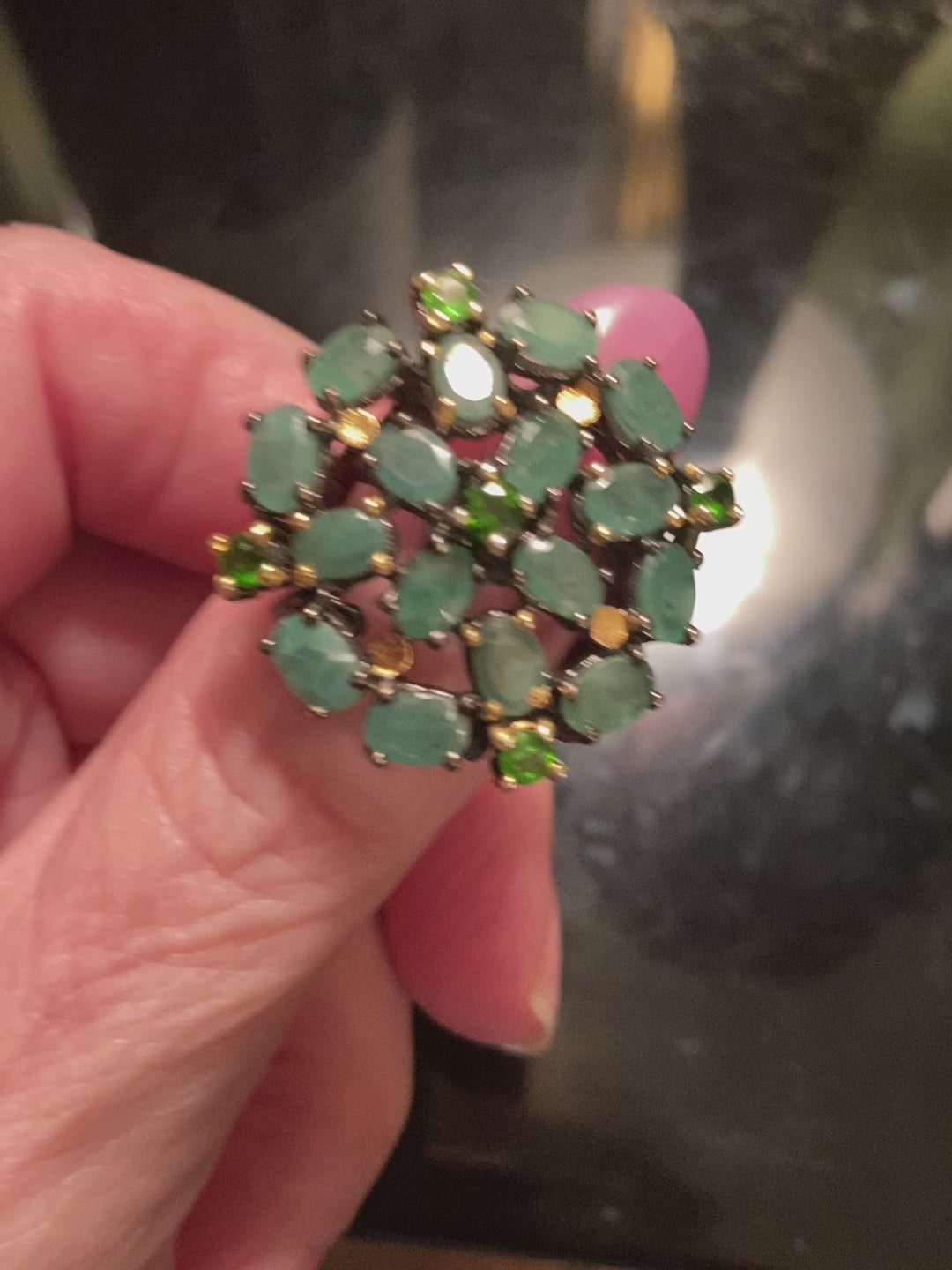 This magnificent genuine Emerald ring is breathtaking, a one of a kind masterpiece from the artisans at The Atlanta Gem & Mineral Show. Interspersed with genuine Russian Chrome Diopside, set in .925 sterling silver with a Rhodium finish for durability and beauty, Wn this future heirloom, invest n genuine gemstones. Size 7, Resize at your jeweler,