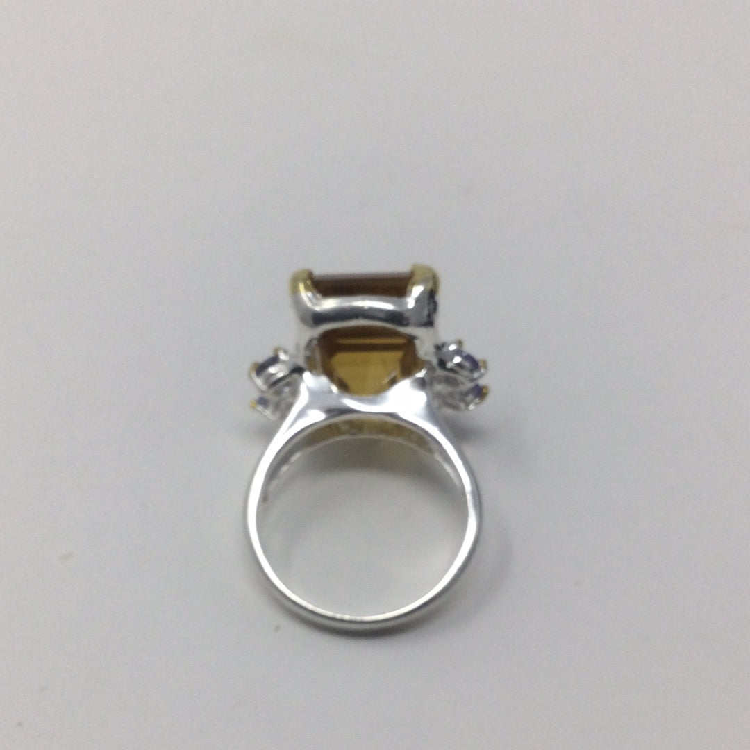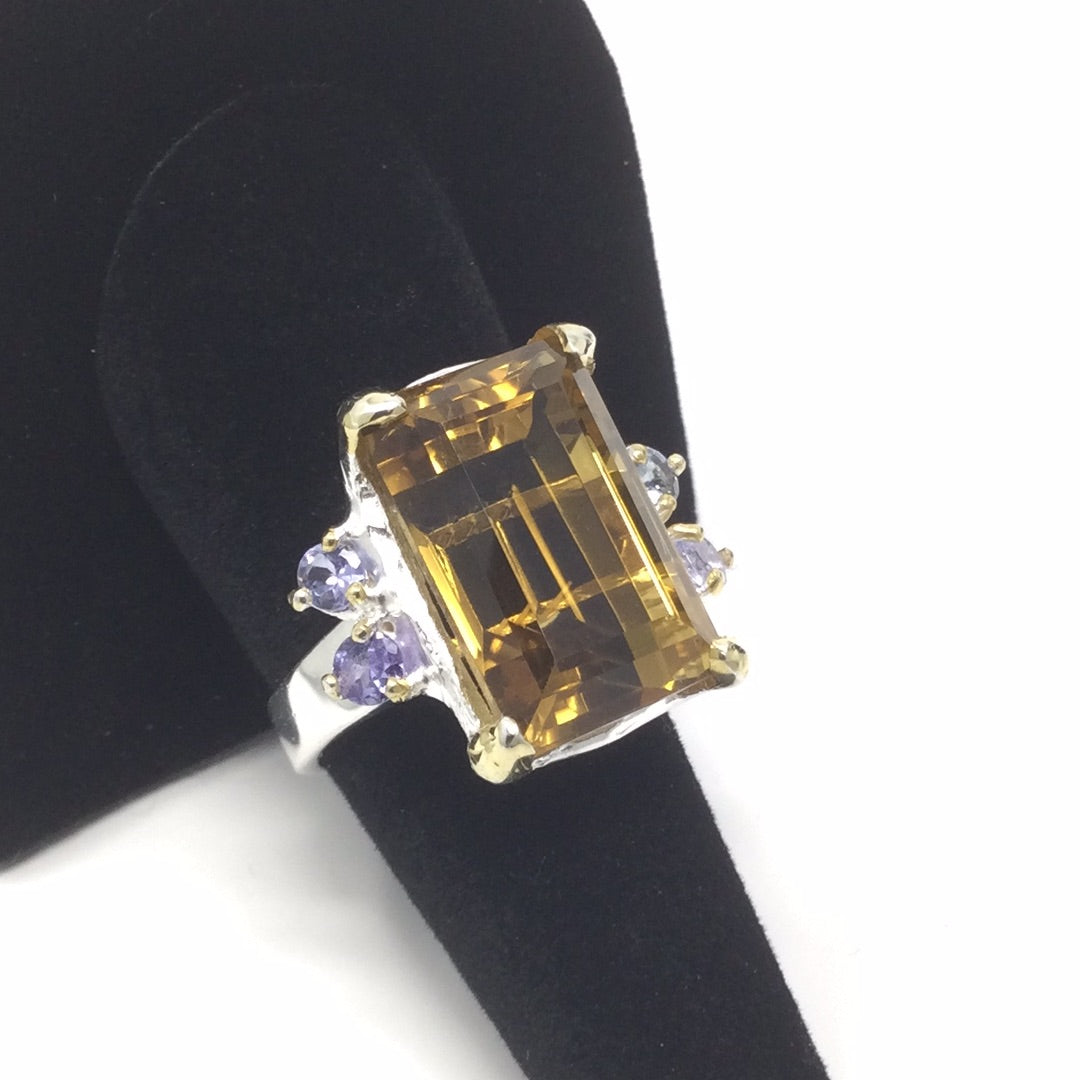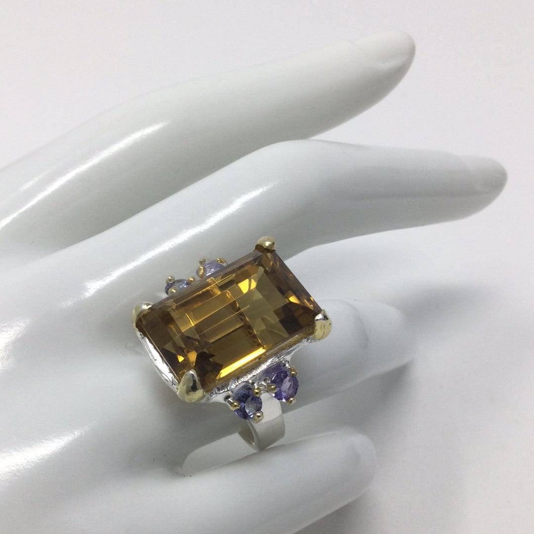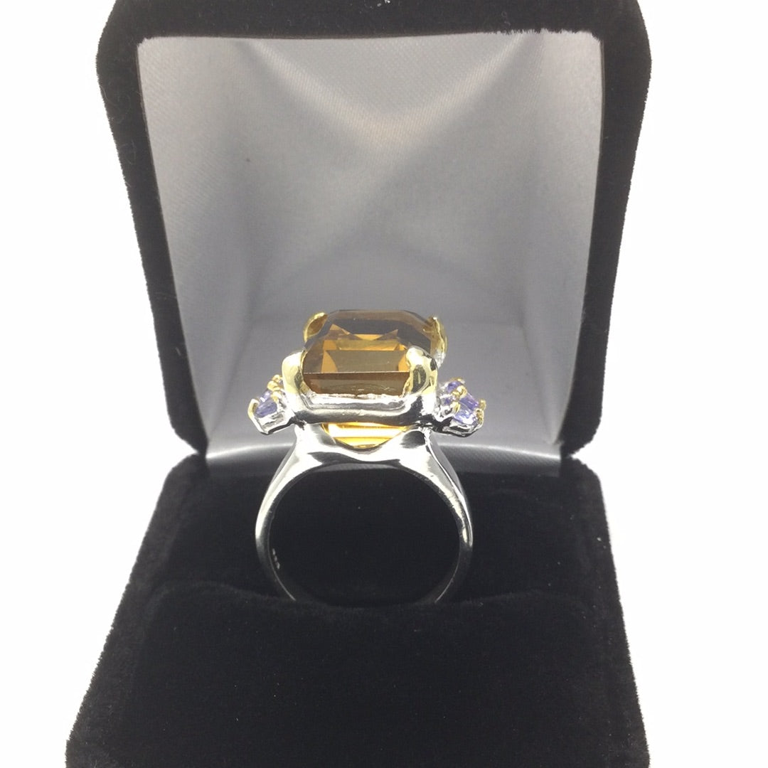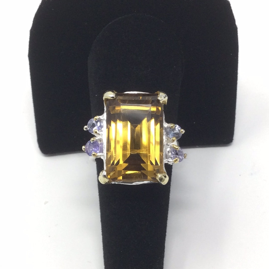 Titillating 30 CTW Genuine Citrine & Tanzanite Ring
