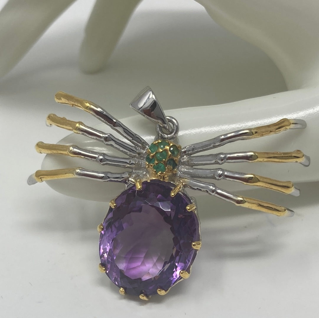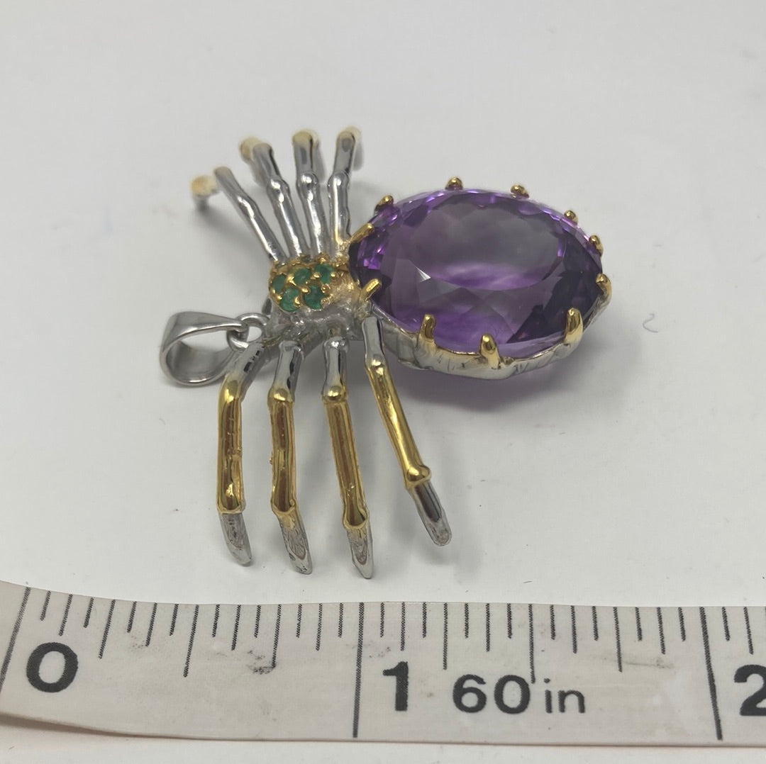 Unbelievable 28+ CTW Genuine Amethyst & Emerald Spider Pendant