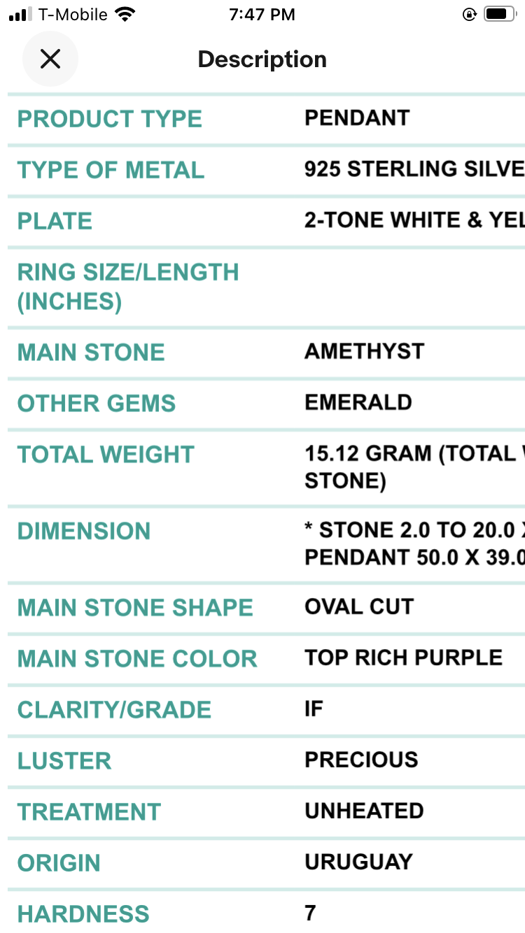 Super unique and oh so spectacular, a Genuine large 28+ CTW rich deep purple Amethyst, encrusted with genuine Emeralds too. A breathtaking work of art to wear. Lots of oo’s and ahh’s here. Set in .925 sterling silver with yellow gold accents. You’ll treasure this custom made, one of a kind pendant. This was made for this special gemstone, just exquisite,