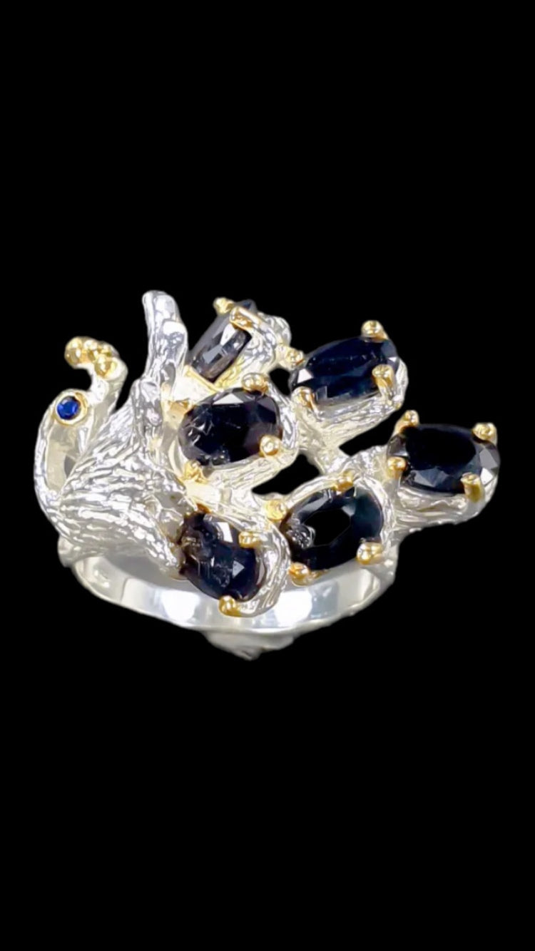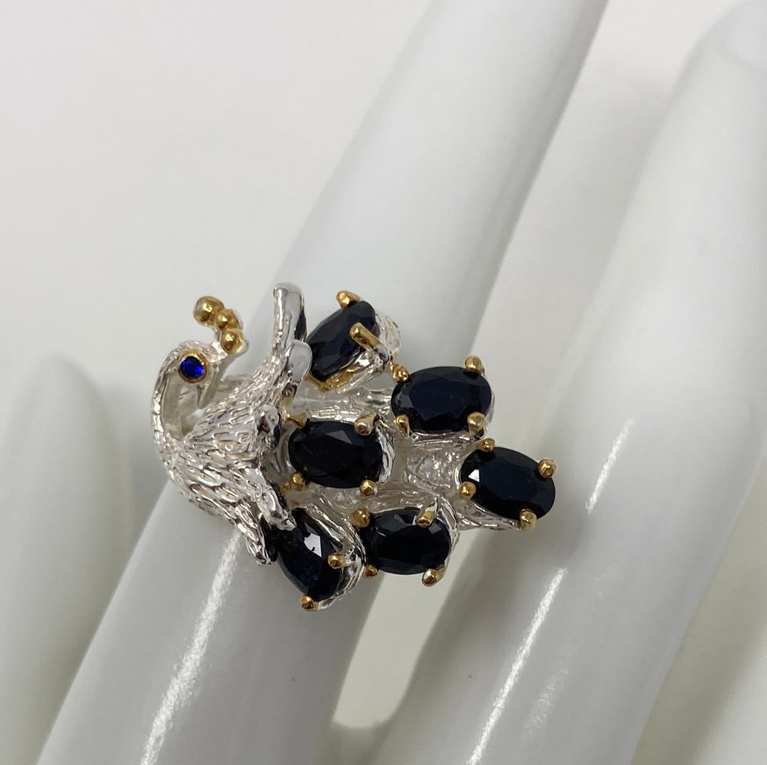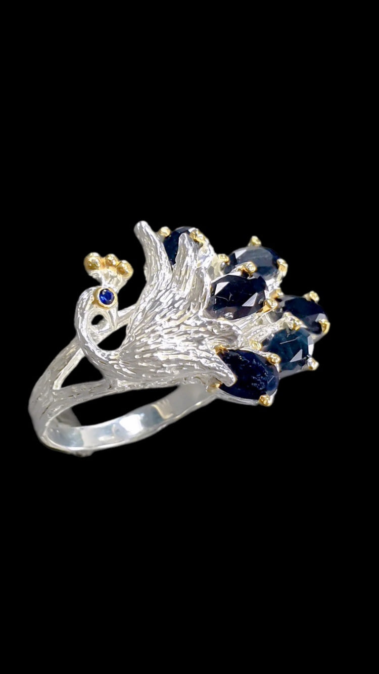 Unique Genuine Sapphires Peacock Ring