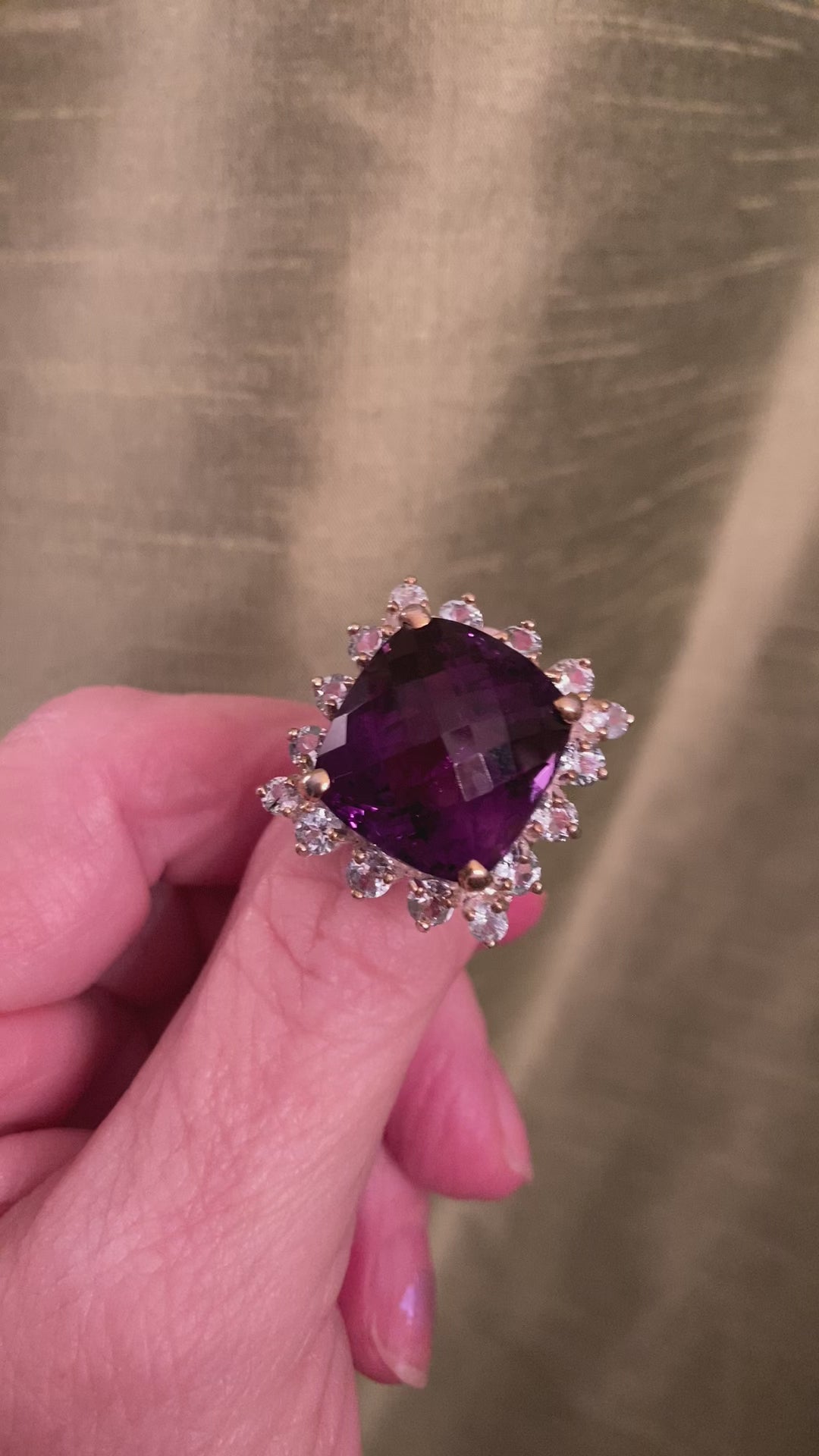 Unusual Cushion Cut 25 CTW Genuine Amethyst Ring